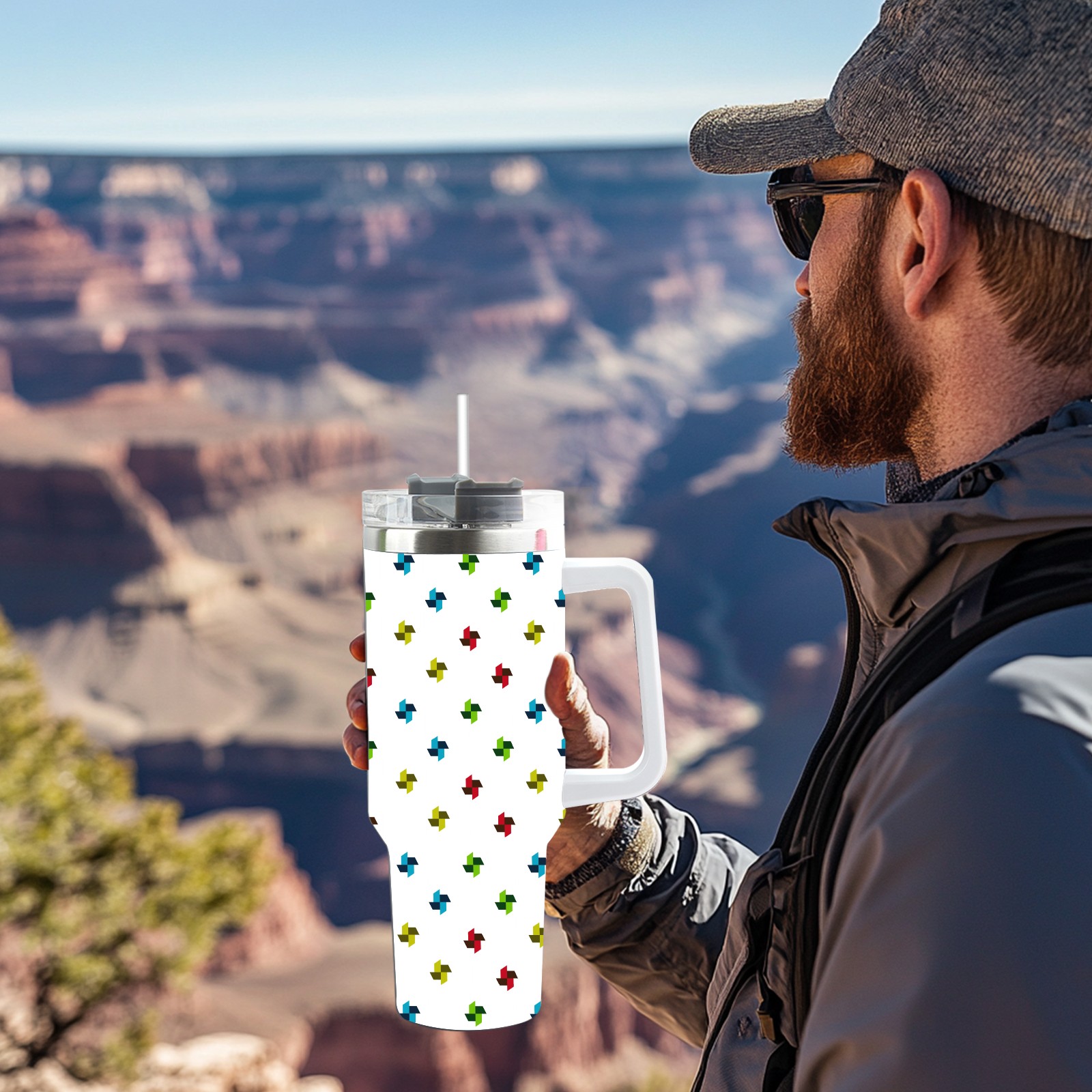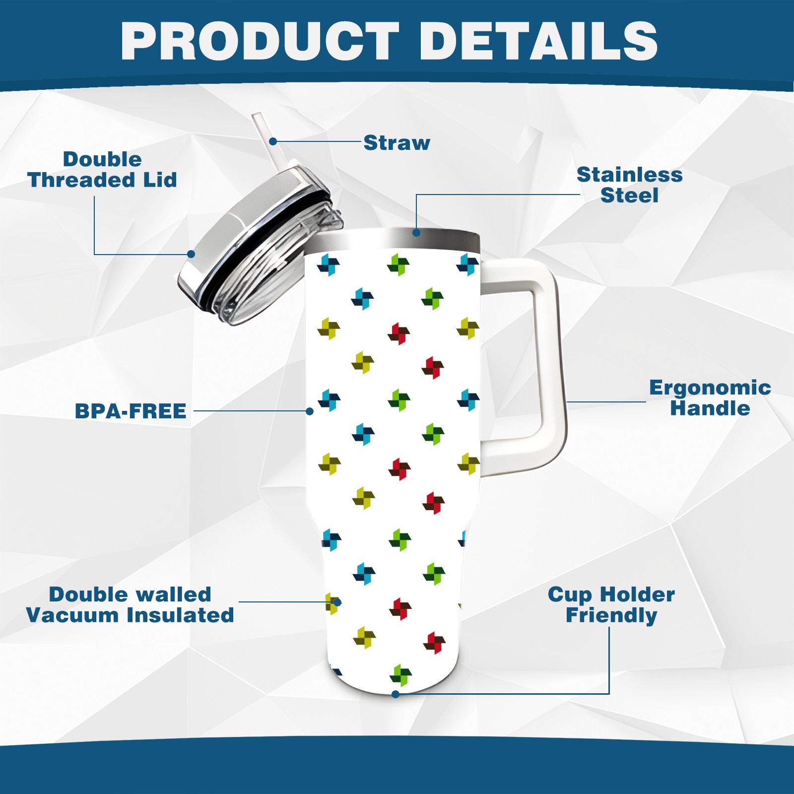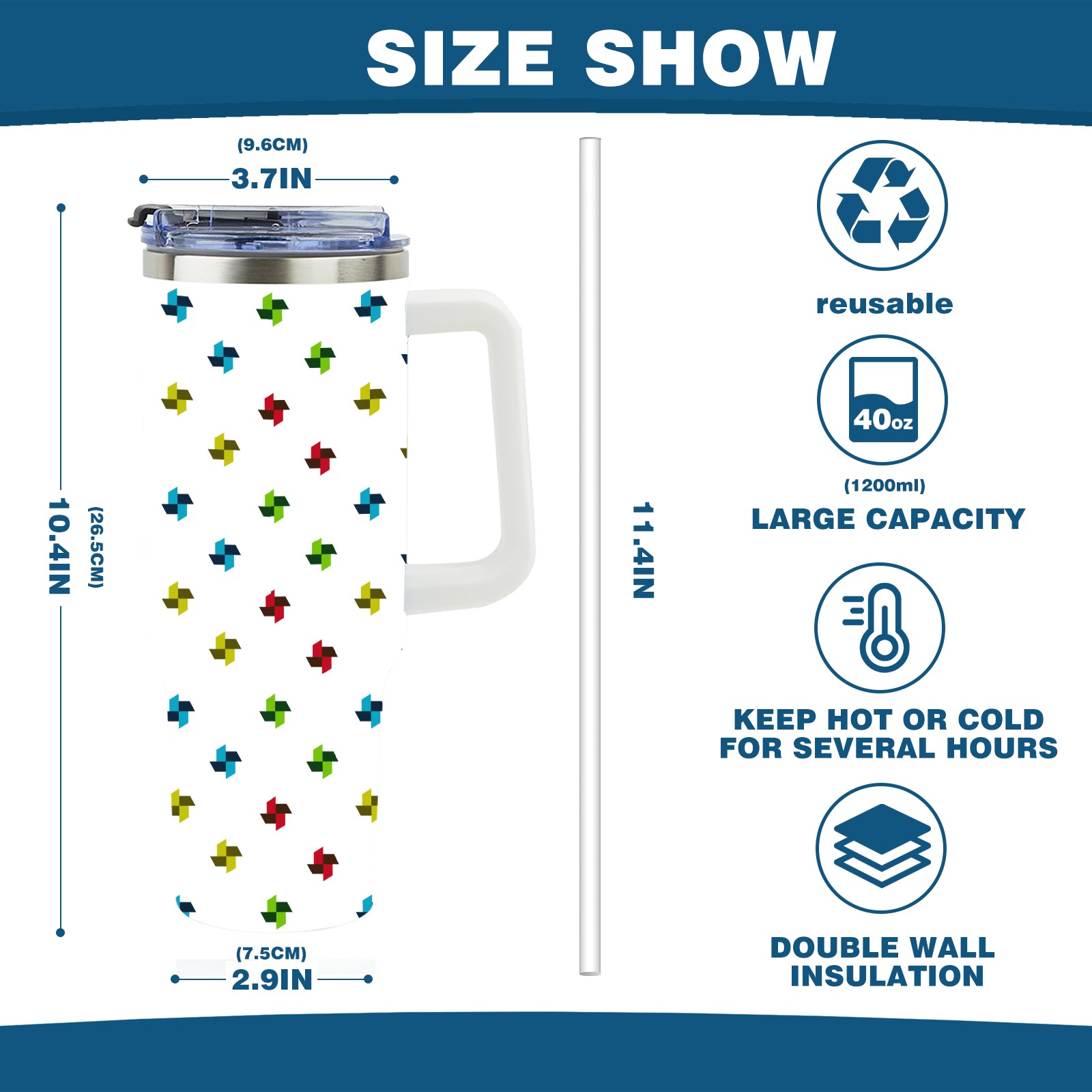 40oz Color Windmill thermos with lid and straw, leak-proof stainless steel, with handle, spill-proof bottle, convenient for travel(blue)