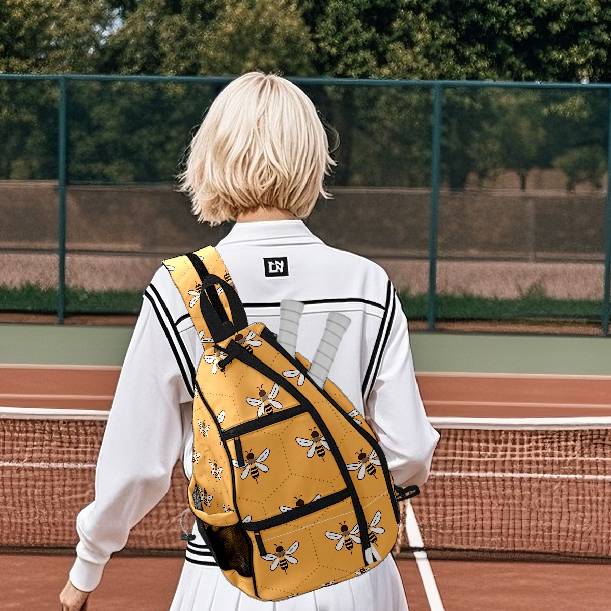 Multifunctional Pickleball Bag,Large Capacity Sports Pickleball Racket Bag, Water Bottle Holder and Fence Hook,Suitable for Both Men Women -Bee Pattern