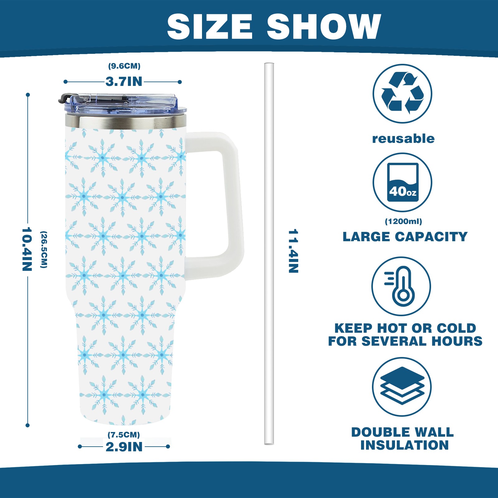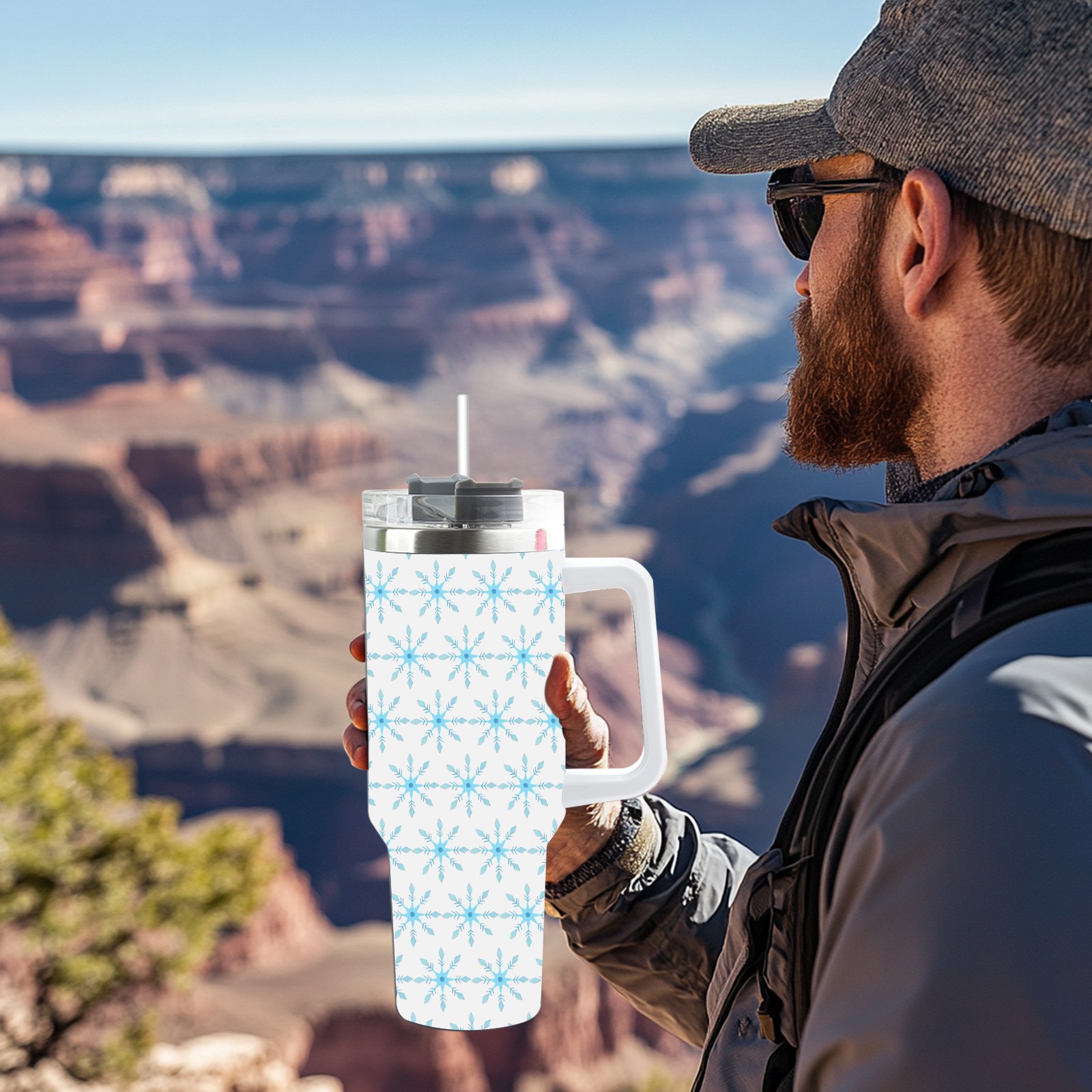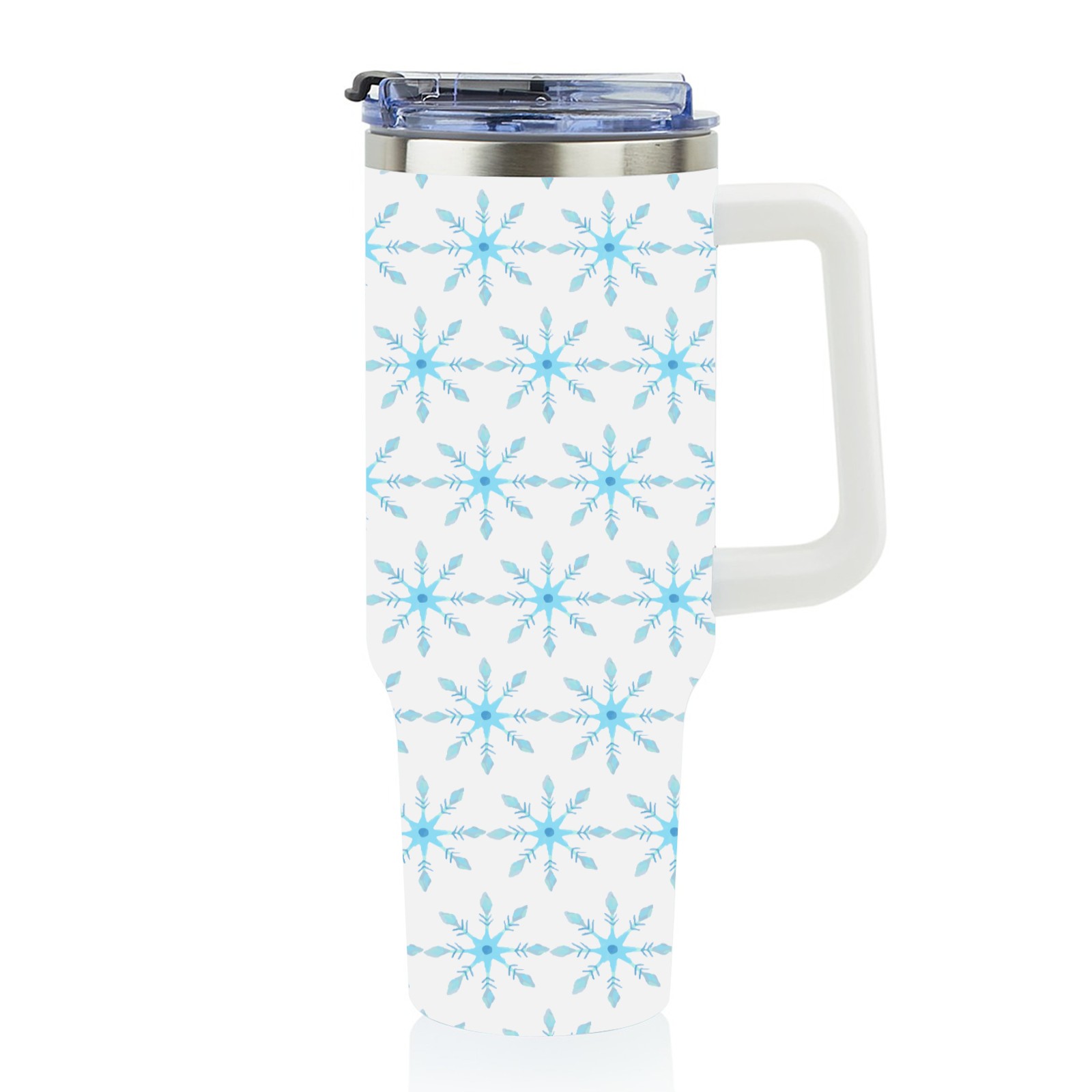 40oz Christmas Pattern With Snowflakes thermos with lid and straw, leak-proof stainless steel, with handle, spill-proof bottle, convenient for travel(blue)
