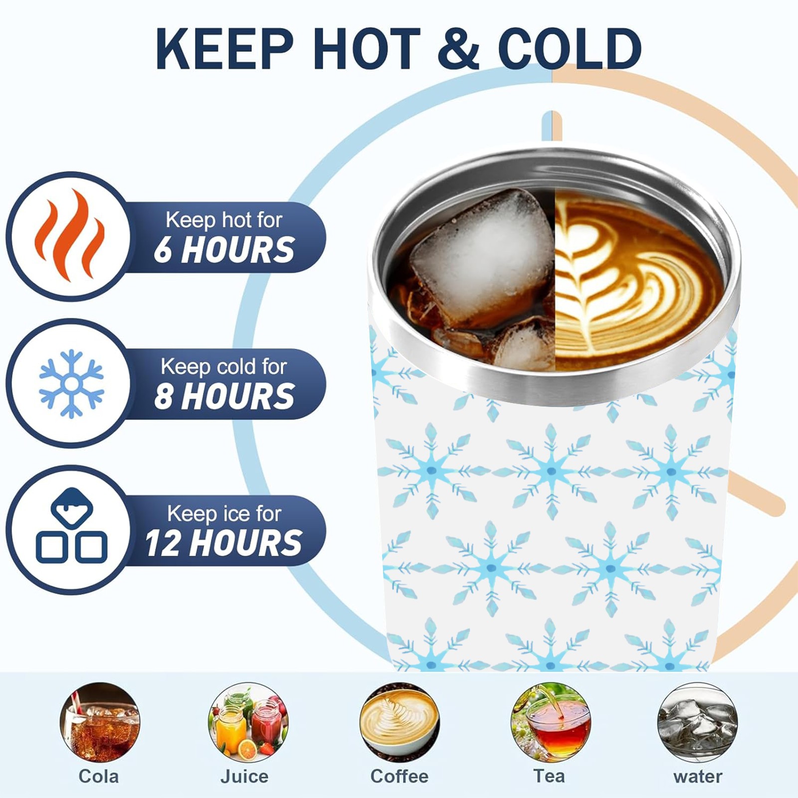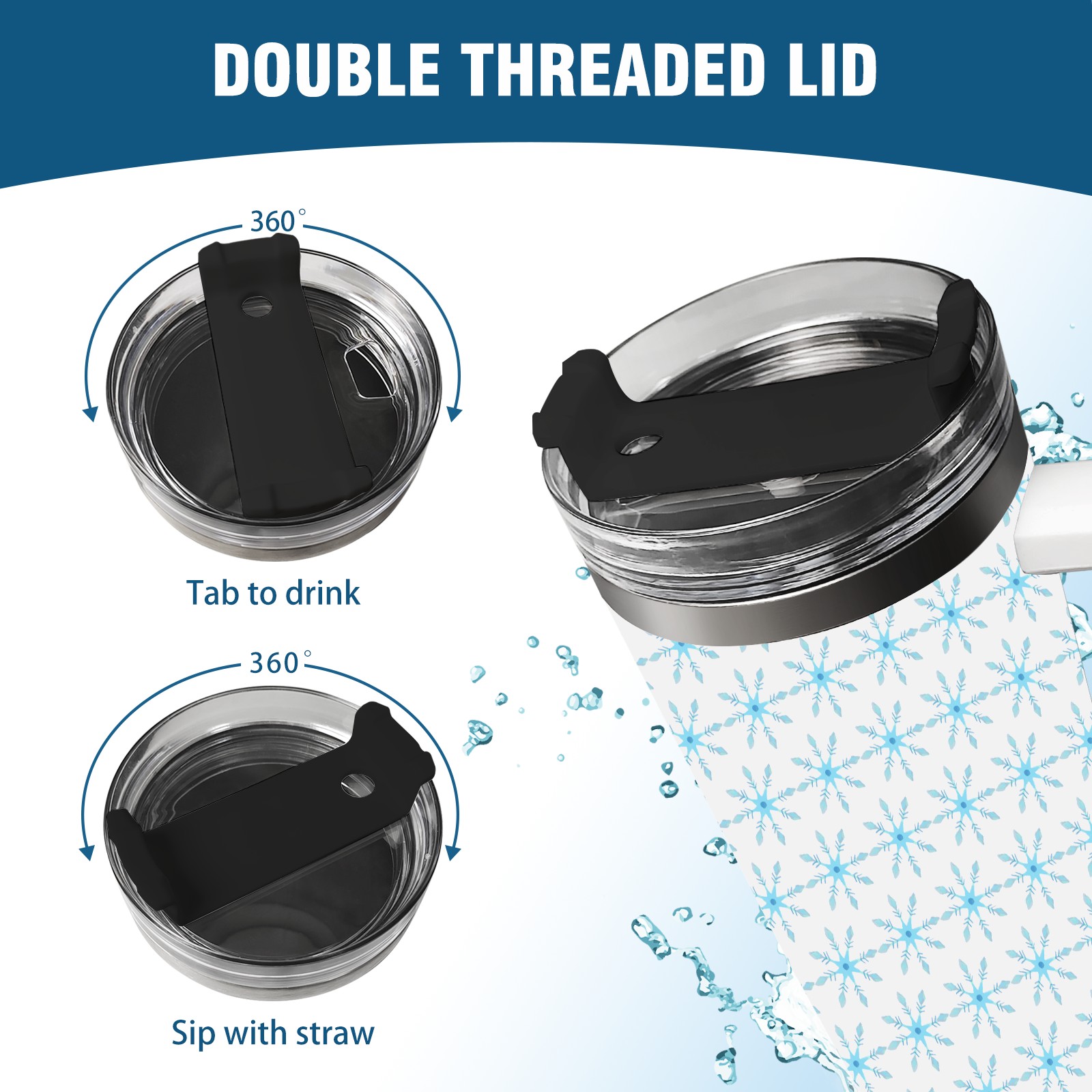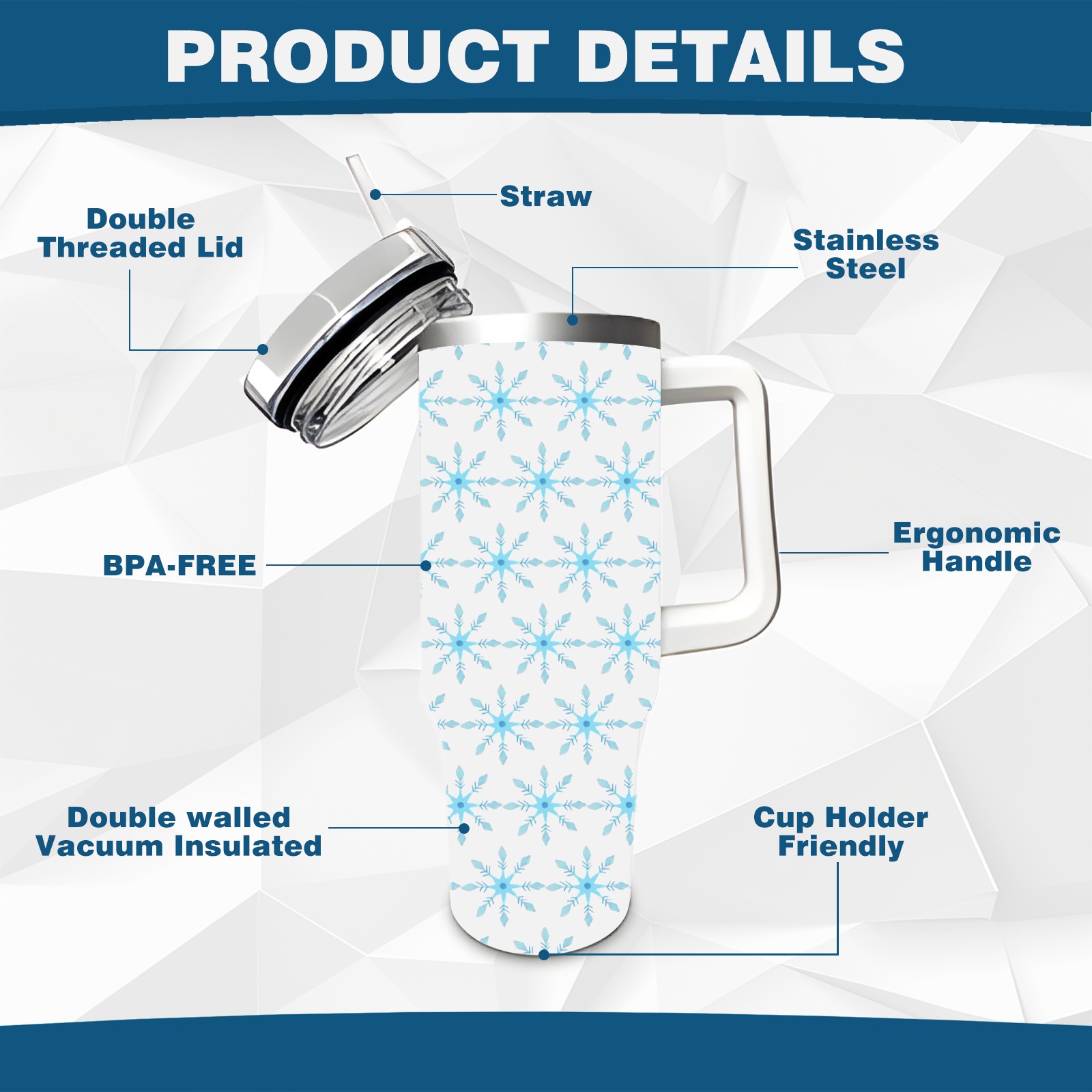 40oz Christmas Pattern With Snowflakes thermos with lid and straw, leak-proof stainless steel, with handle, spill-proof bottle, convenient for travel(blue)