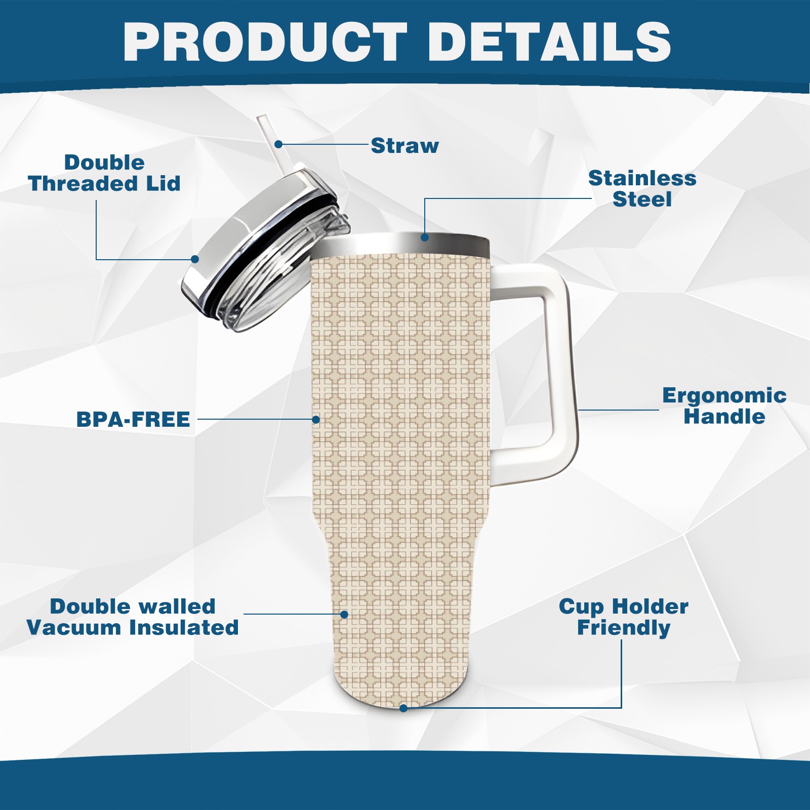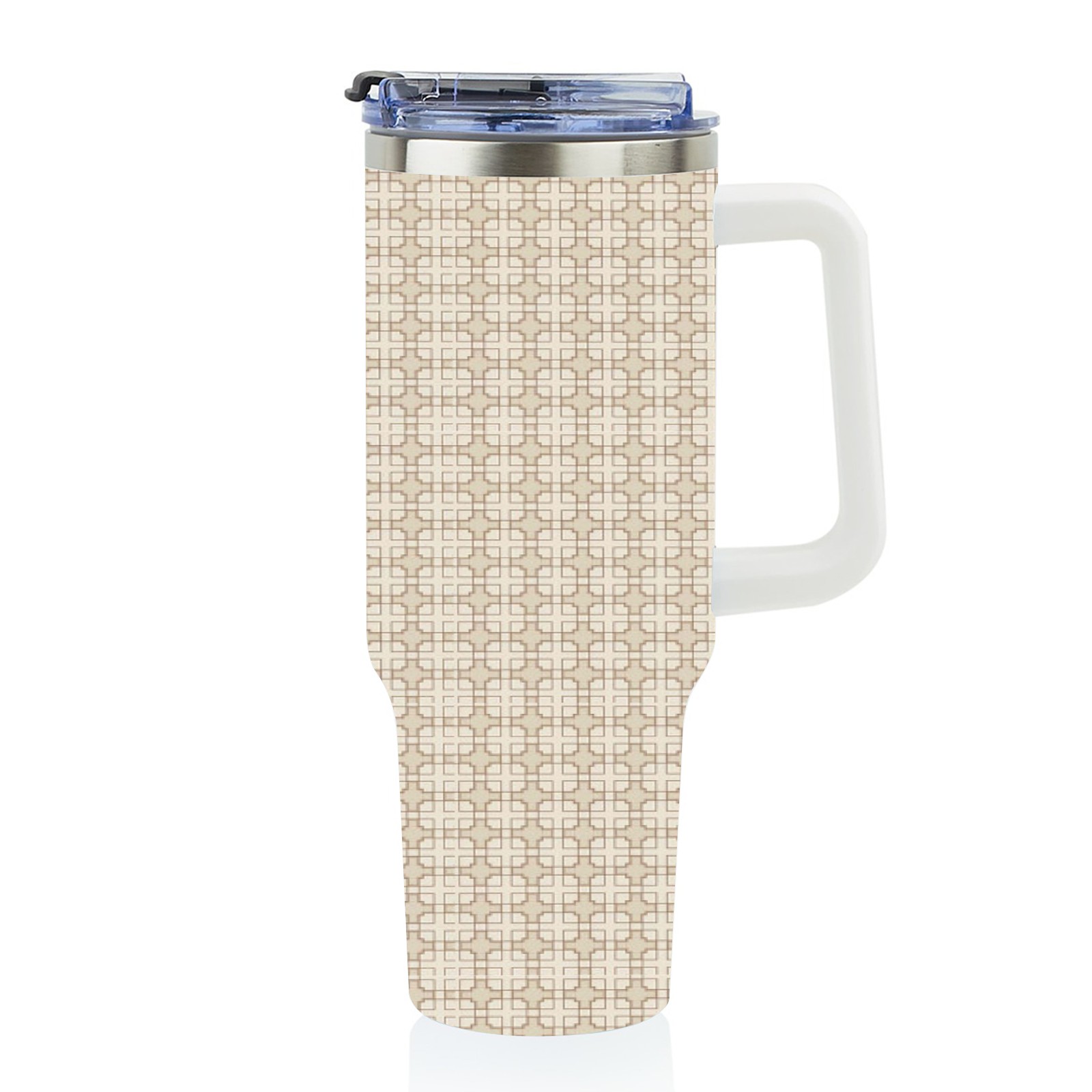 40oz Chinese Style Window Lattice thermos with lid and straw, leak-proof stainless steel, with handle, spill-proof bottle, convenient for travel(blue)