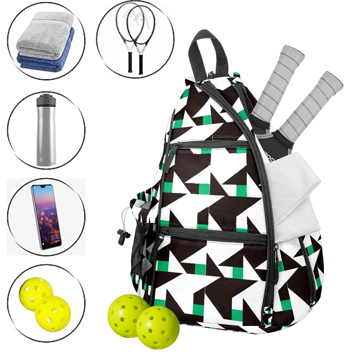 Multifunctional Pickleball Bag,Large Capacity Sports Pickleball Racket Bag, Water Bottle Holder and Fence Hook,Suitable for Both Men Women -Abstract Dart
