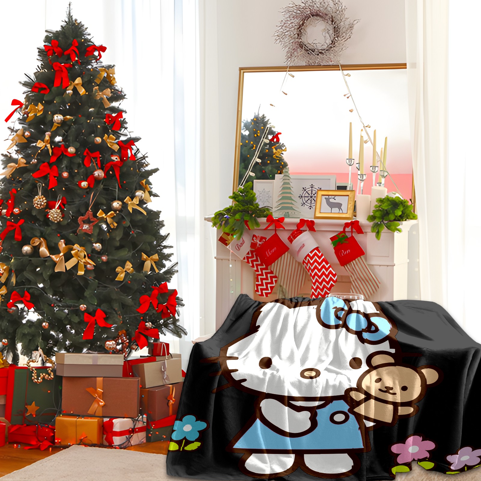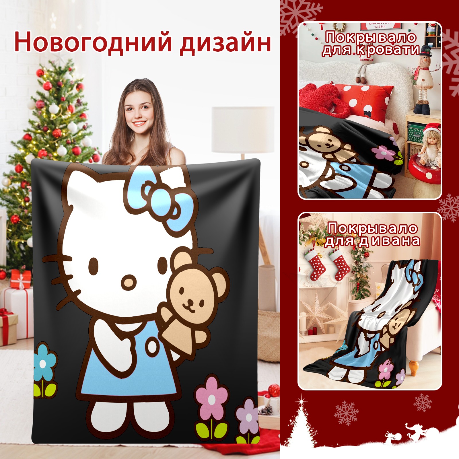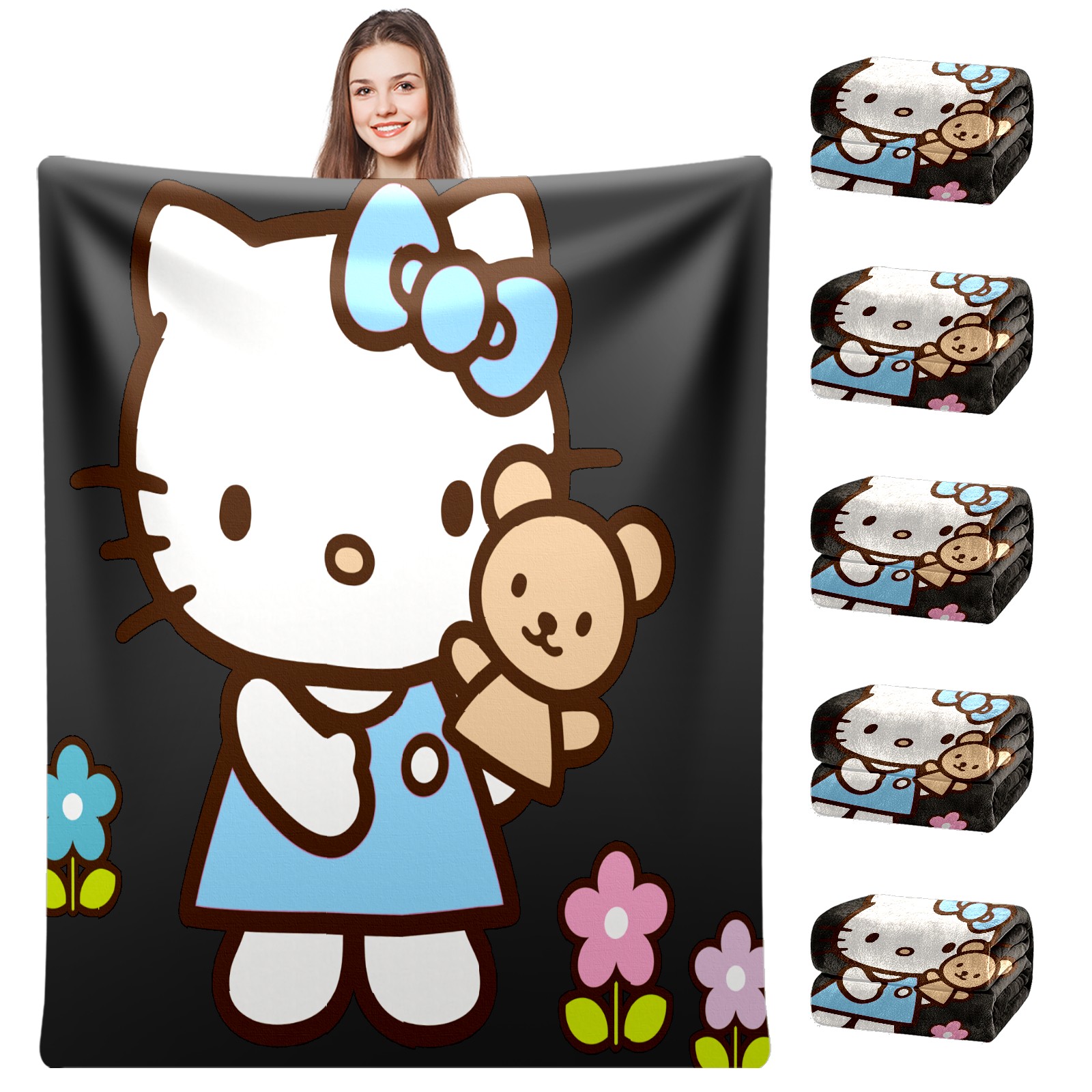 Flannel Blanket, Ultra-Soft Comfortable Home Decor Rug, The Perfect Comfort Gift for Both Men Women, Suitable for Beds, Sofas, Loungewear, and Travel 30x39in(Hello Kitty Cat And Bear)