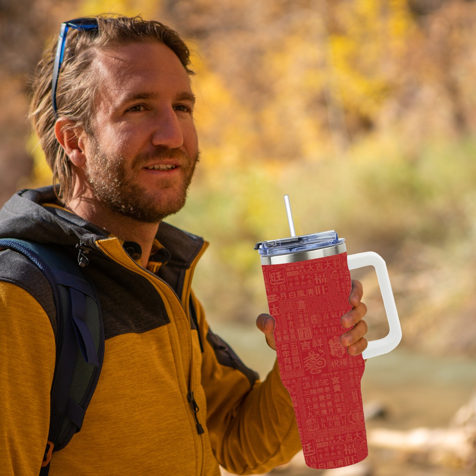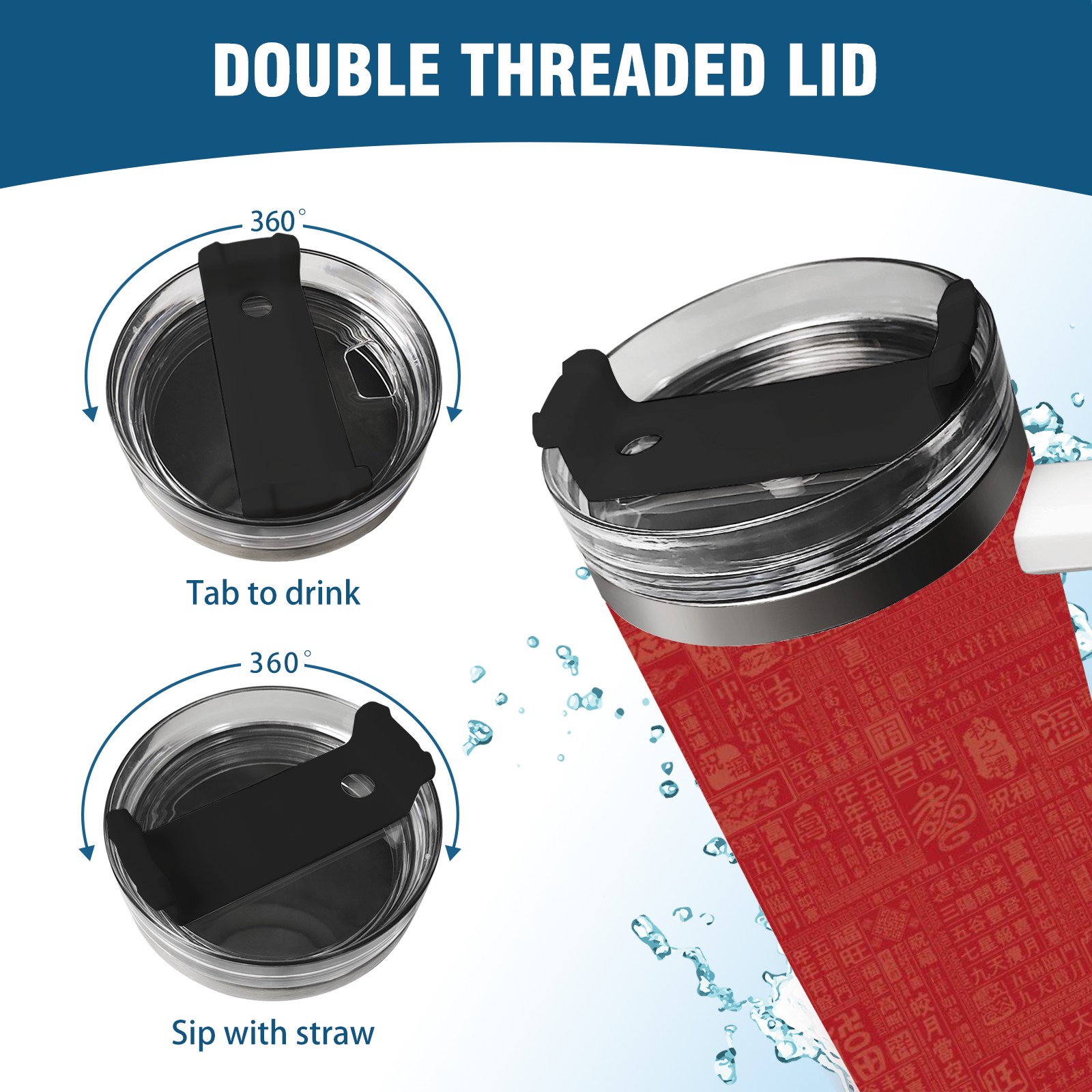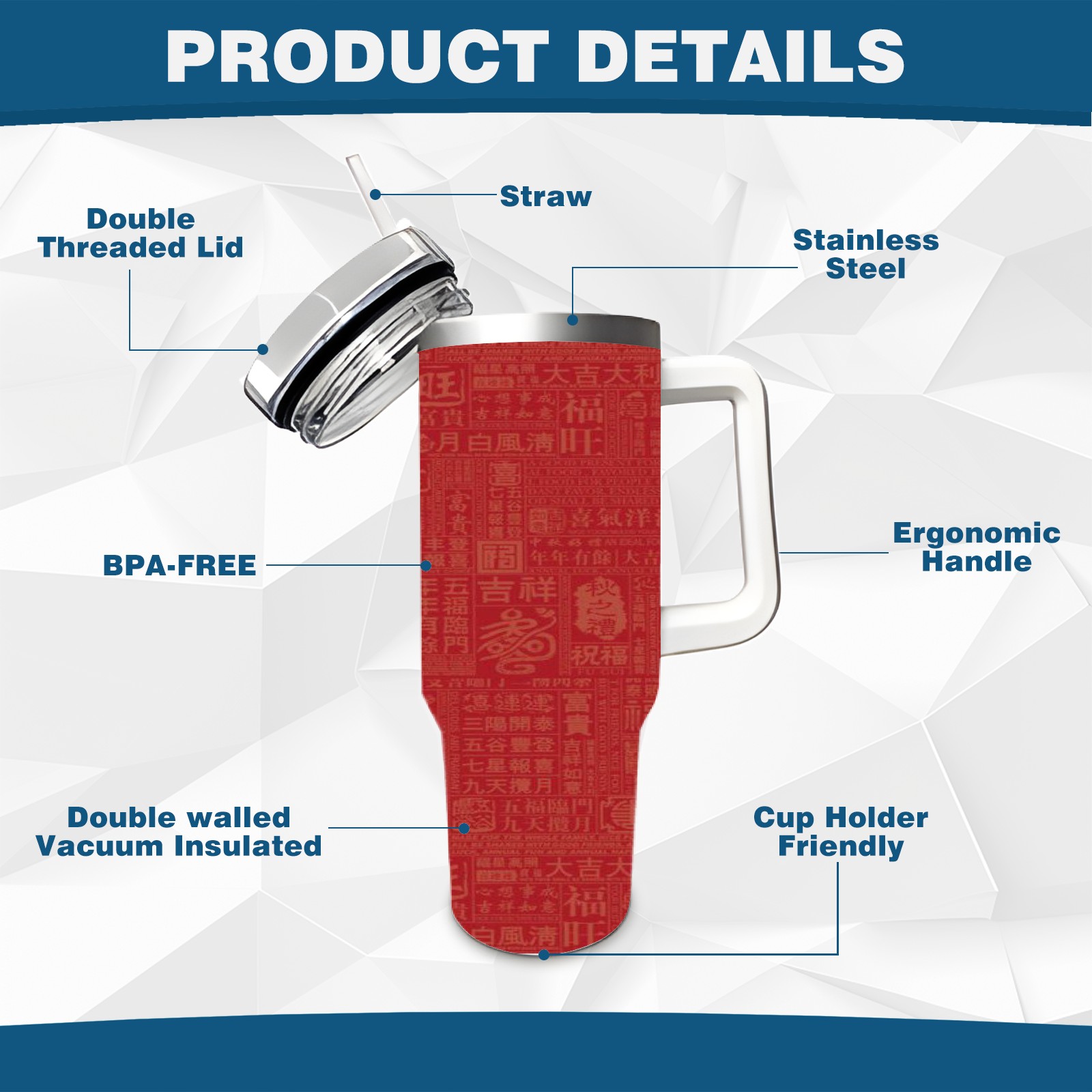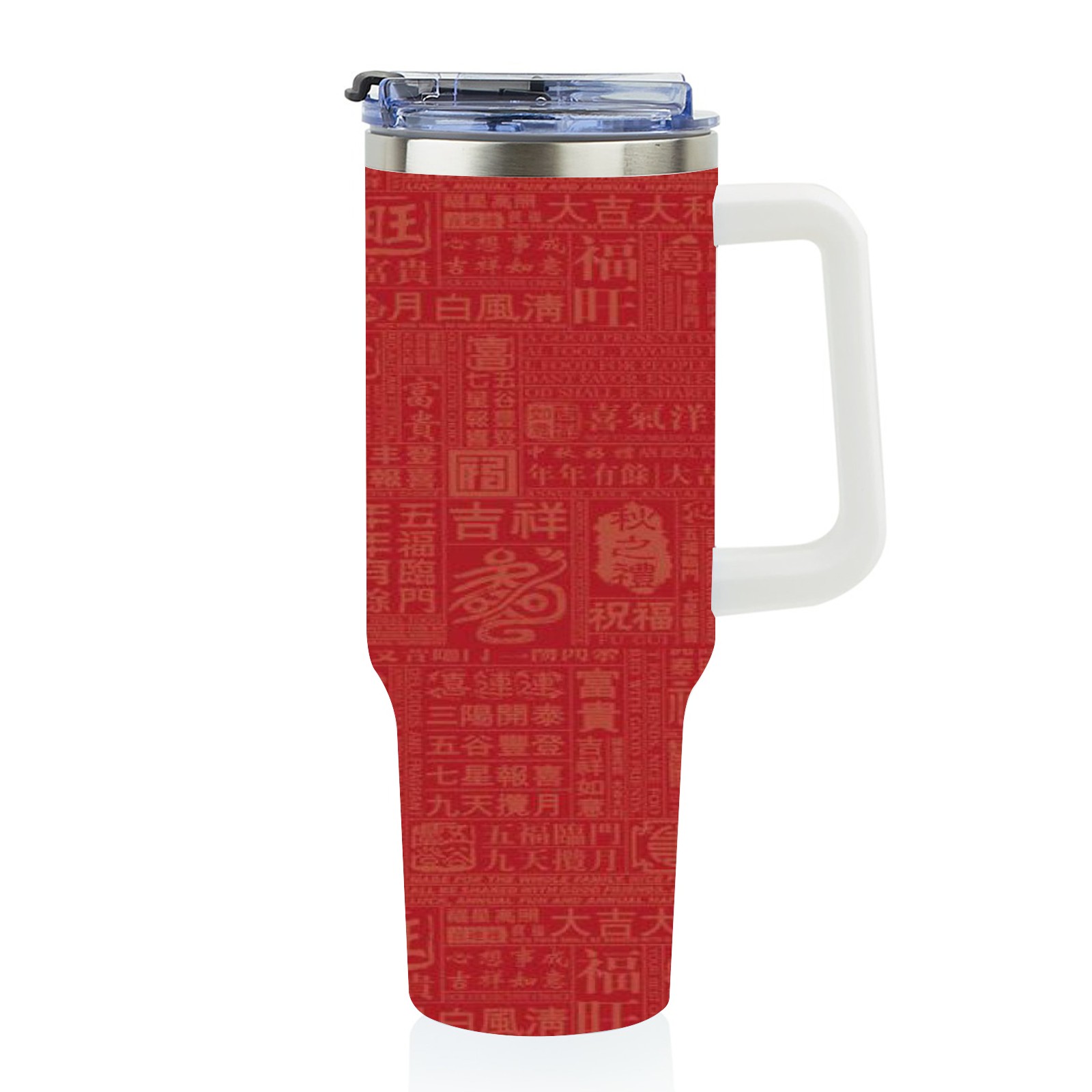 40oz Chinese Characters thermos with lid and straw, leak-proof stainless steel, with handle, spill-proof bottle, convenient for travel(blue)