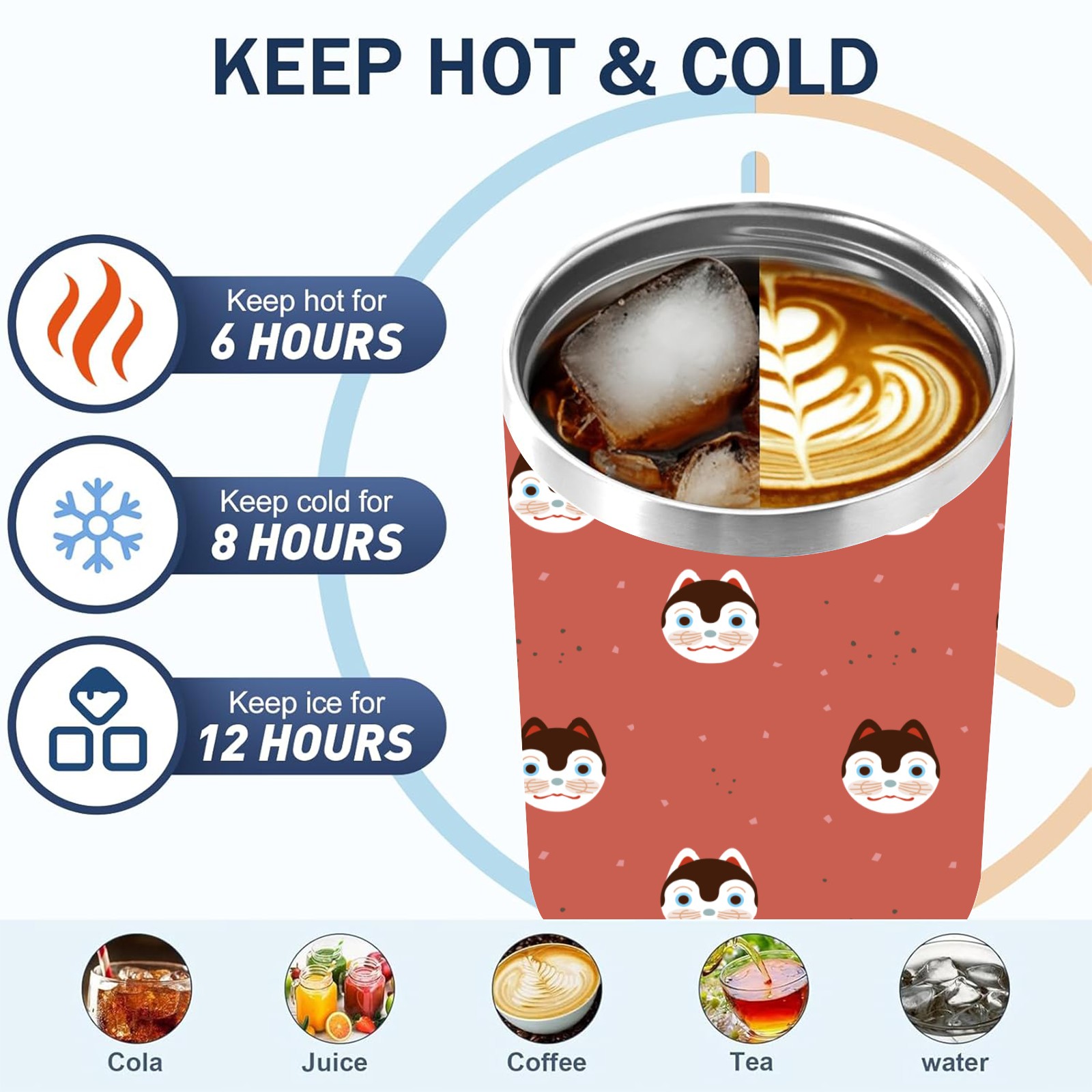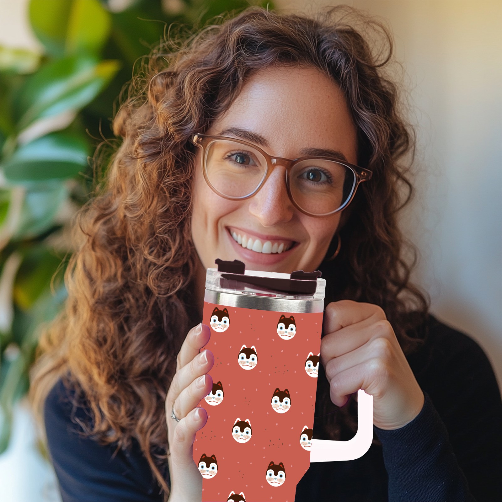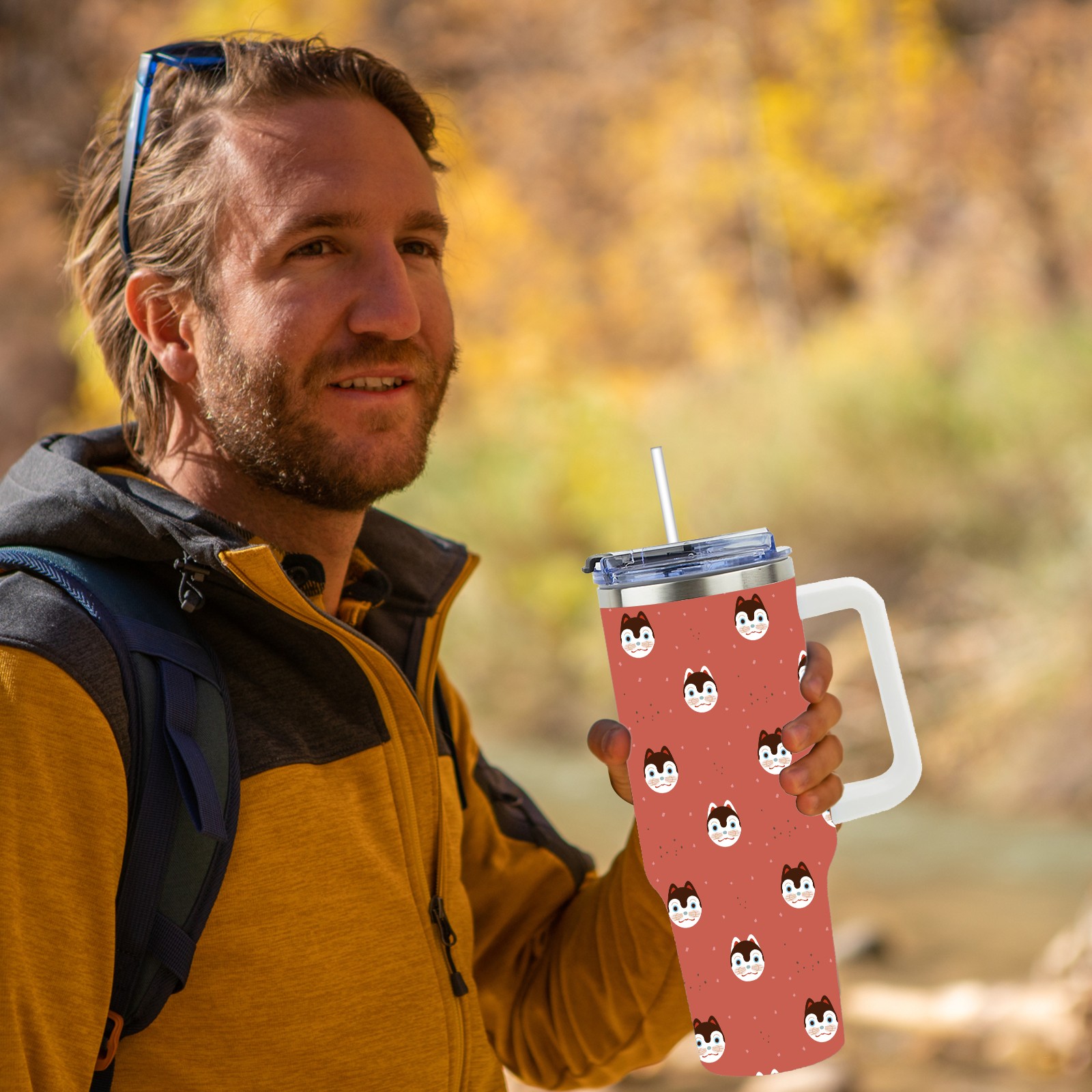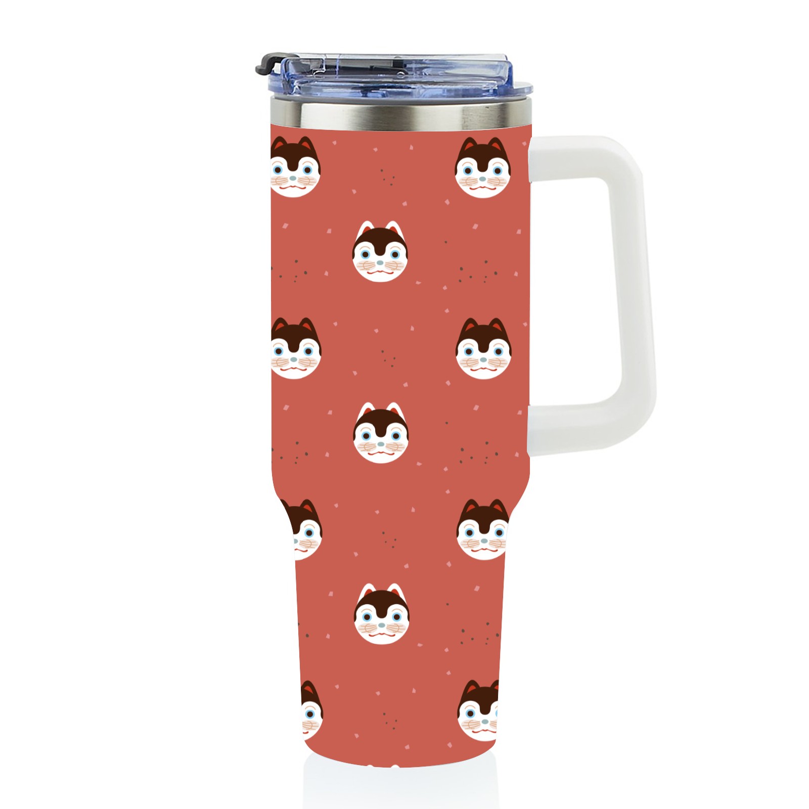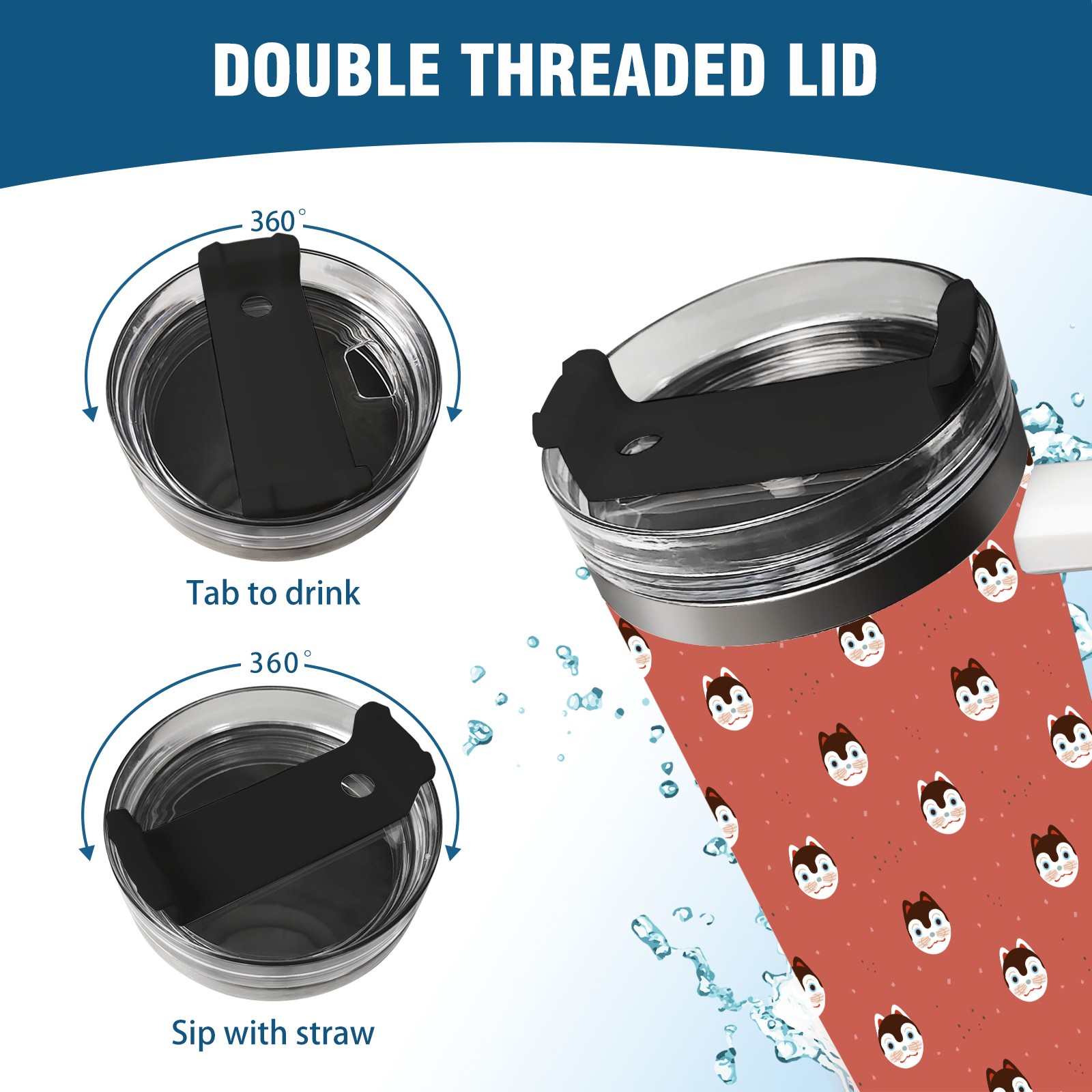 40oz Cat Face On Red Background thermos with lid and straw, leak-proof stainless steel, with handle, spill-proof bottle, convenient for travel(blue)