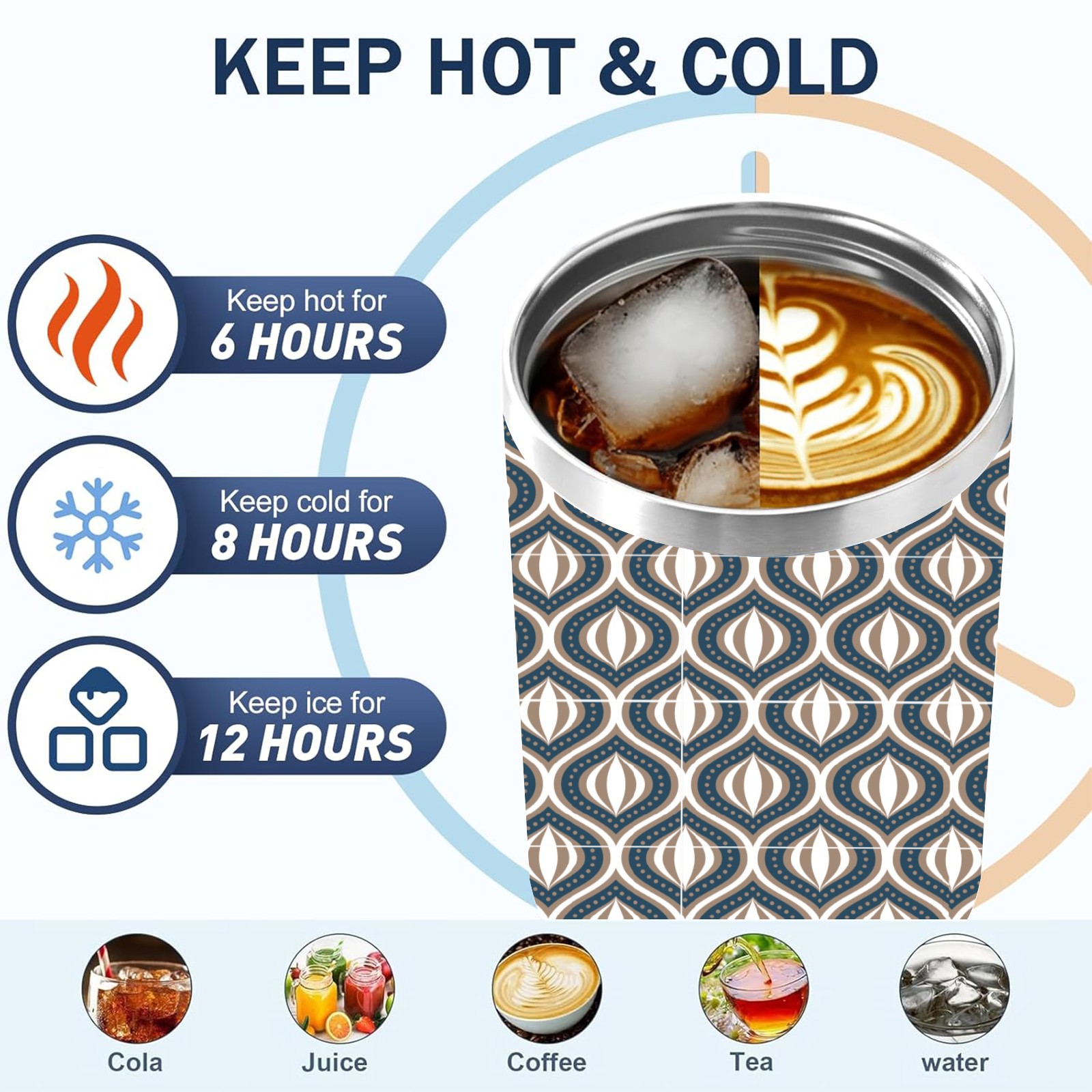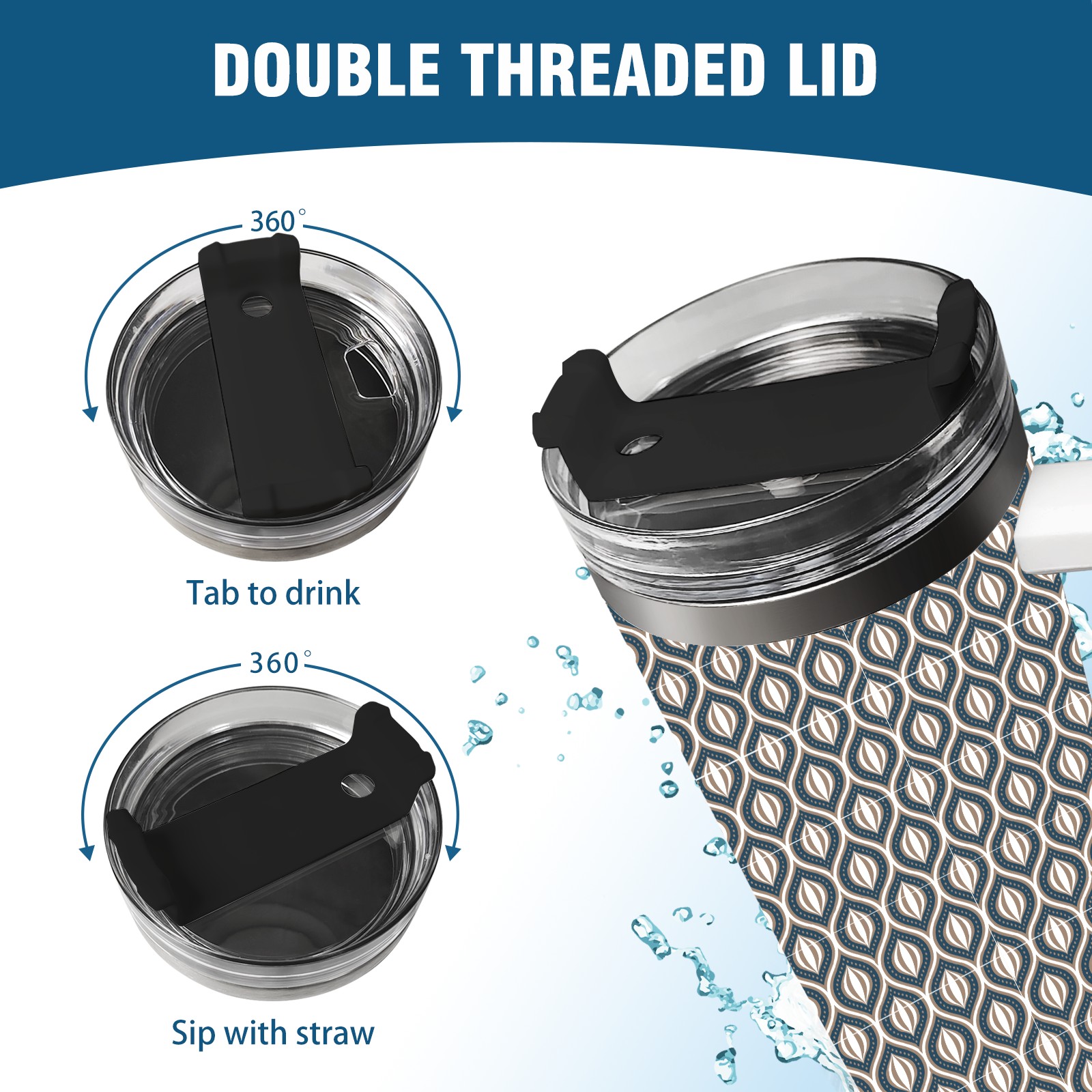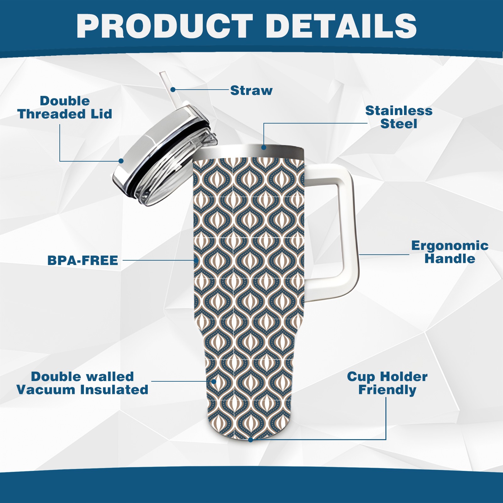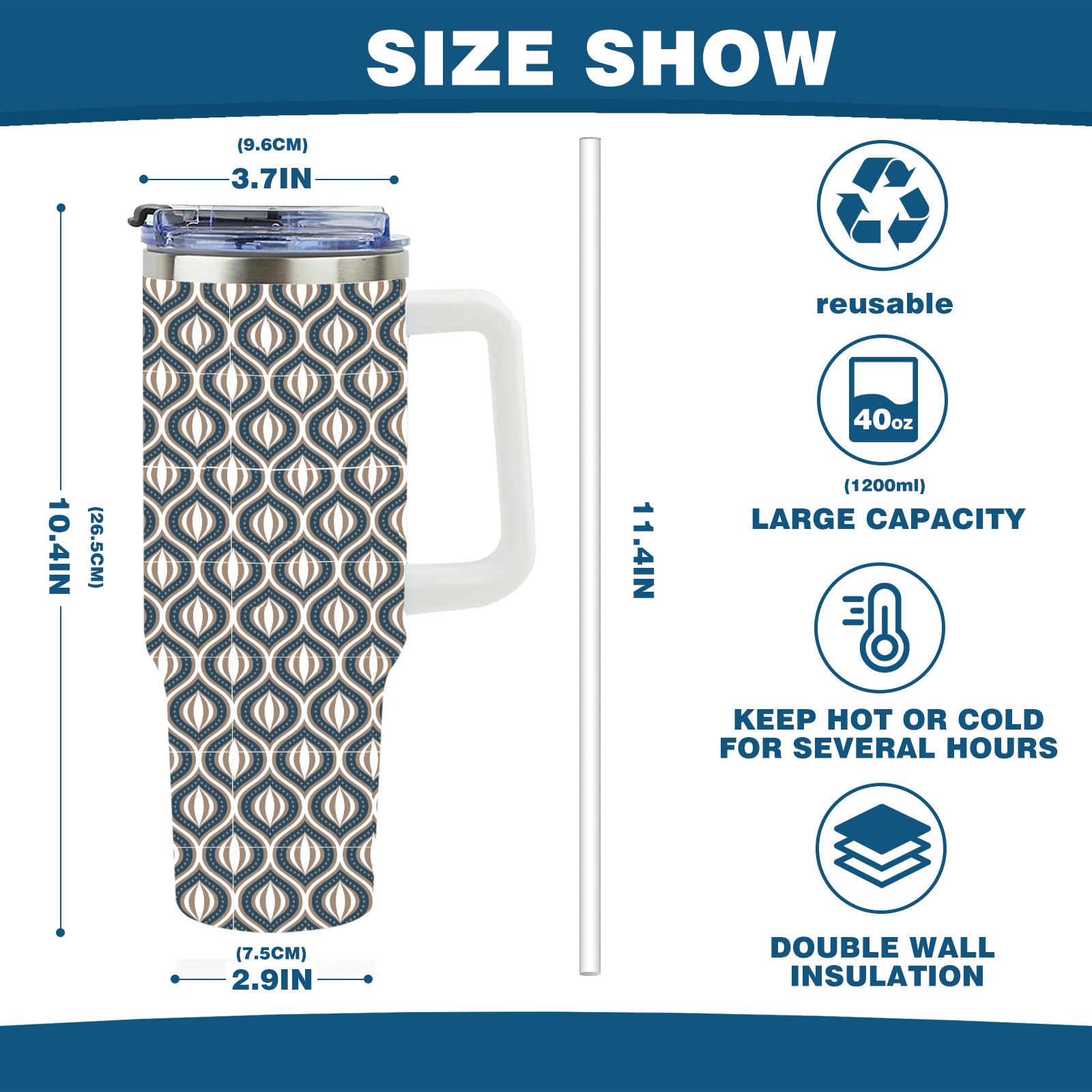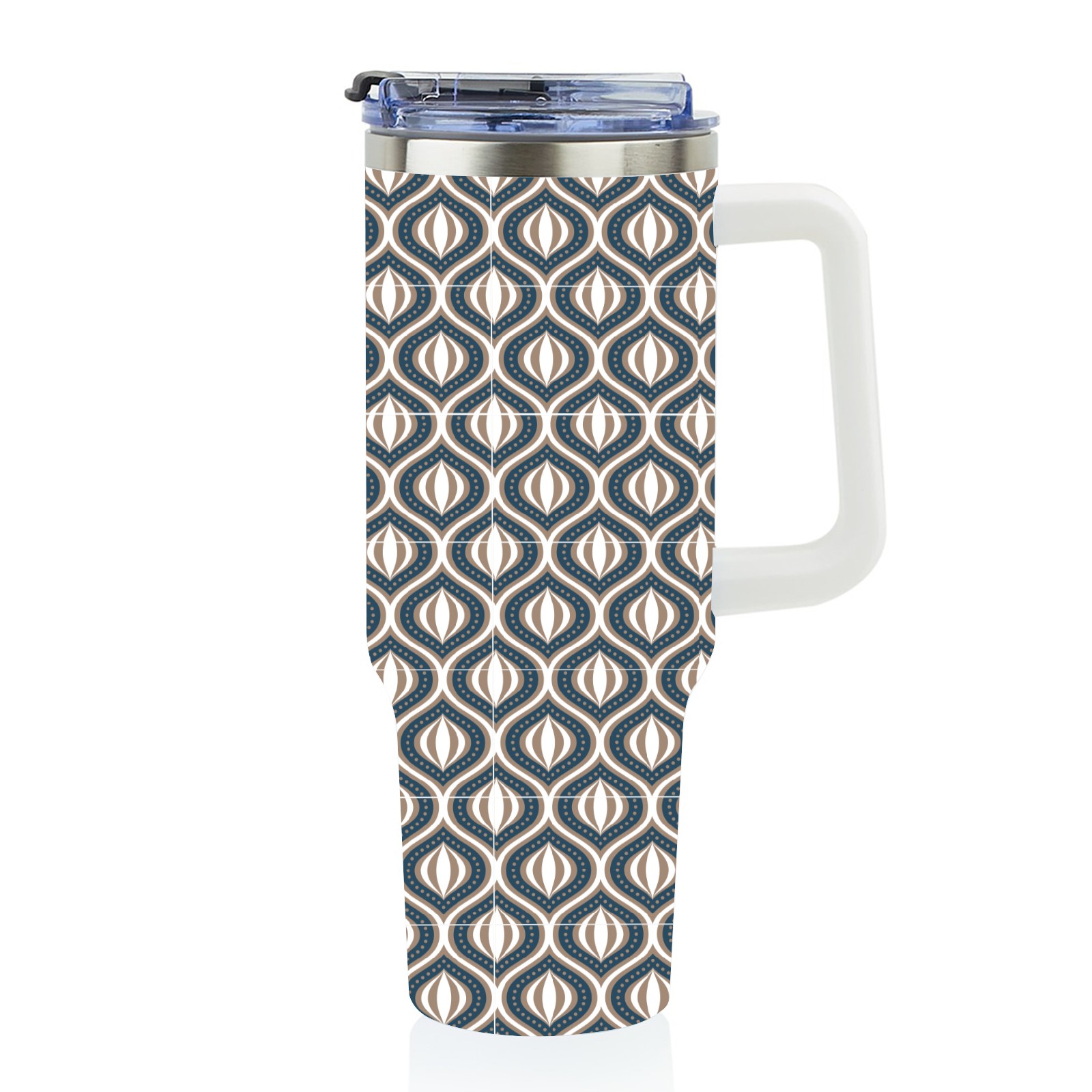 40oz Abstract Cat Eye Design thermos with lid and straw, leak-proof stainless steel, with handle, spill-proof bottle, convenient for travel(blue)