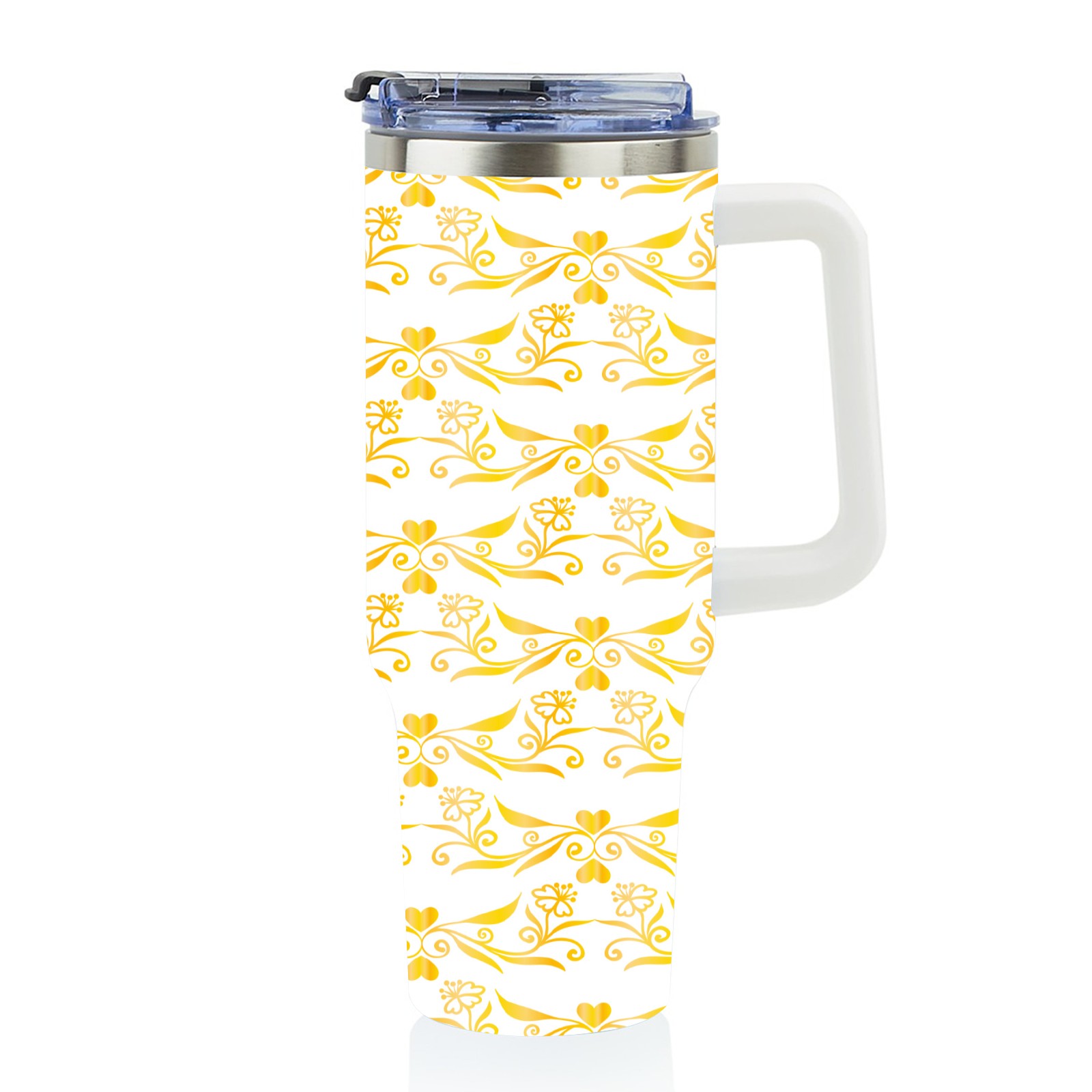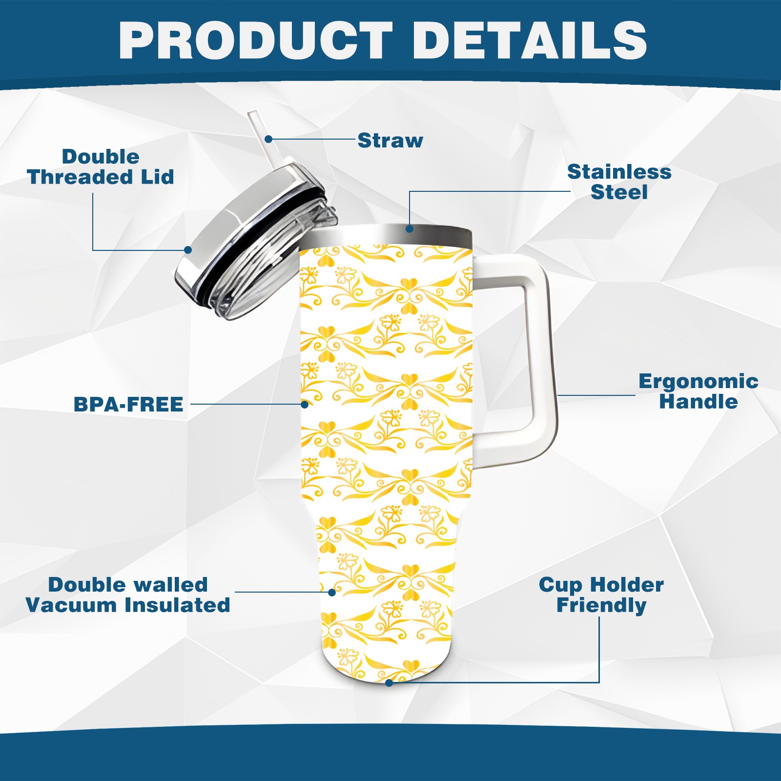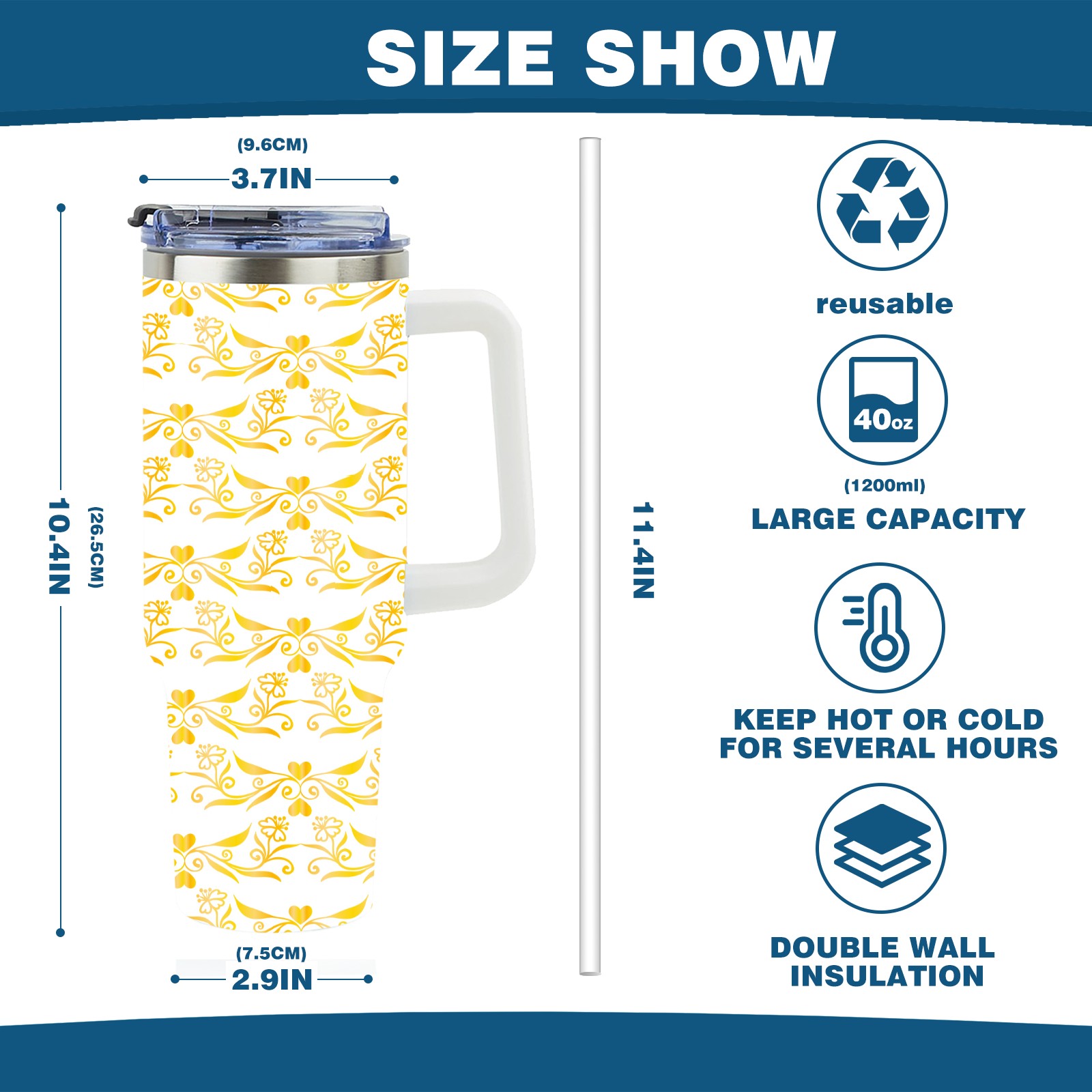 40oz Yellow Floral thermos with lid and straw, leak-proof stainless steel, with handle, spill-proof bottle, convenient for travel(blue)