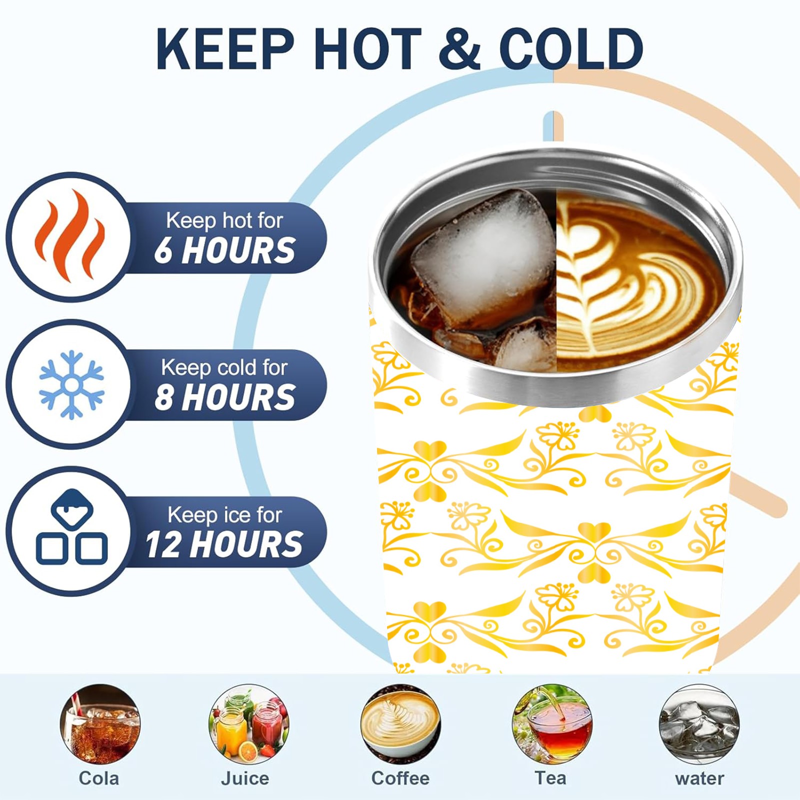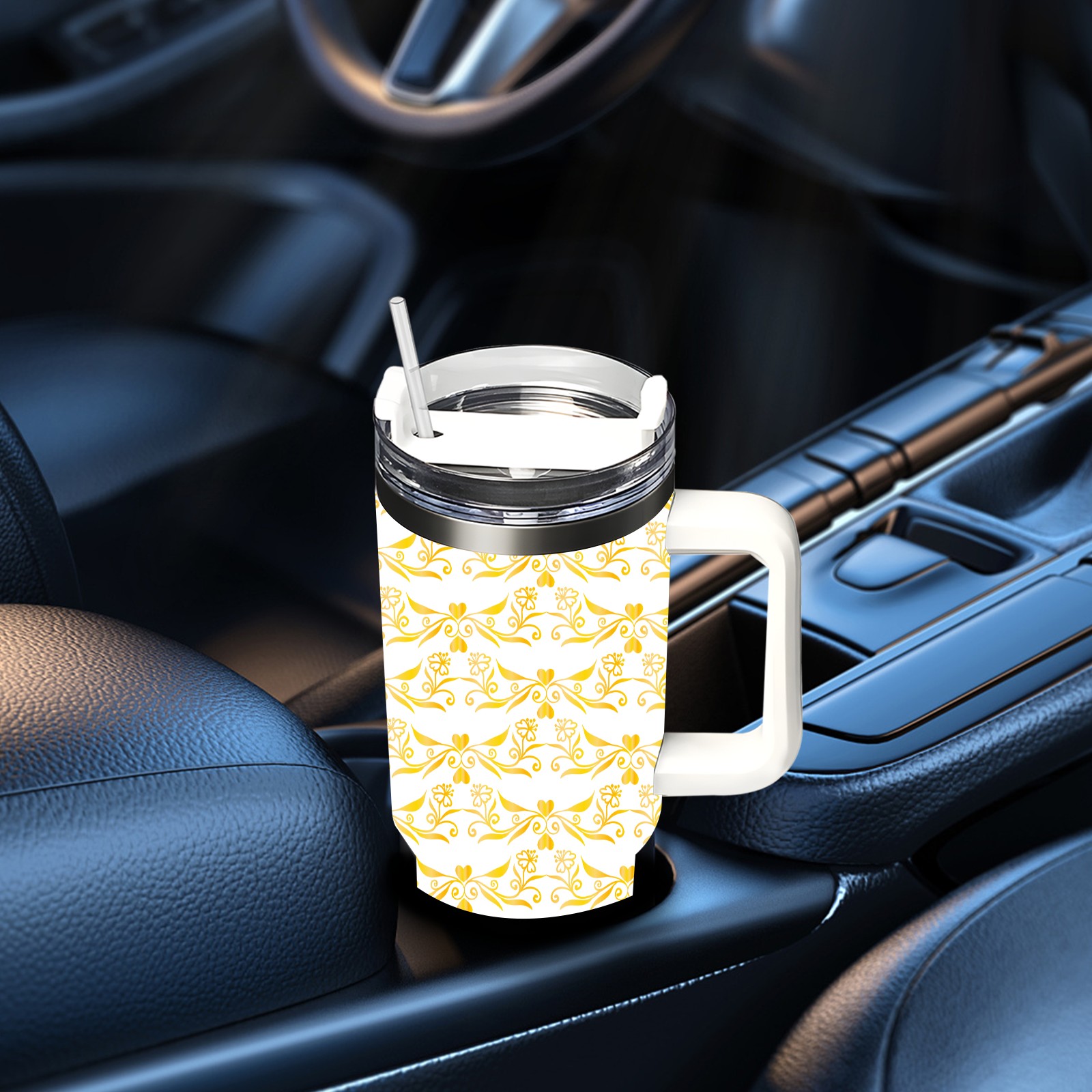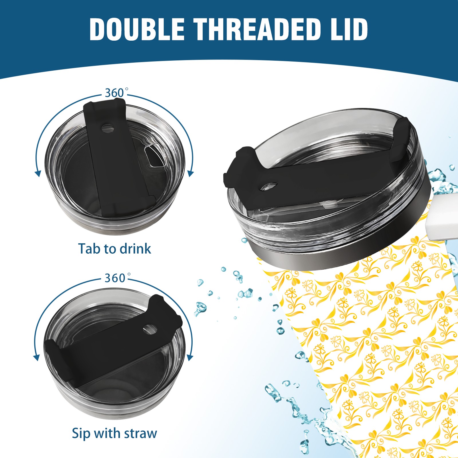 40oz Yellow Floral thermos with lid and straw, leak-proof stainless steel, with handle, spill-proof bottle, convenient for travel(blue)