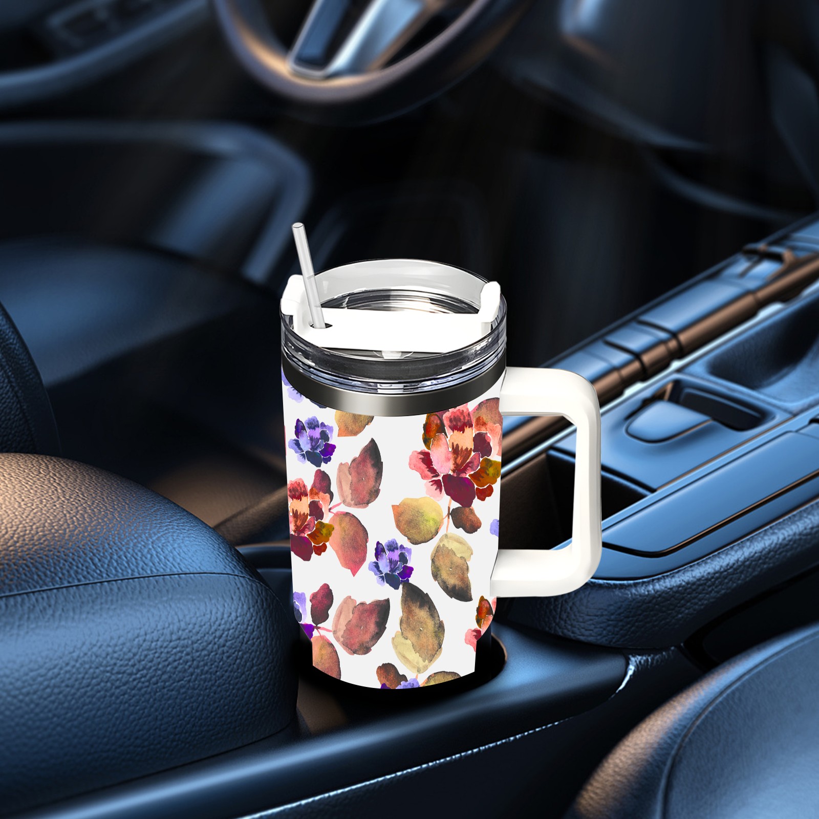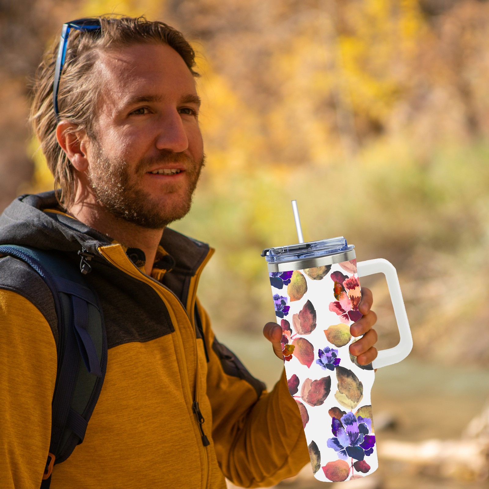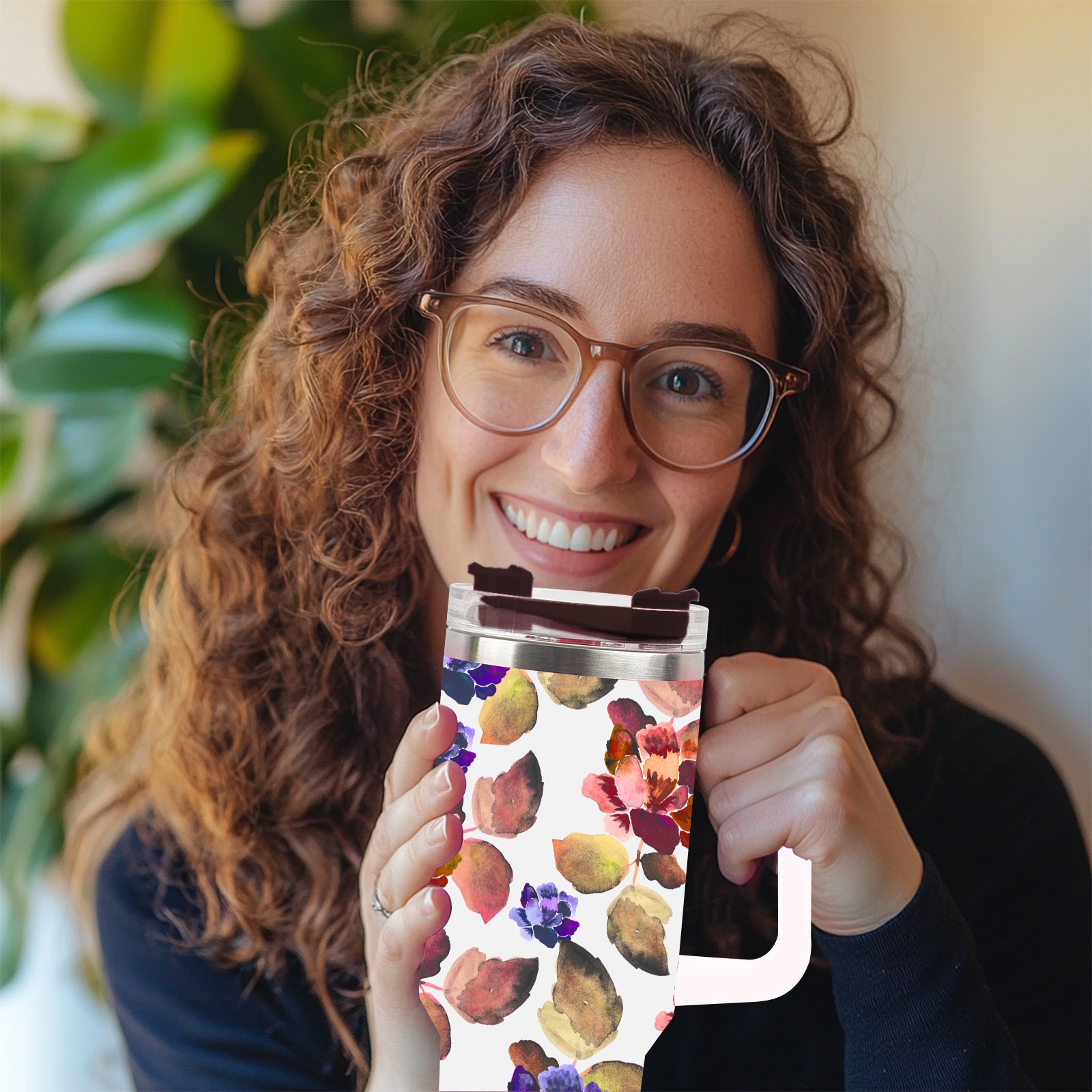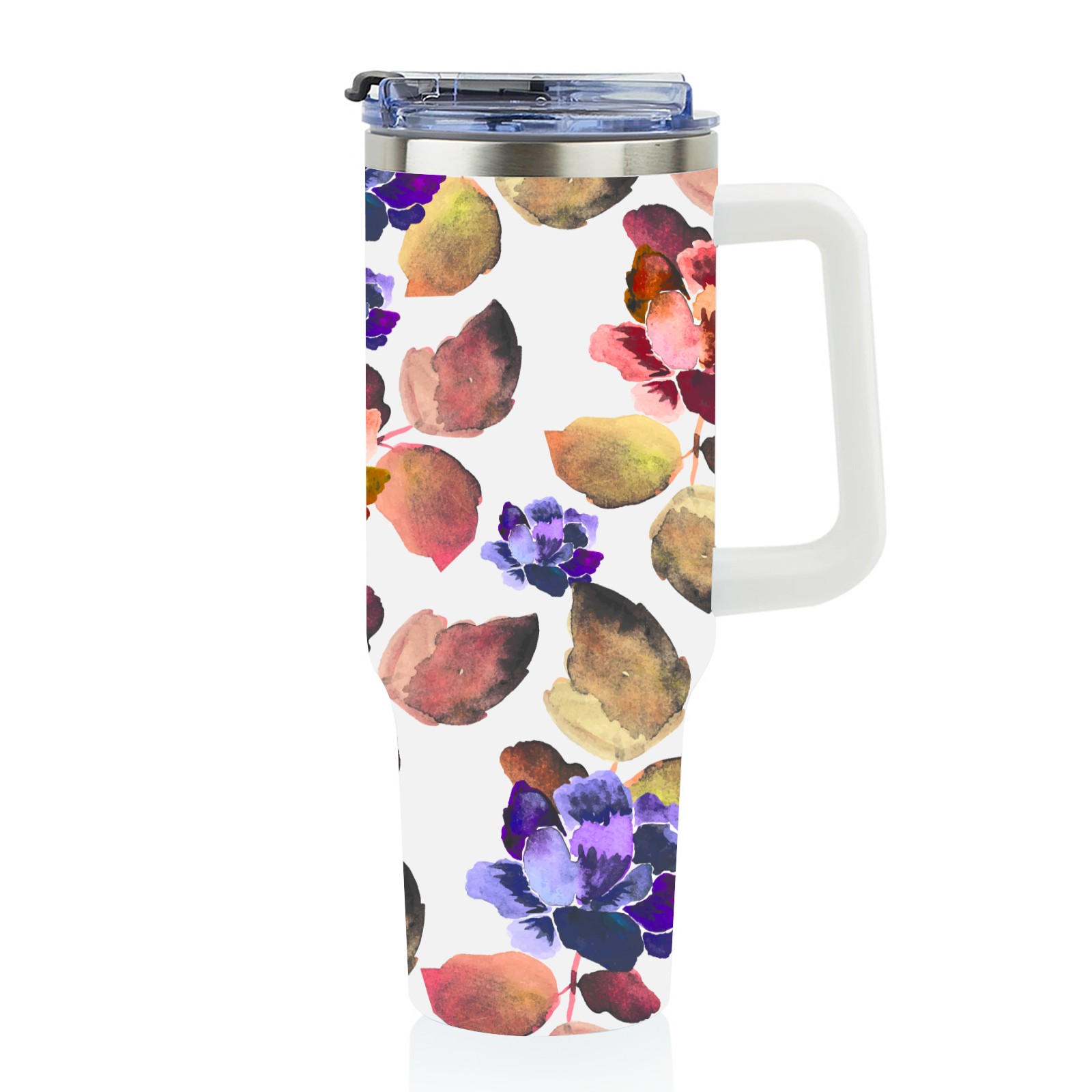 40oz Watercolor Vintage Flowers thermos with lid and straw, leak-proof stainless steel, with handle, spill-proof bottle, convenient for travel(blue)