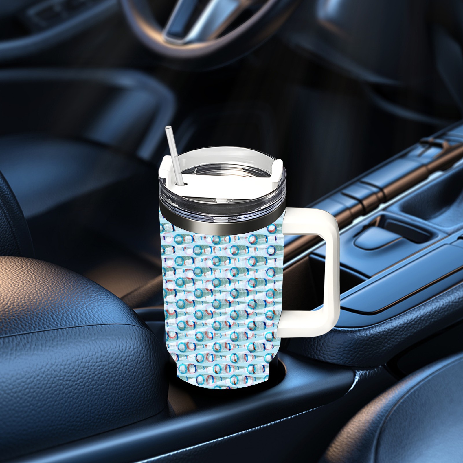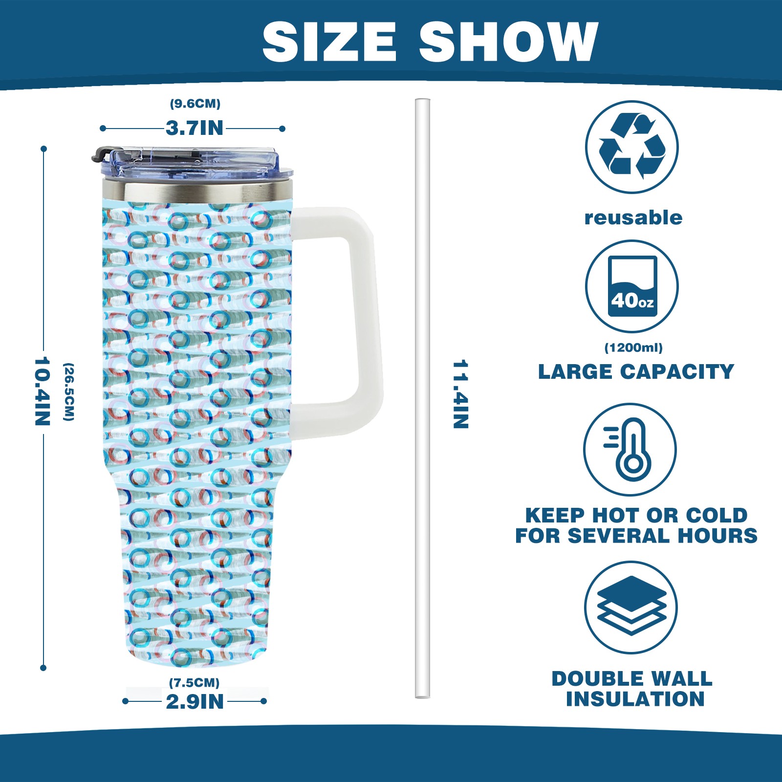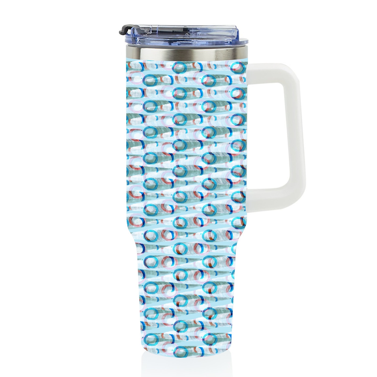 40oz Watercolor Blue Pattern thermos with lid and straw, leak-proof stainless steel, with handle, spill-proof bottle, convenient for travel(blue)