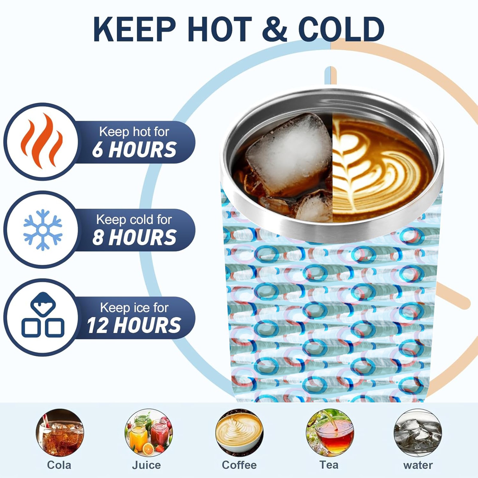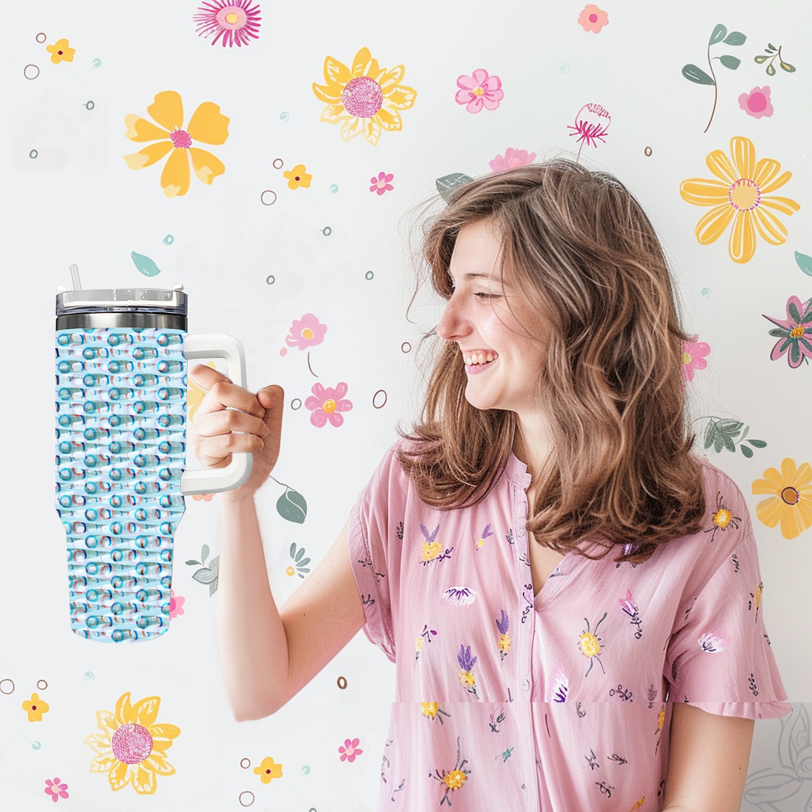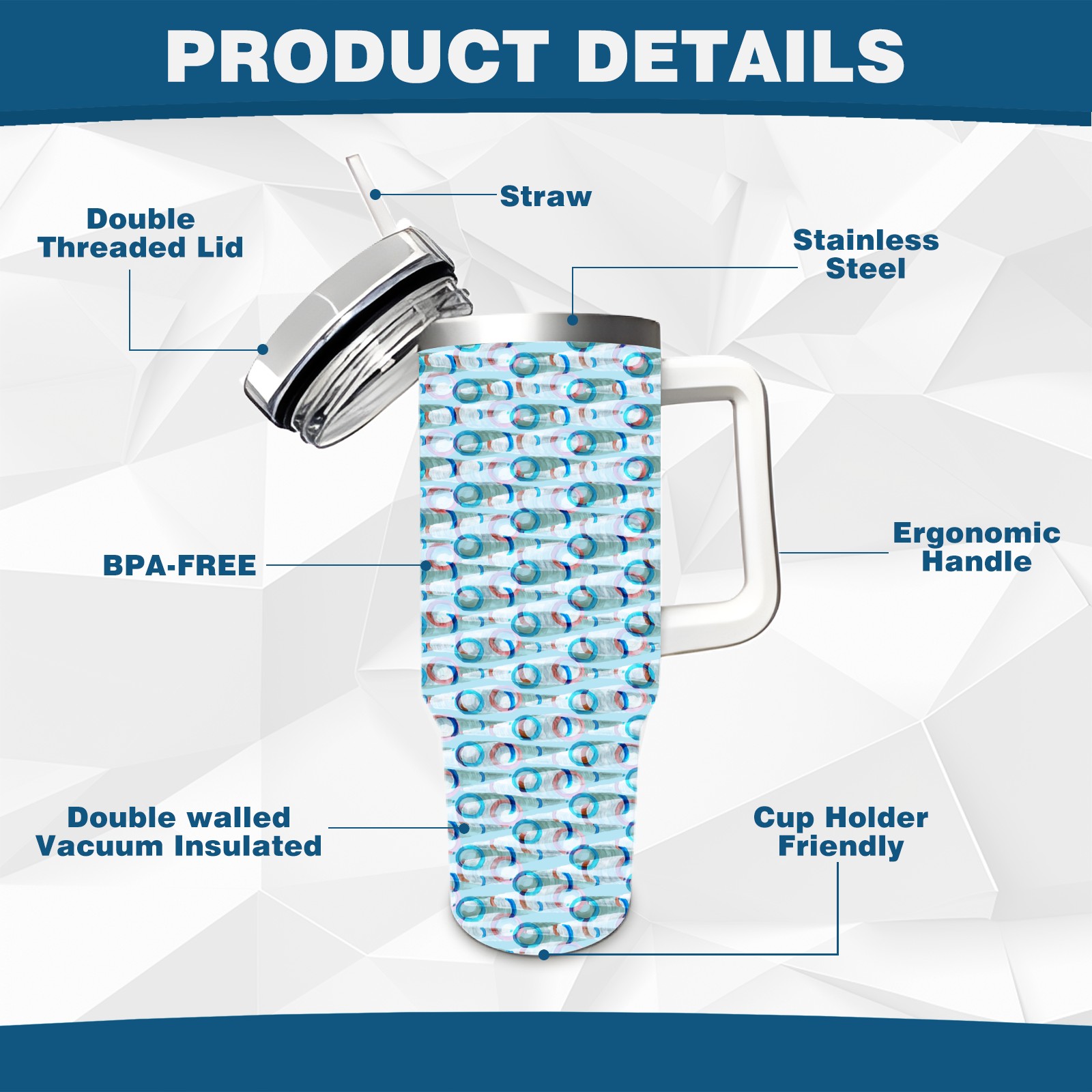 40oz Watercolor Blue Pattern thermos with lid and straw, leak-proof stainless steel, with handle, spill-proof bottle, convenient for travel(blue)