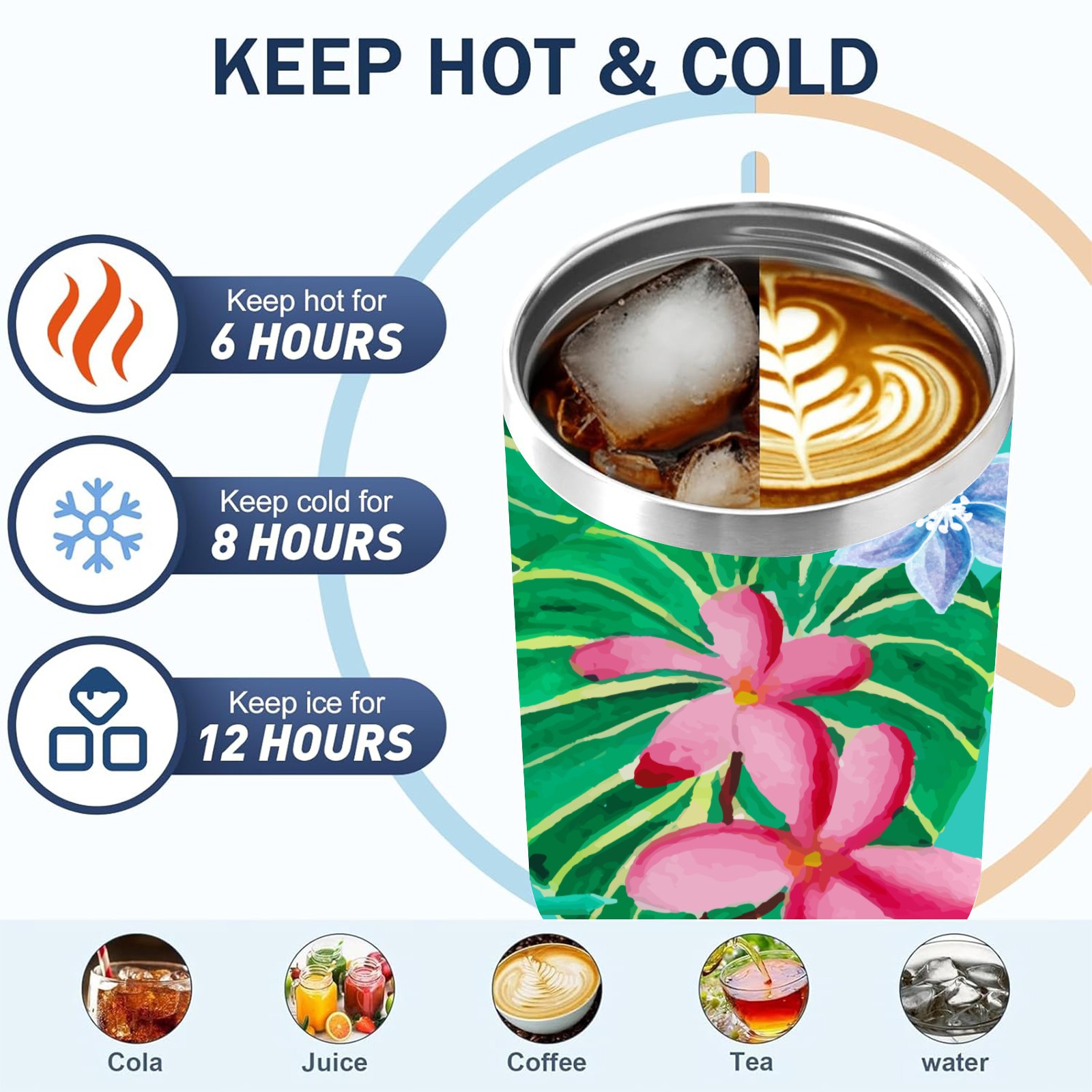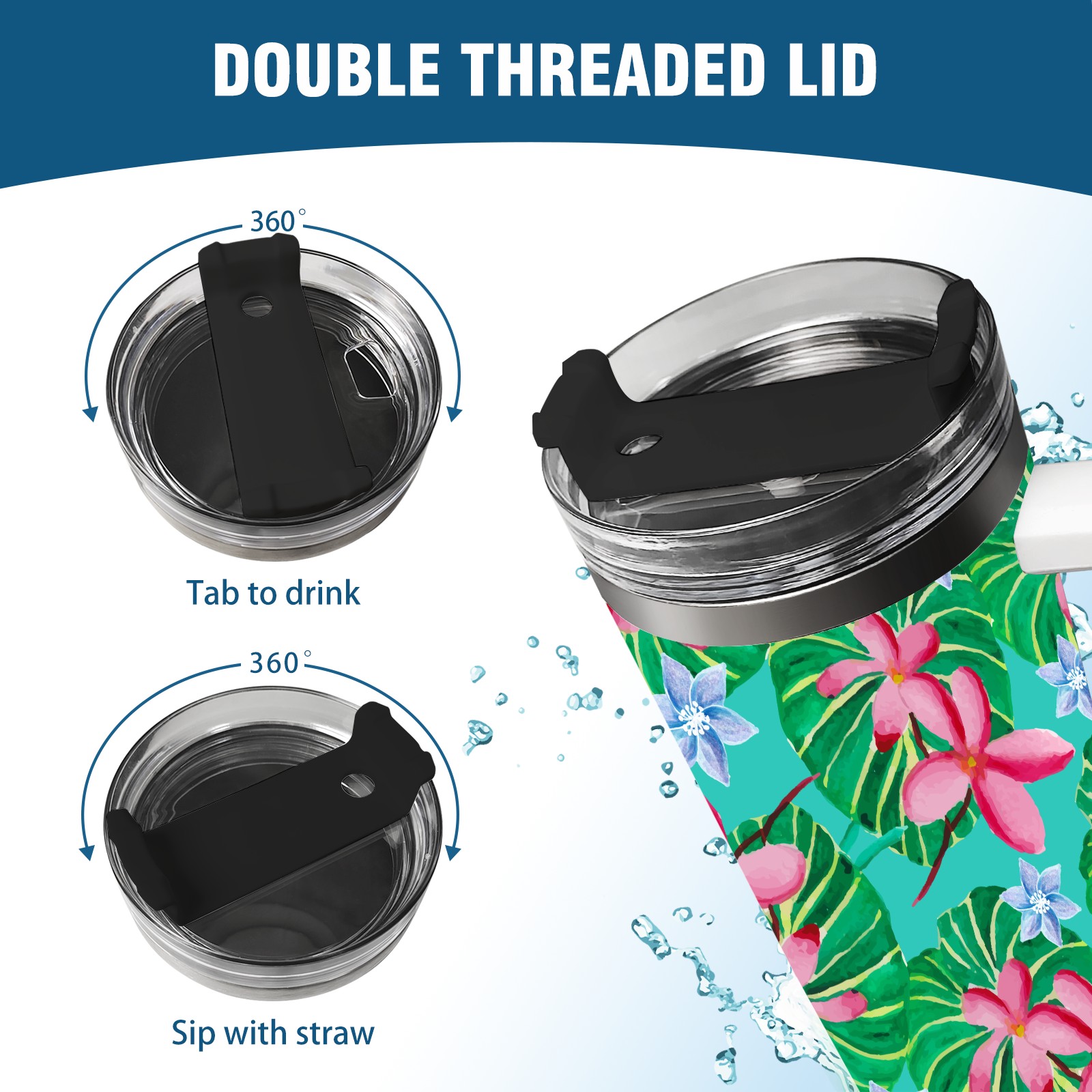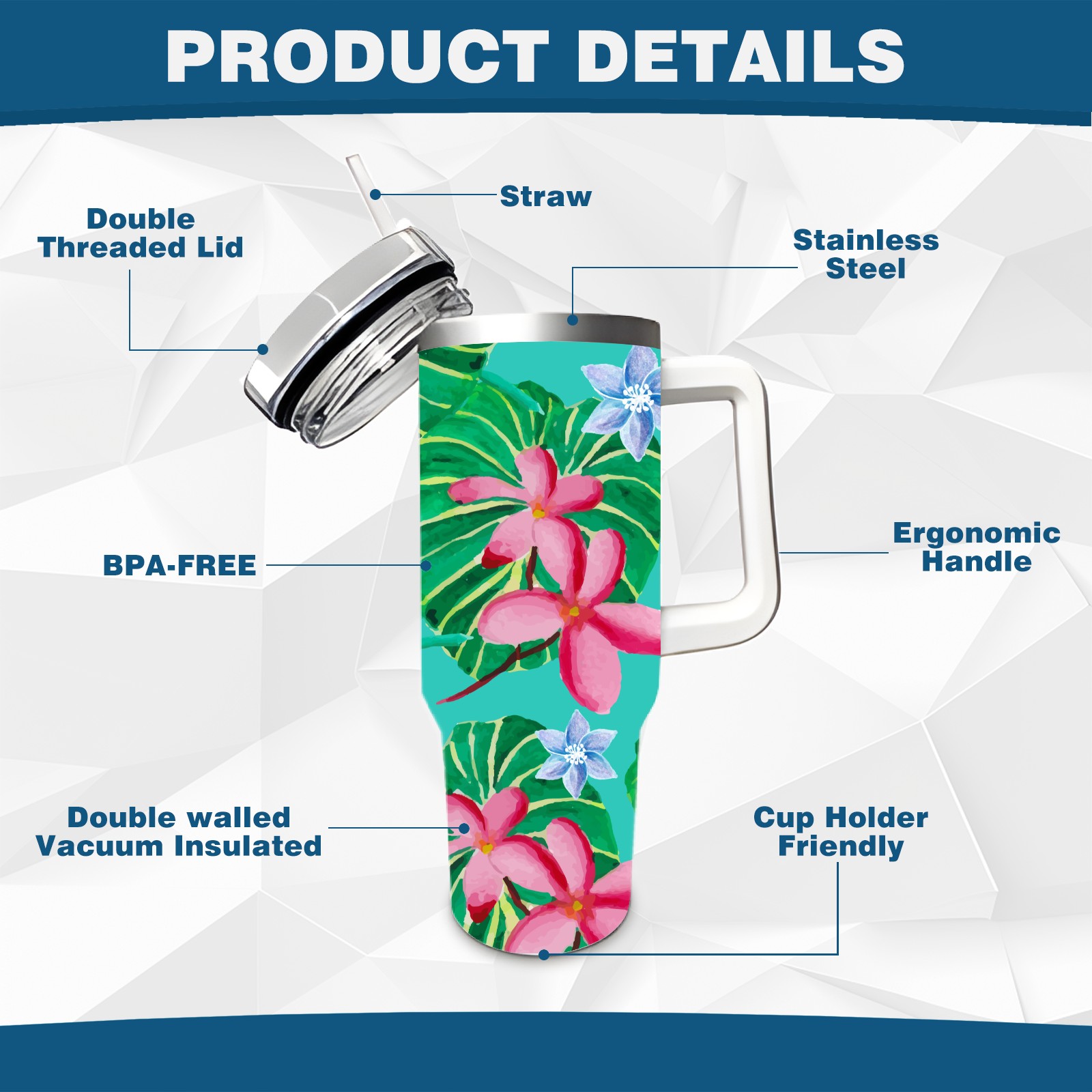 40oz Tropical Summer Plant thermos with lid and straw, leak-proof stainless steel, with handle, spill-proof bottle, convenient for travel(blue)