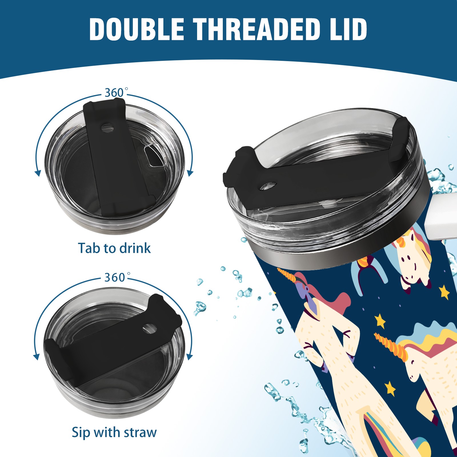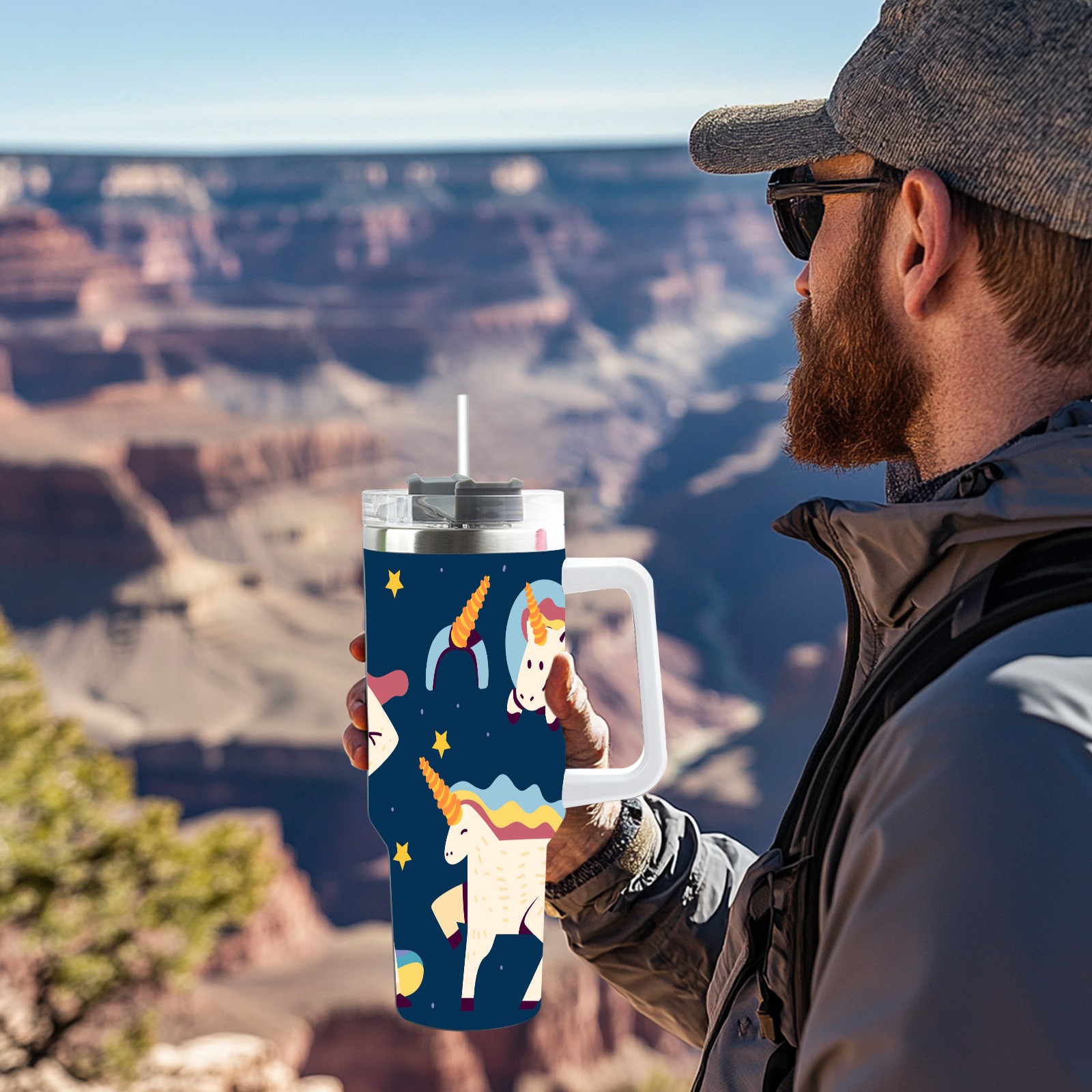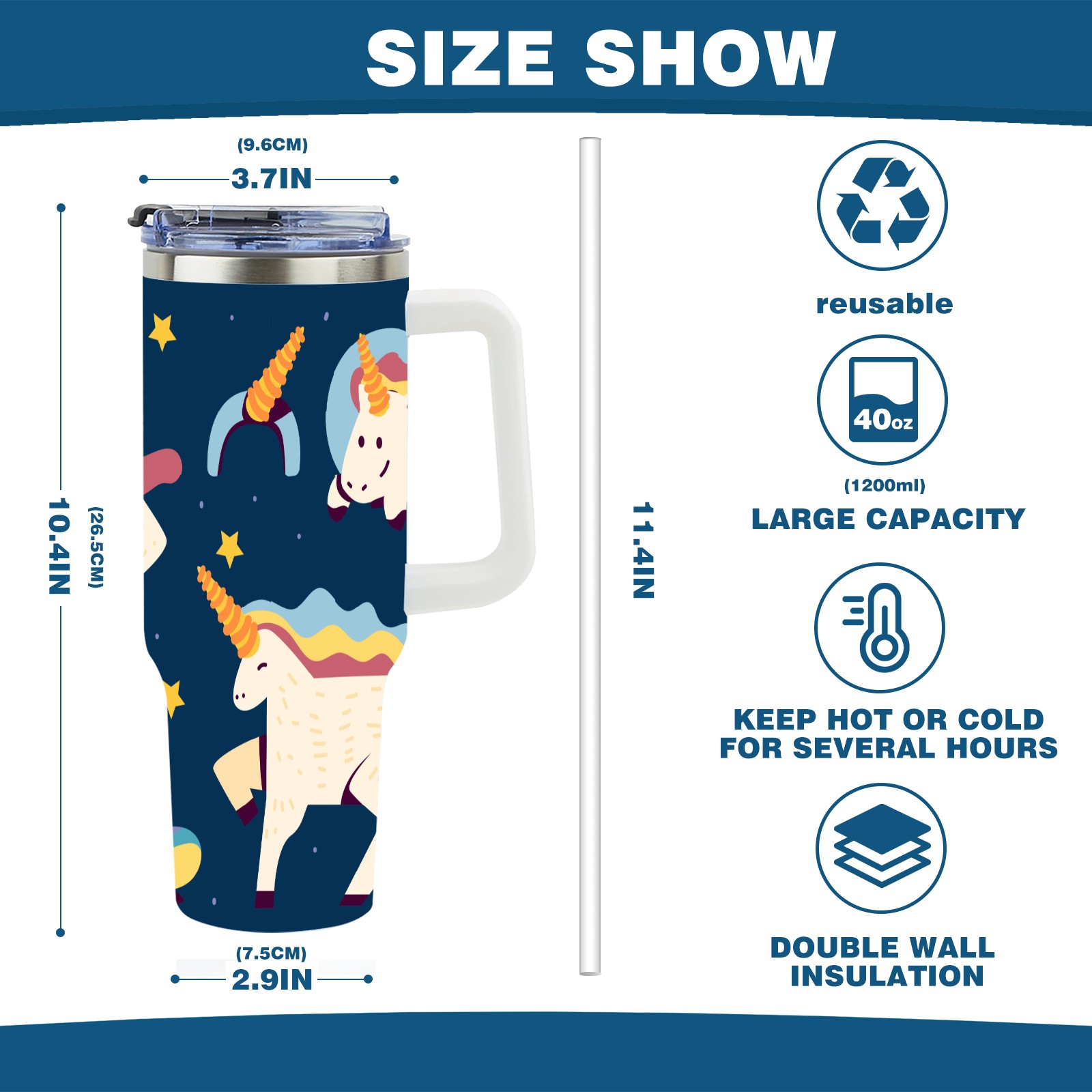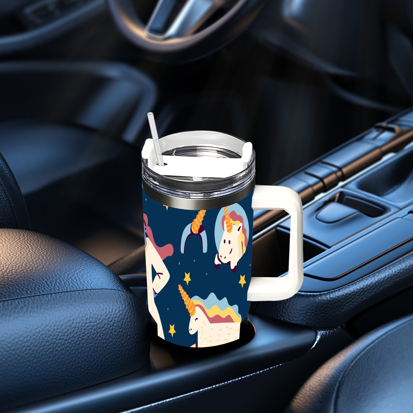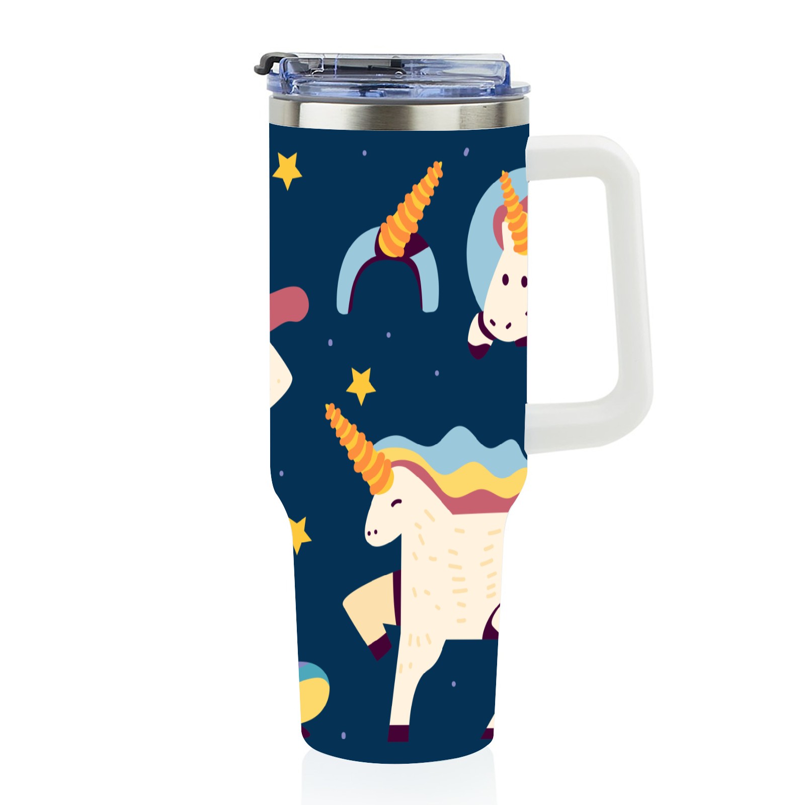 40oz Wannabe Unicorn Clipart Set-01 thermos with lid and straw, leak-proof stainless steel, with handle, spill-proof bottle, convenient for travel(blue)