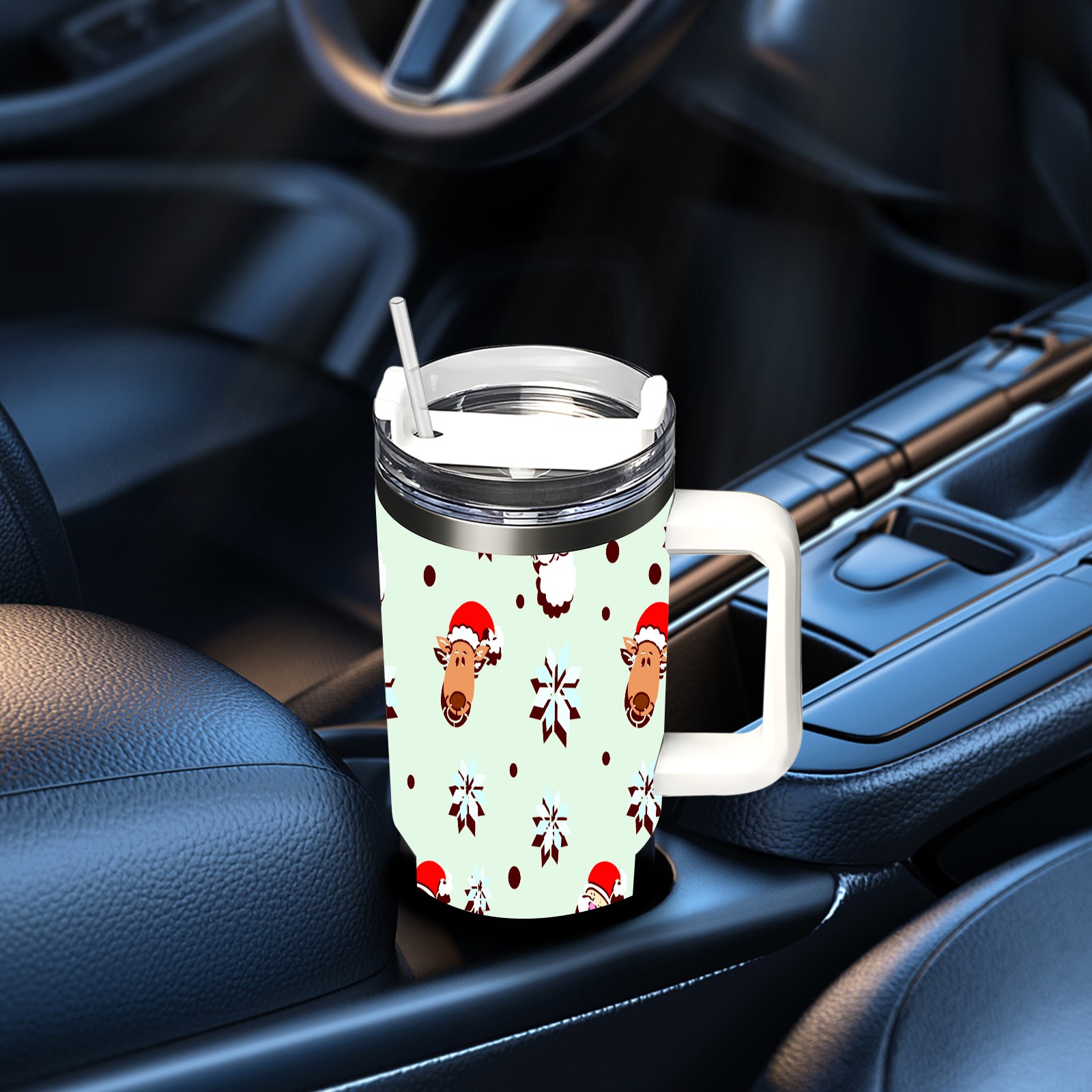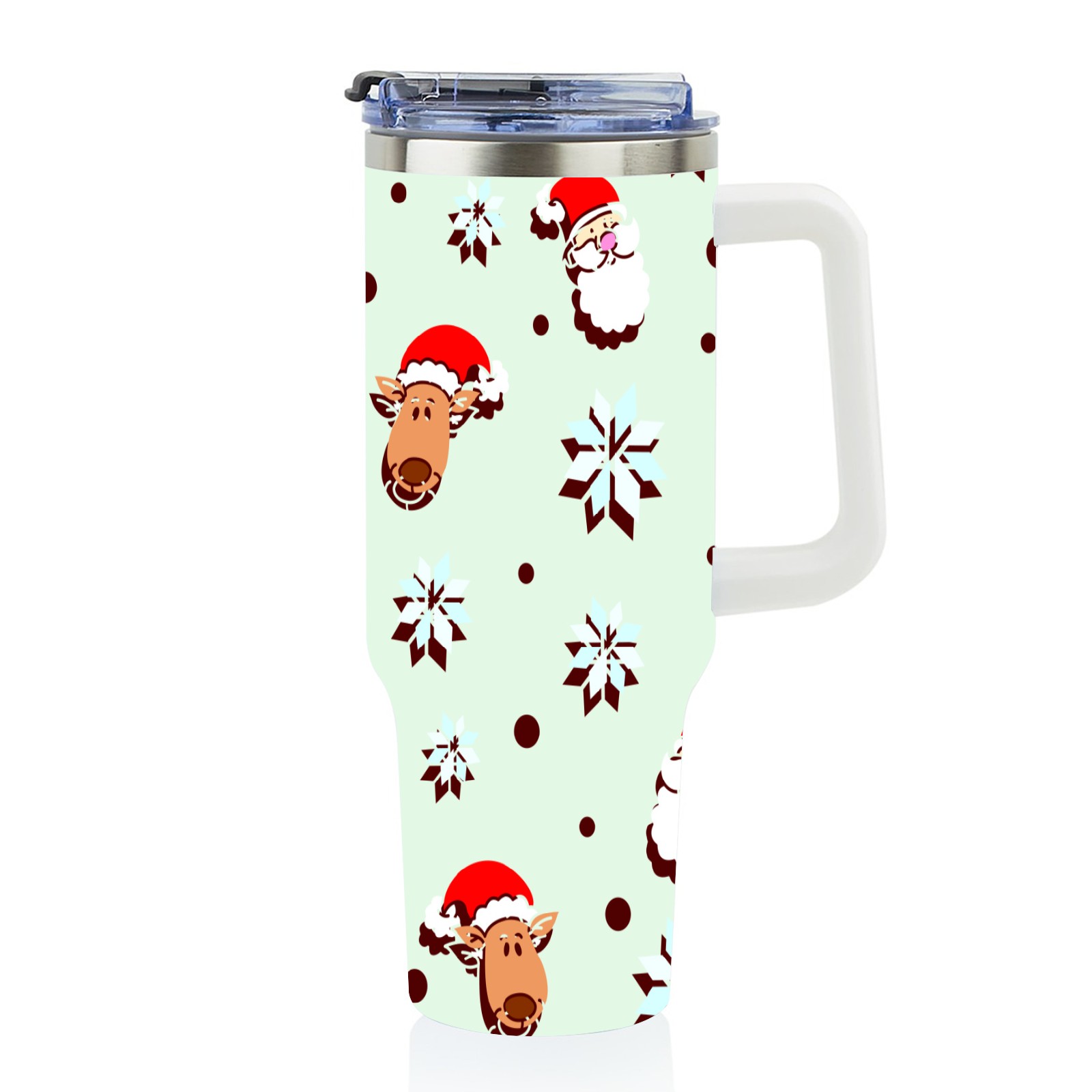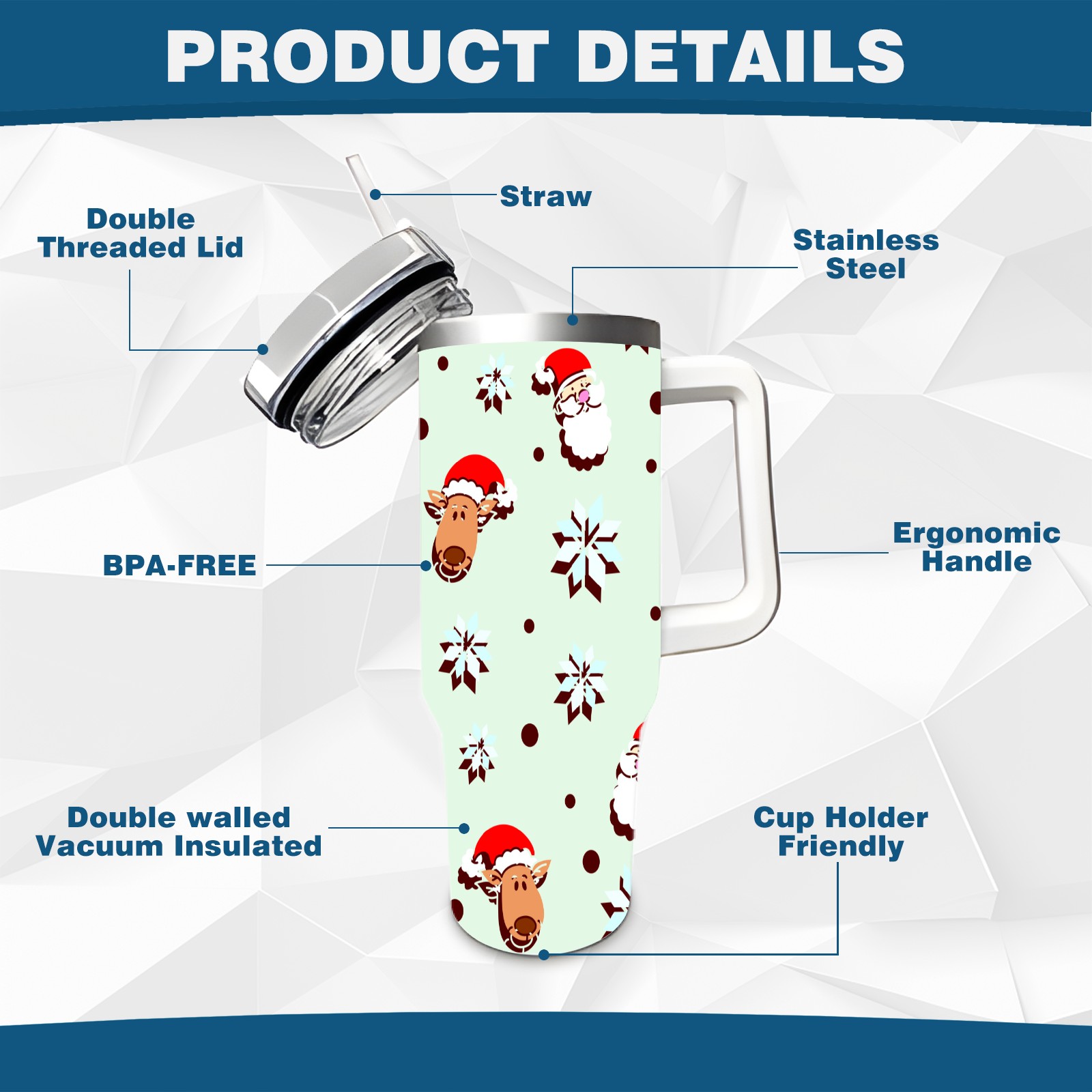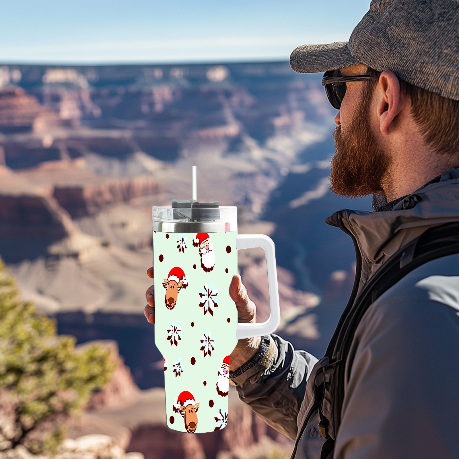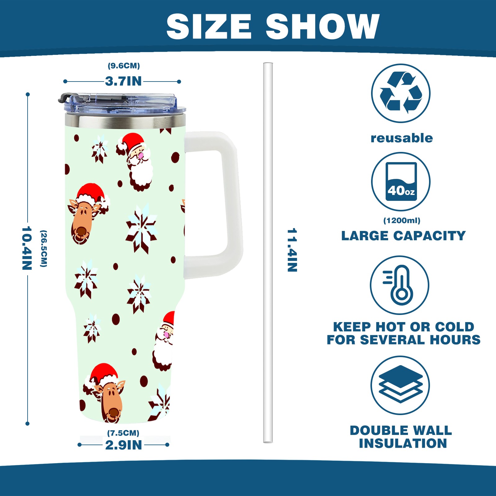 40oz Santa And Elk thermos with lid and straw, leak-proof stainless steel, with handle, spill-proof bottle, convenient for travel(blue)