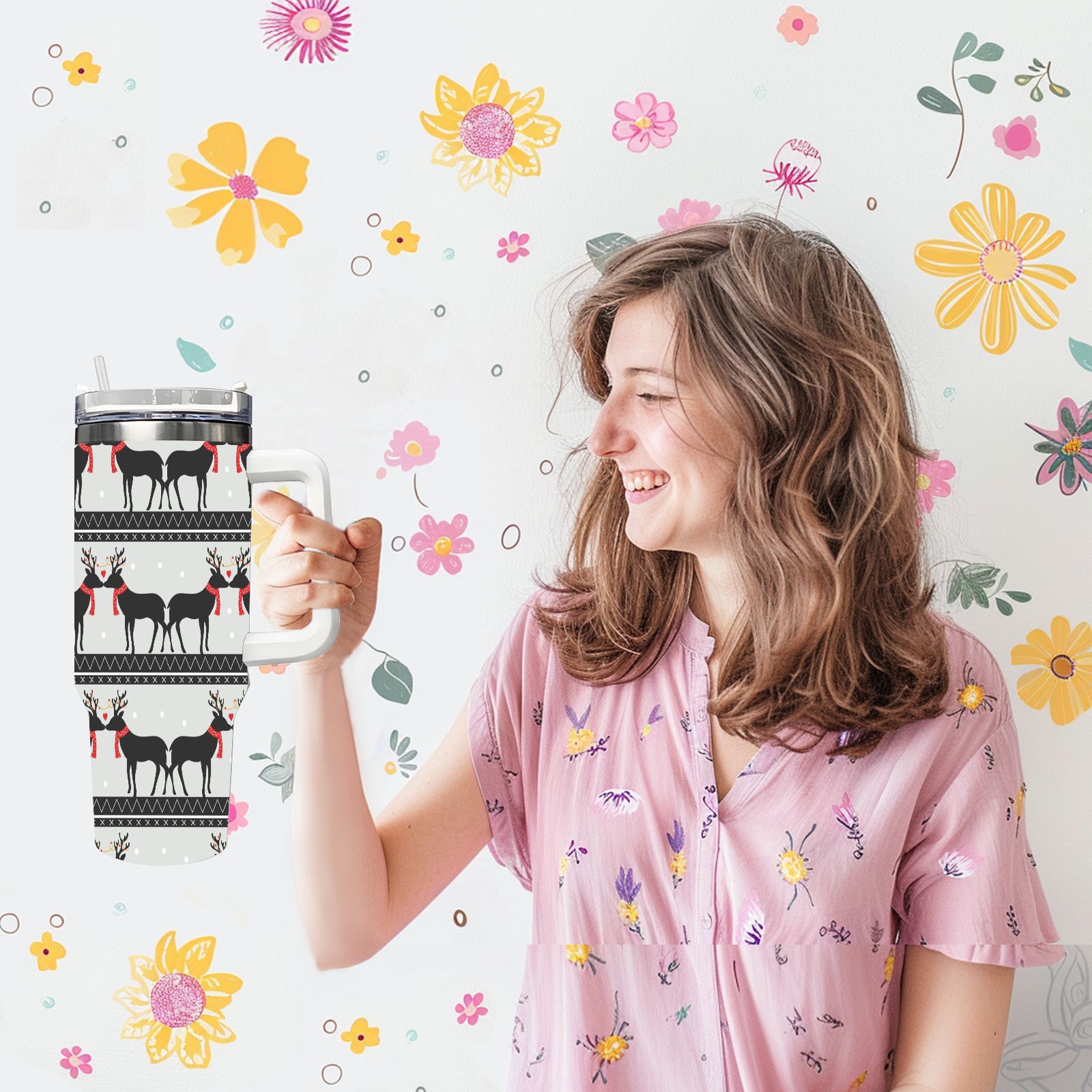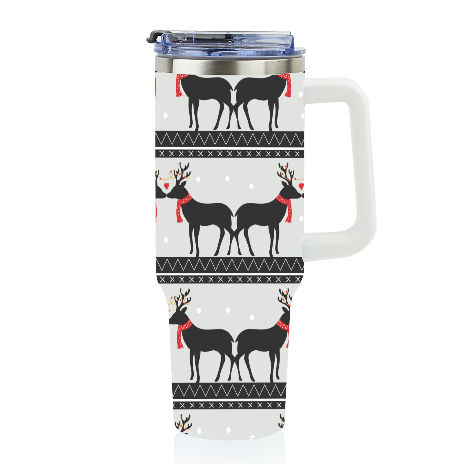 40oz Romantic Deer Vector Pattern-01 thermos with lid and straw, leak-proof stainless steel, with handle, spill-proof bottle, convenient for travel(blue)