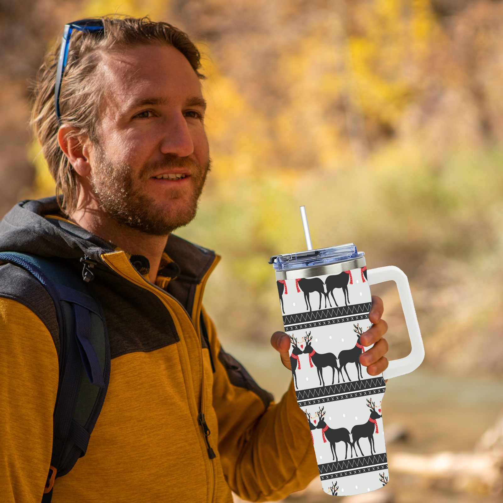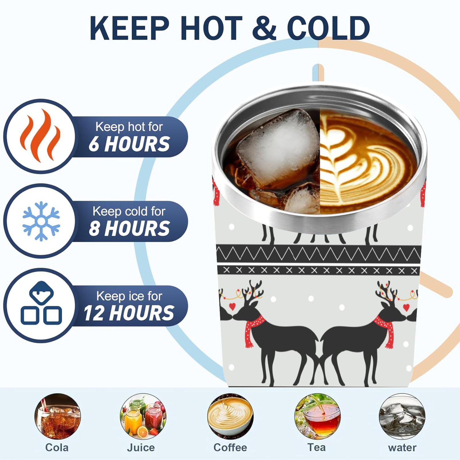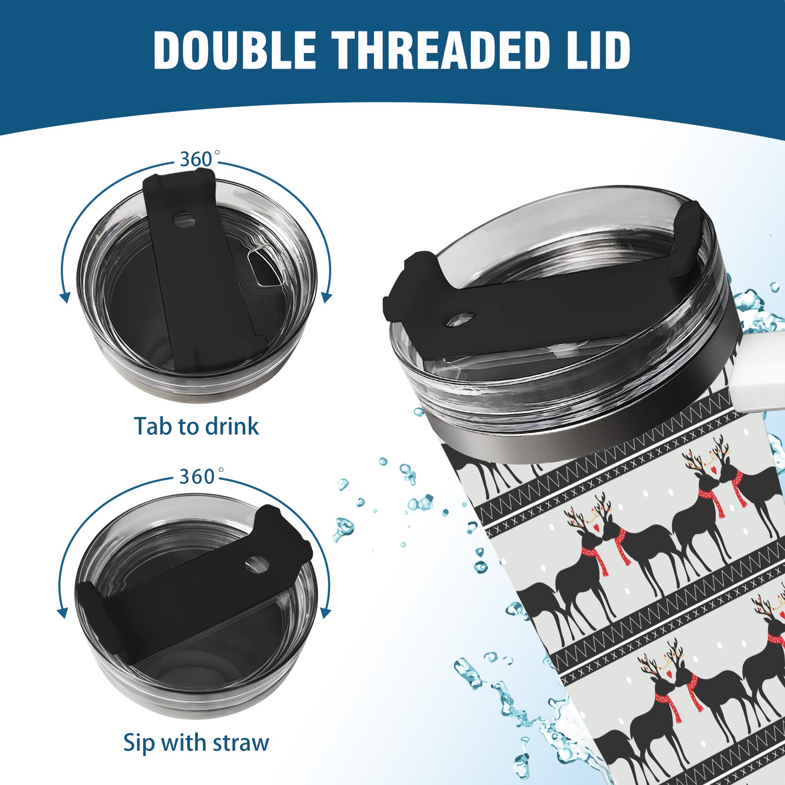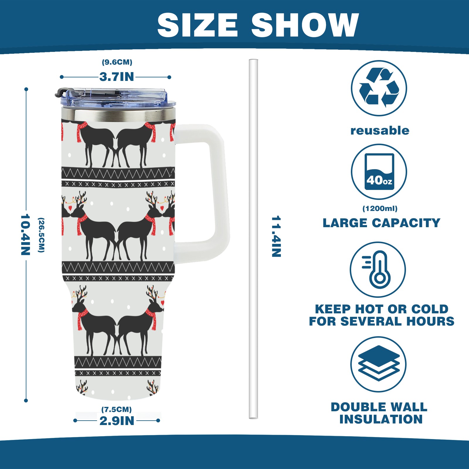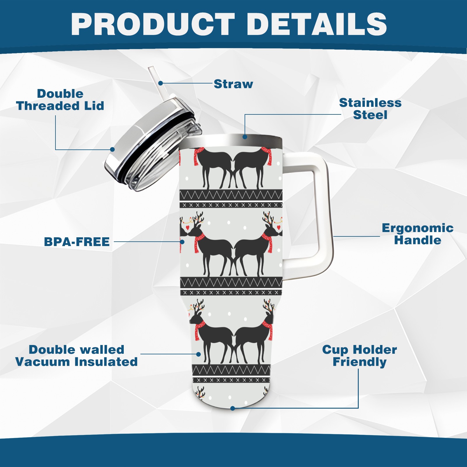 • <p>This multi-functional insulated water bottle features a simple and practical design, suitable for various daily scenarios. The ergonomic handle allows for easy one-handed drinking, and the detachable handle can be adjusted or removed as needed, making it convenient for commuting, exercising, or carrying to meetings. Made of high-quality stainless steel, it is BPA-free and features double-walled vacuum insulation technology that keeps drinks cold for 8 hours and hot for 6 hours, ensuring you can enjoy your beverage at the perfect temperature anytime, anywhere. The 40-ounce Christmas edition comes with a sliding lid, silicone straw, and a non-slip design. Accessories are dishwasher safe, and the narrow bottom and wide mouth design perfectly fits car cup holders. The exclusive flip-top straw lid is environmentally friendly and durable, with a one-touch leak-proof closure and two drinking modes: sip and gulp. A dust cover provides effective protection. This bottle is suitable for travel, office work, sports, camping, and other occasions, making it a thoughtful gift for friends and family.</p>