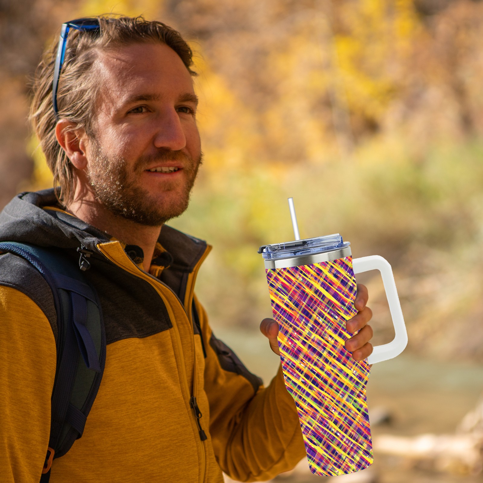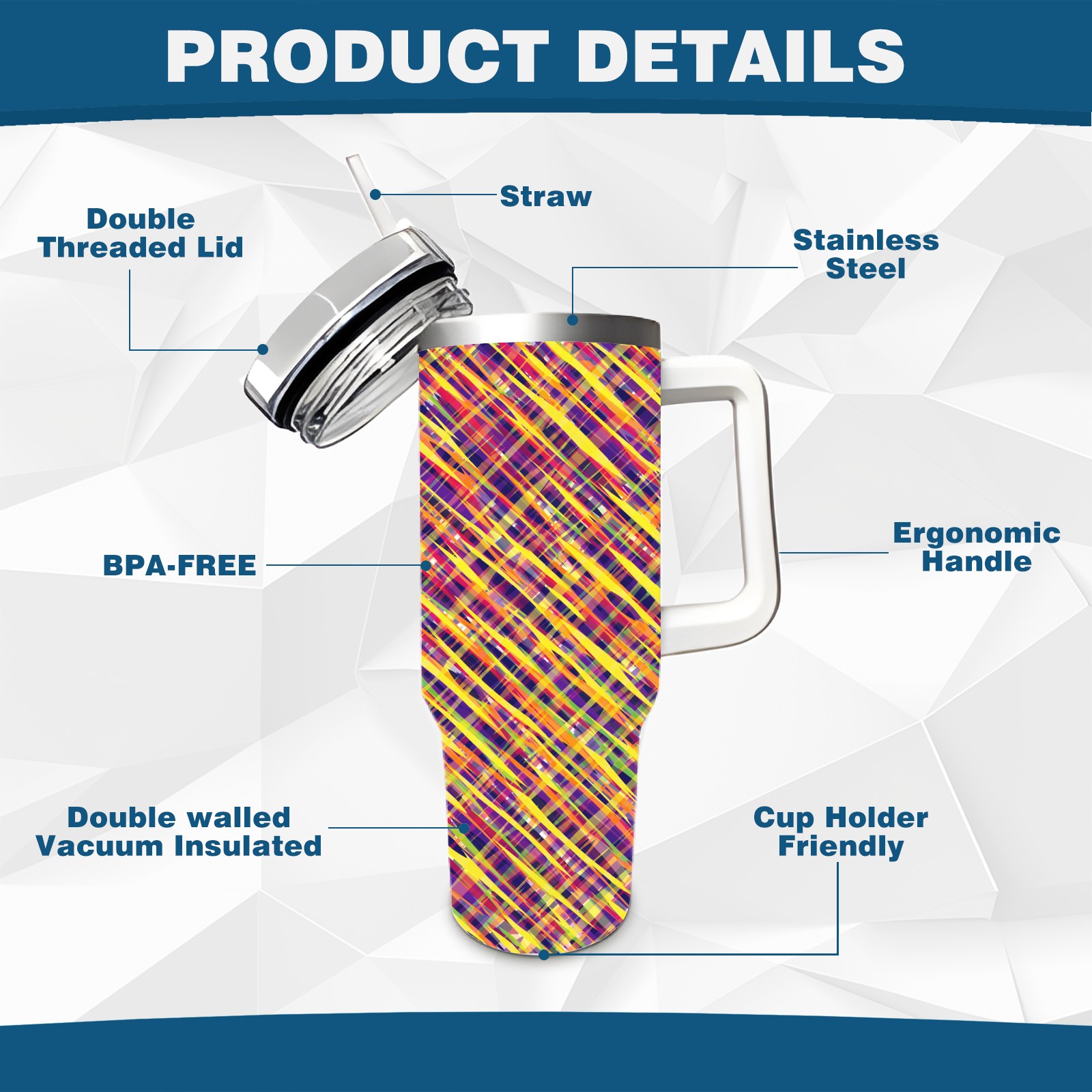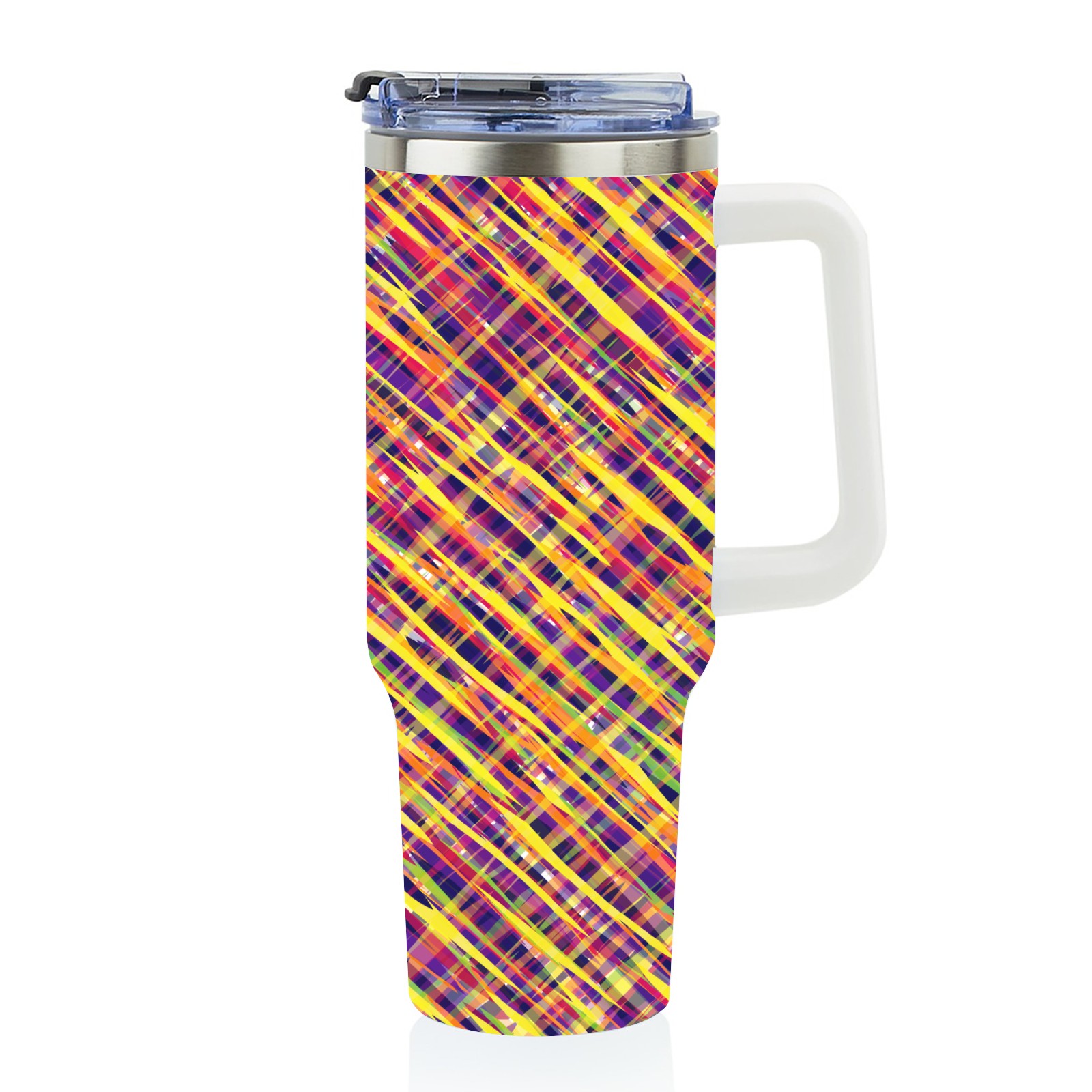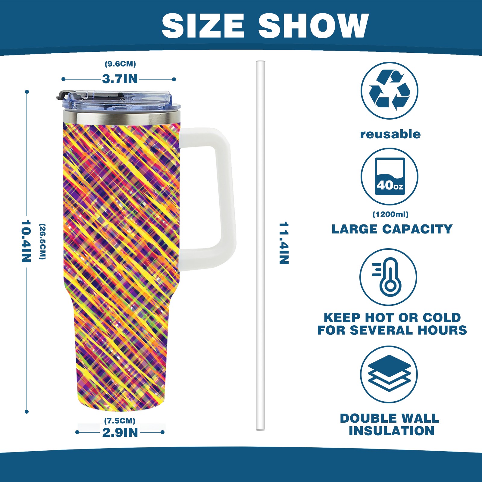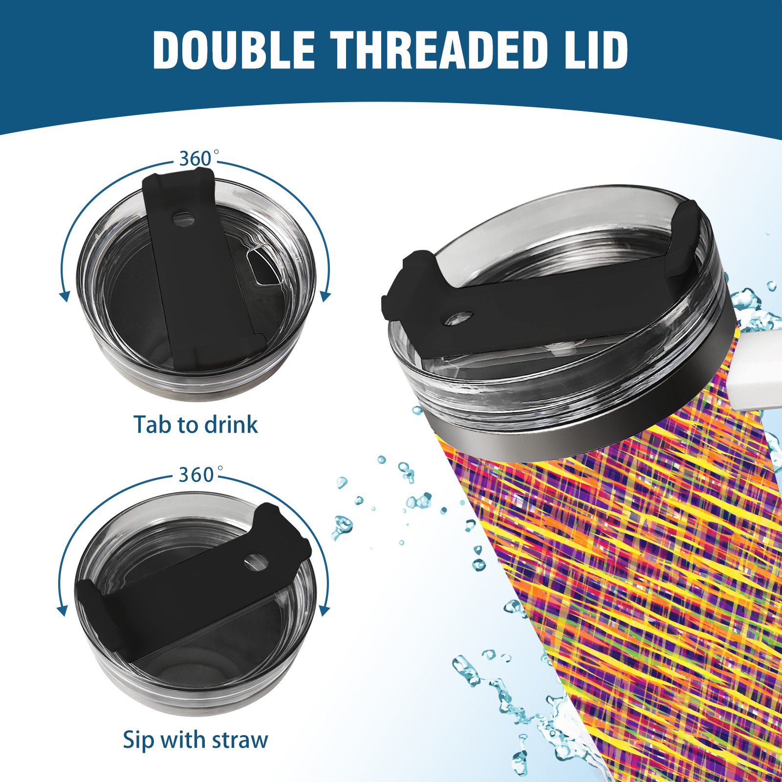 40oz Multicolored Lines thermos with lid and straw, leak-proof stainless steel, with handle, spill-proof bottle, convenient for travel(blue)