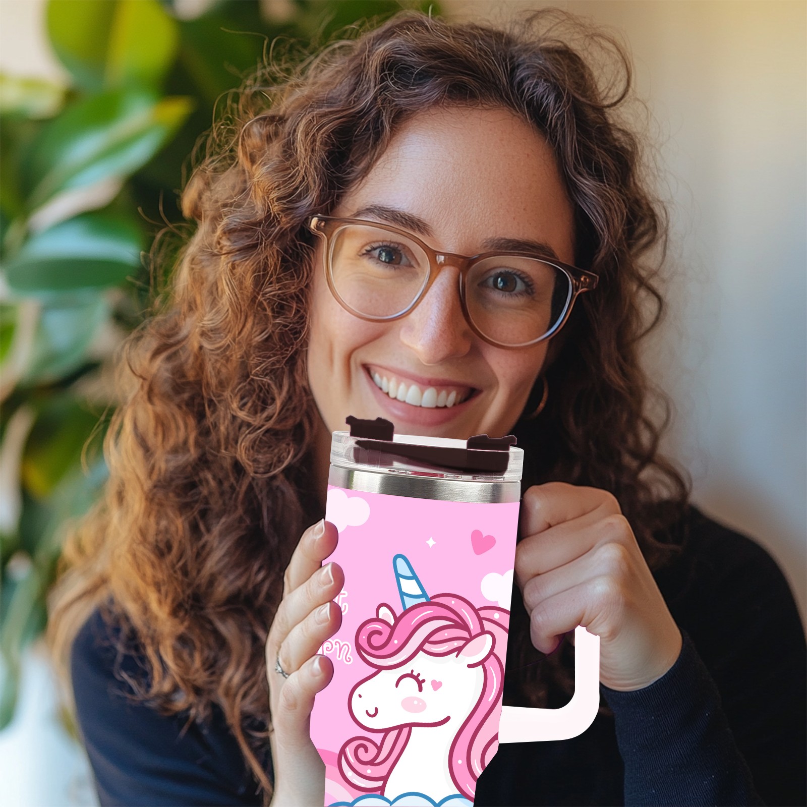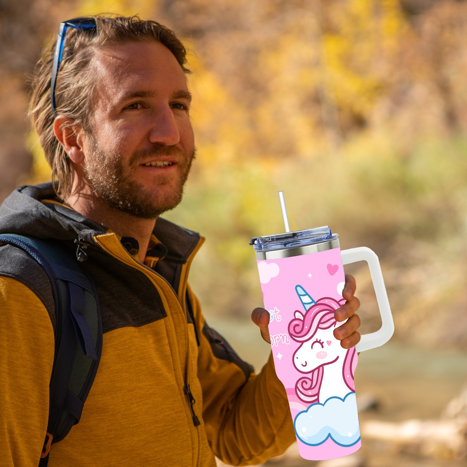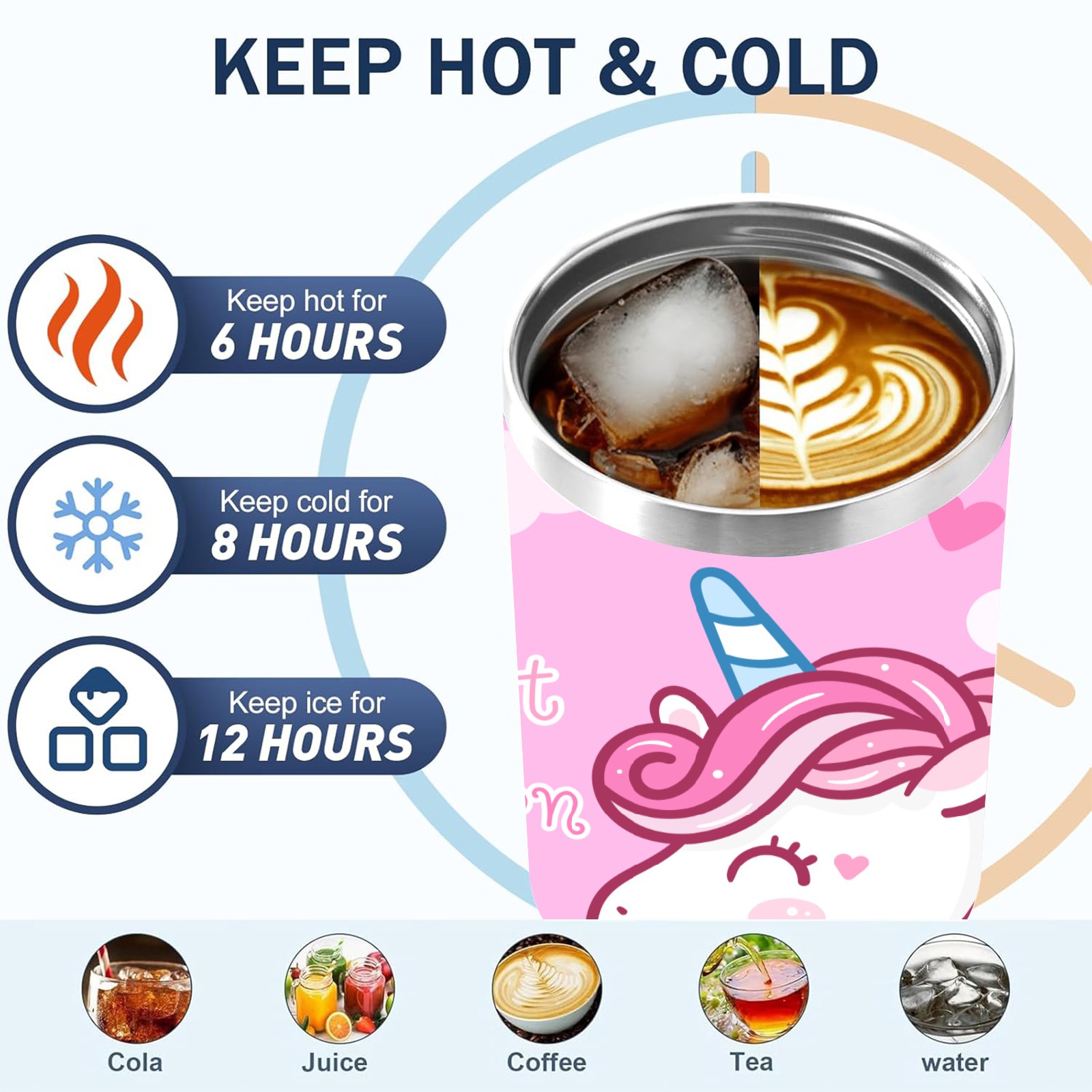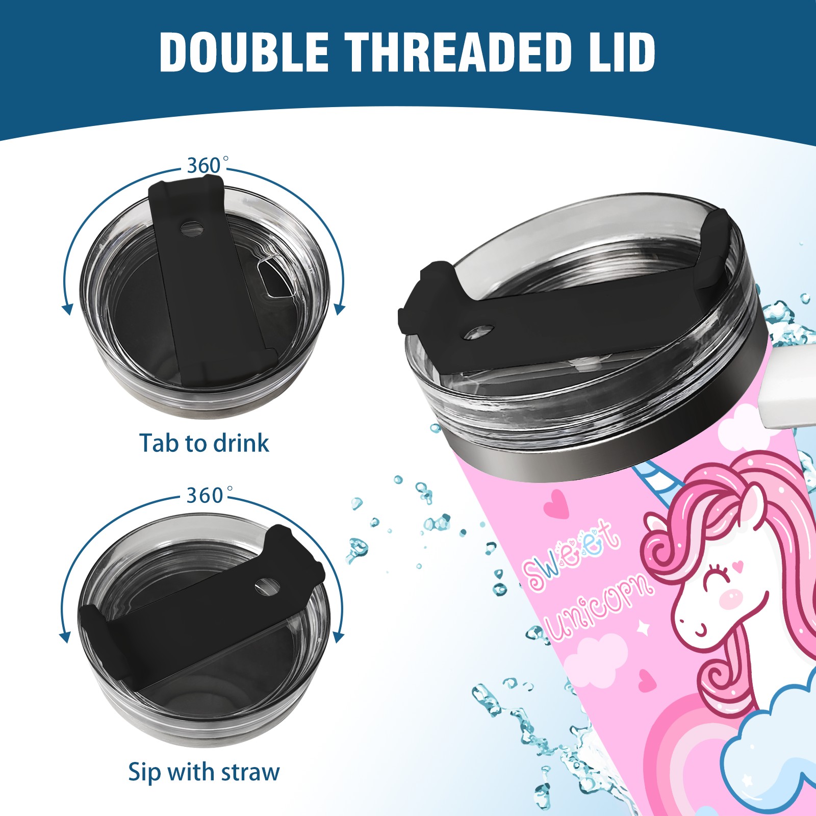 40oz Kawaii Unicorn Head thermos with lid and straw, leak-proof stainless steel, with handle, spill-proof bottle, convenient for travel(blue)