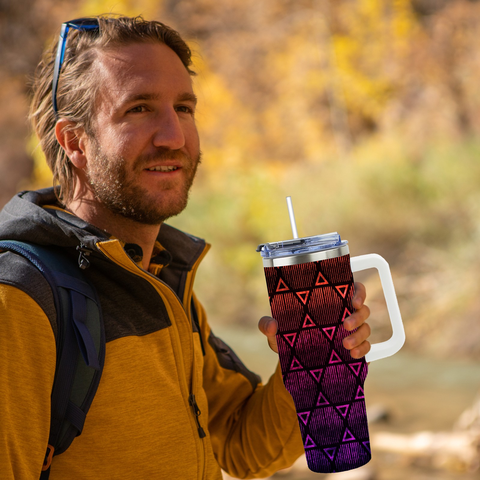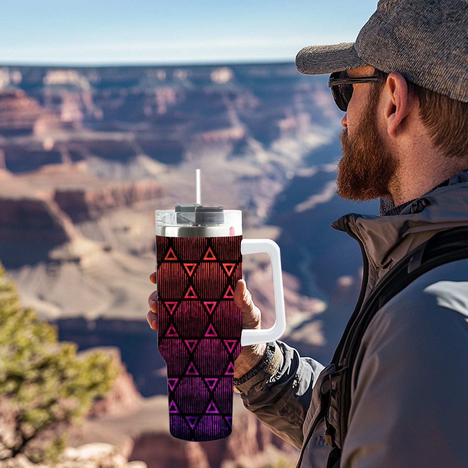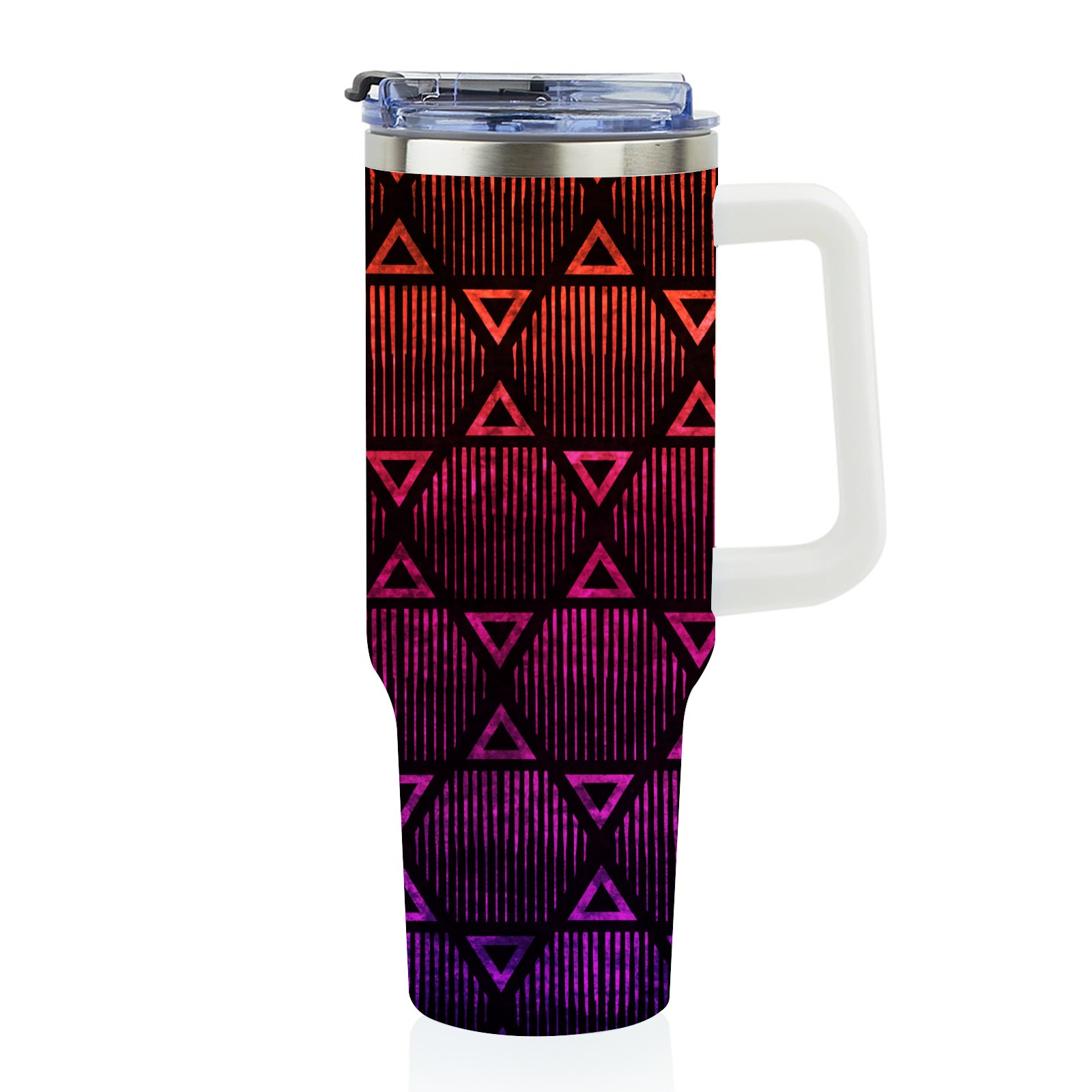 40oz Geometric Pattern thermos with lid and straw, leak-proof stainless steel, with handle, spill-proof bottle, convenient for travel(blue)