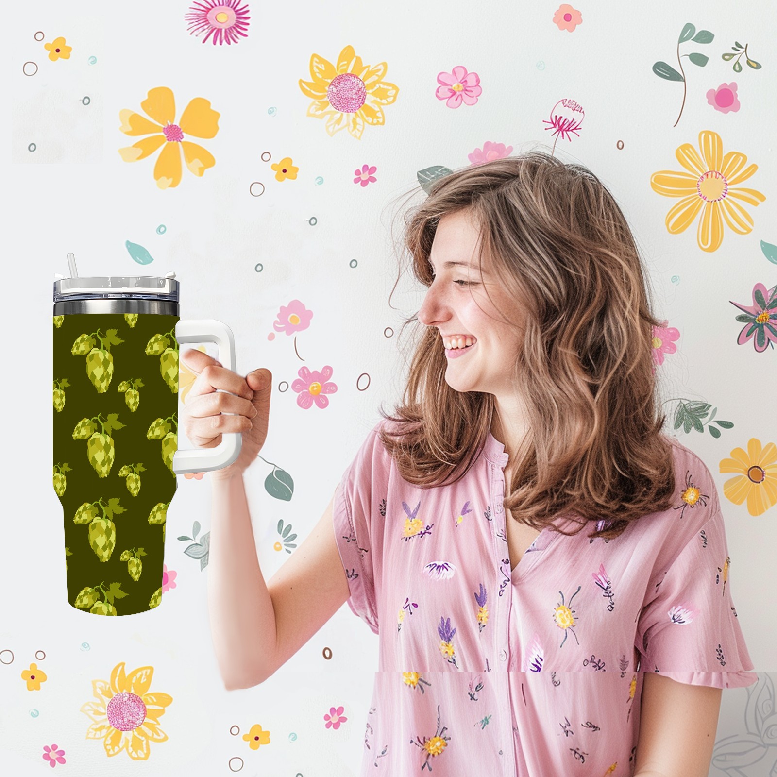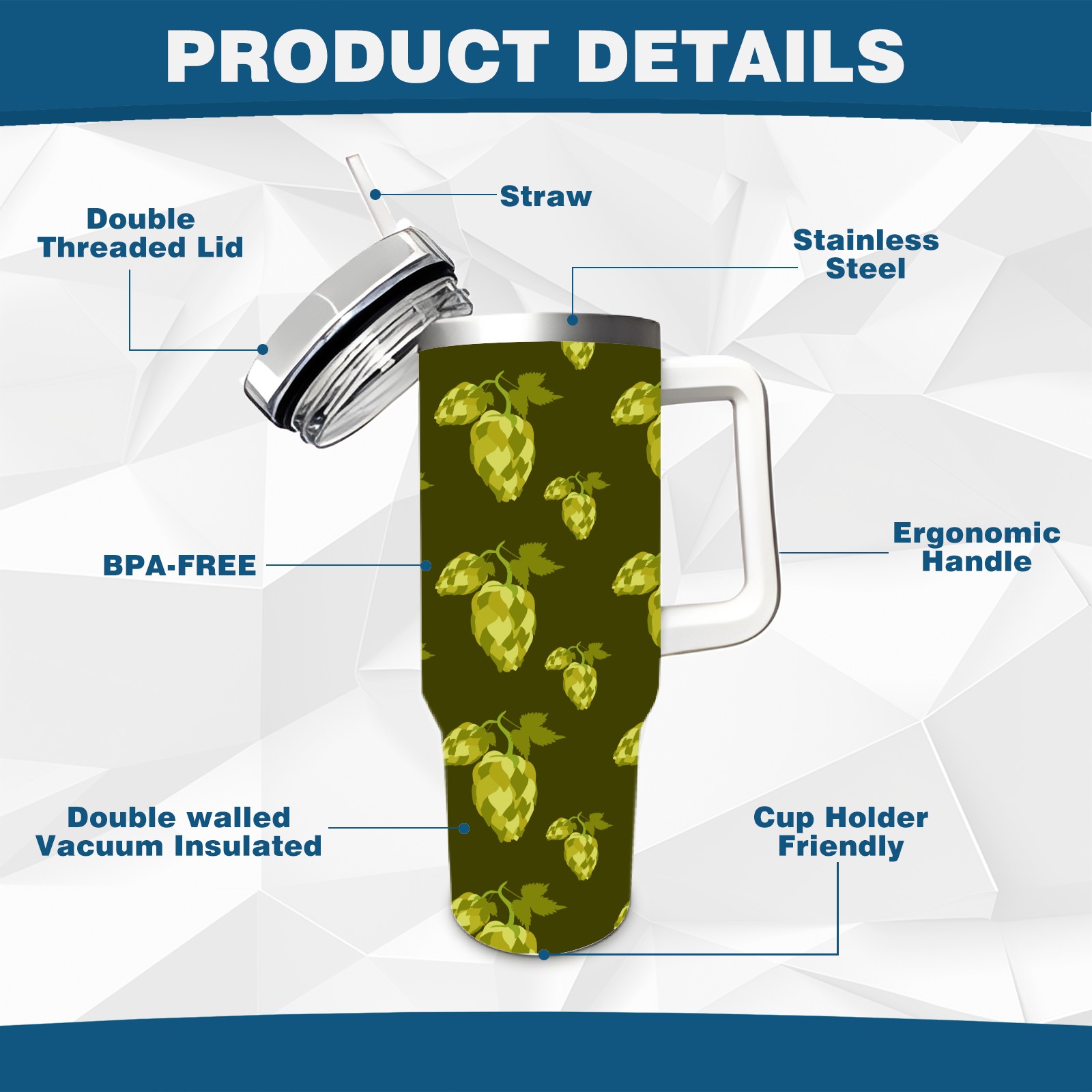 40oz Green Fruit thermos with lid and straw, leak-proof stainless steel, with handle, spill-proof bottle, convenient for travel(blue)