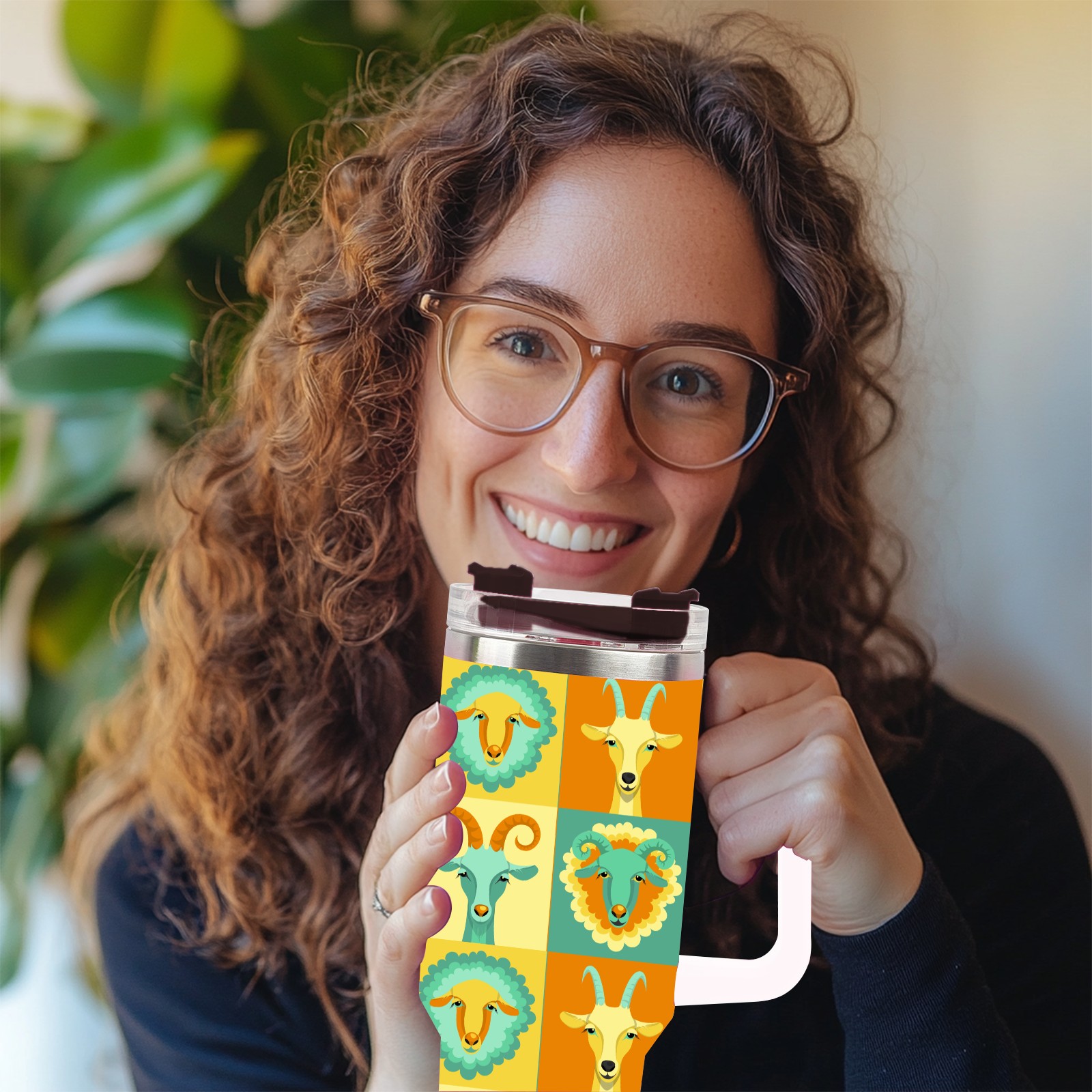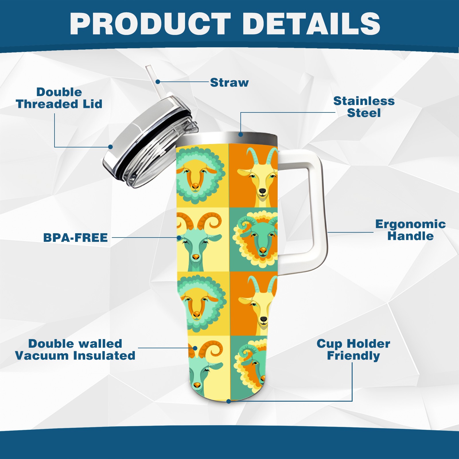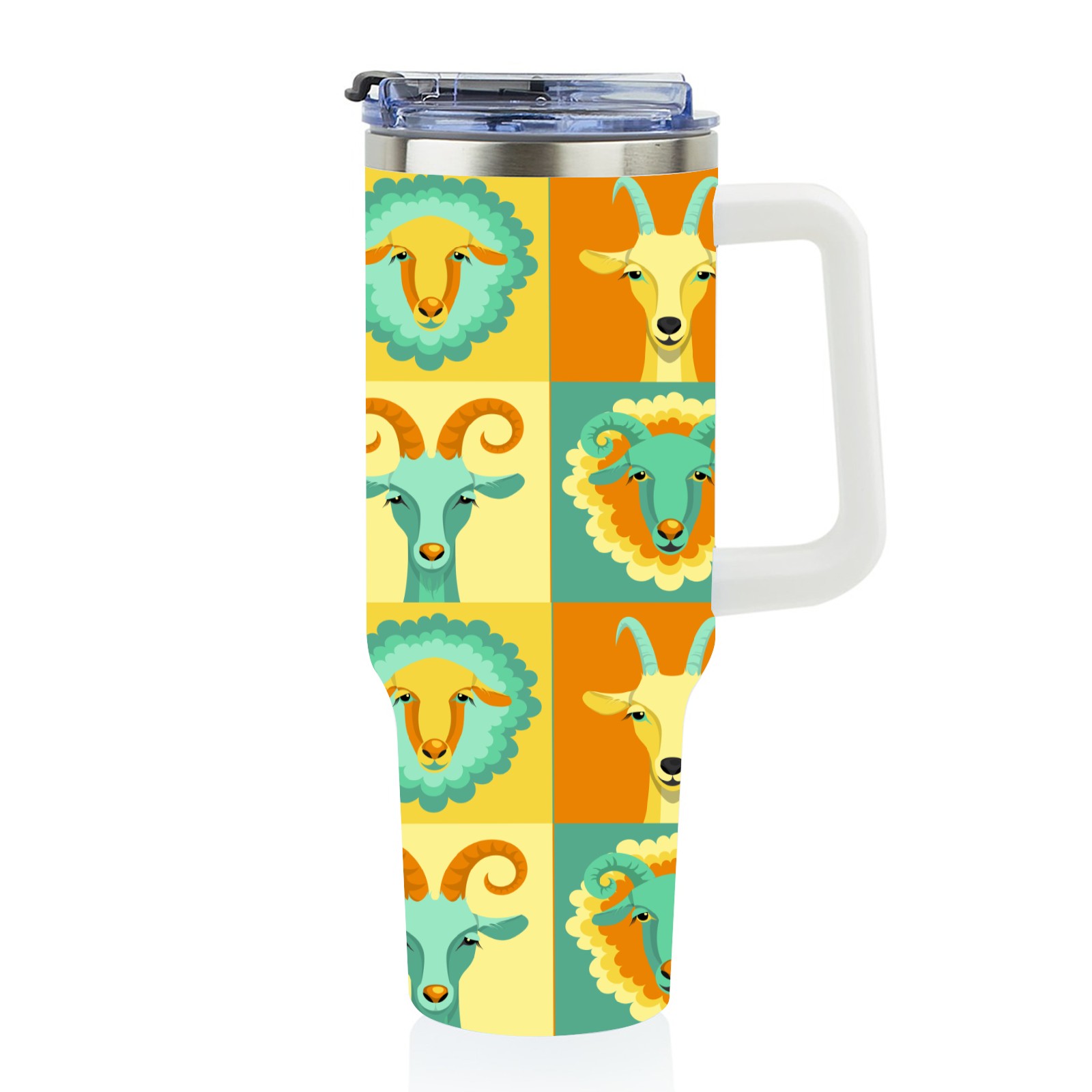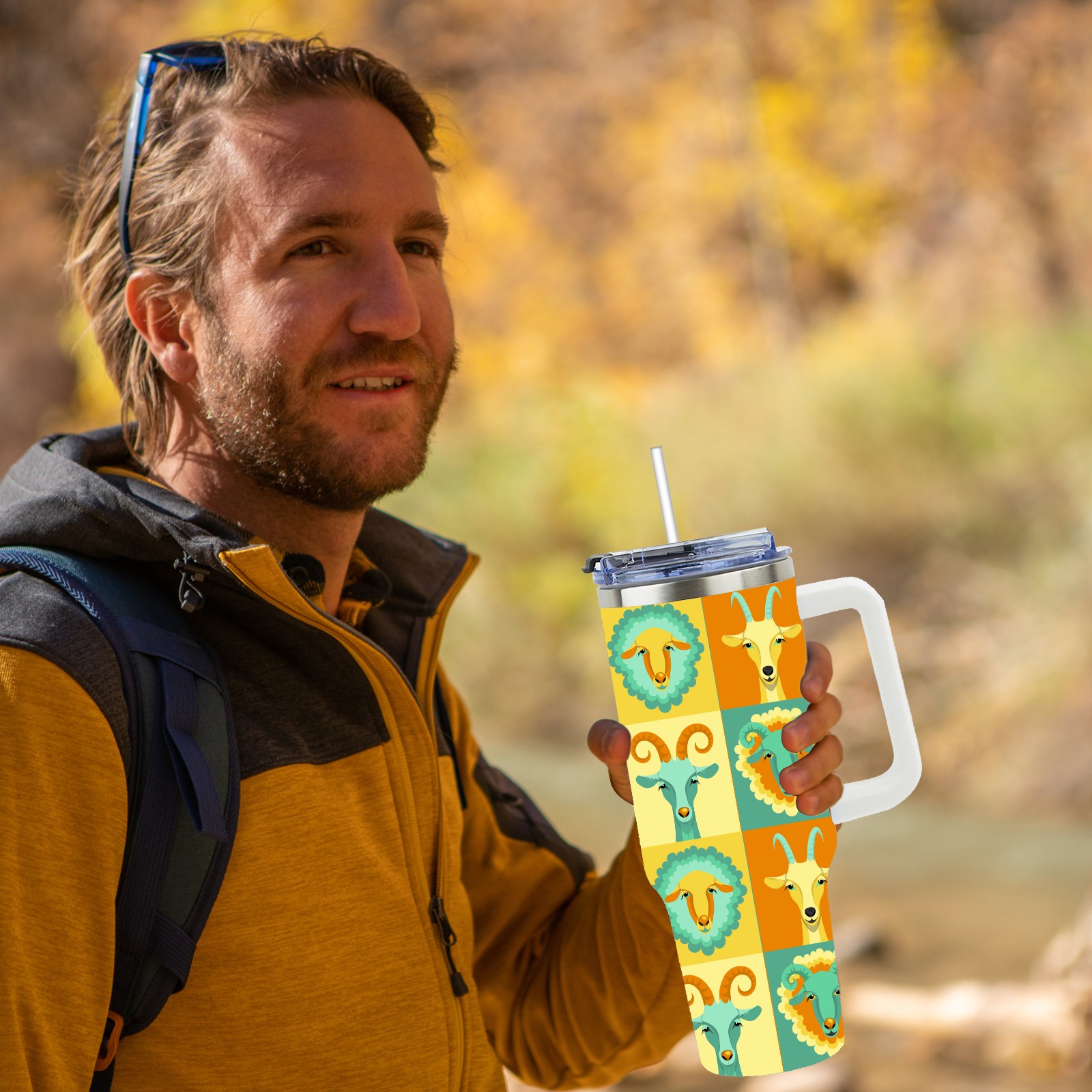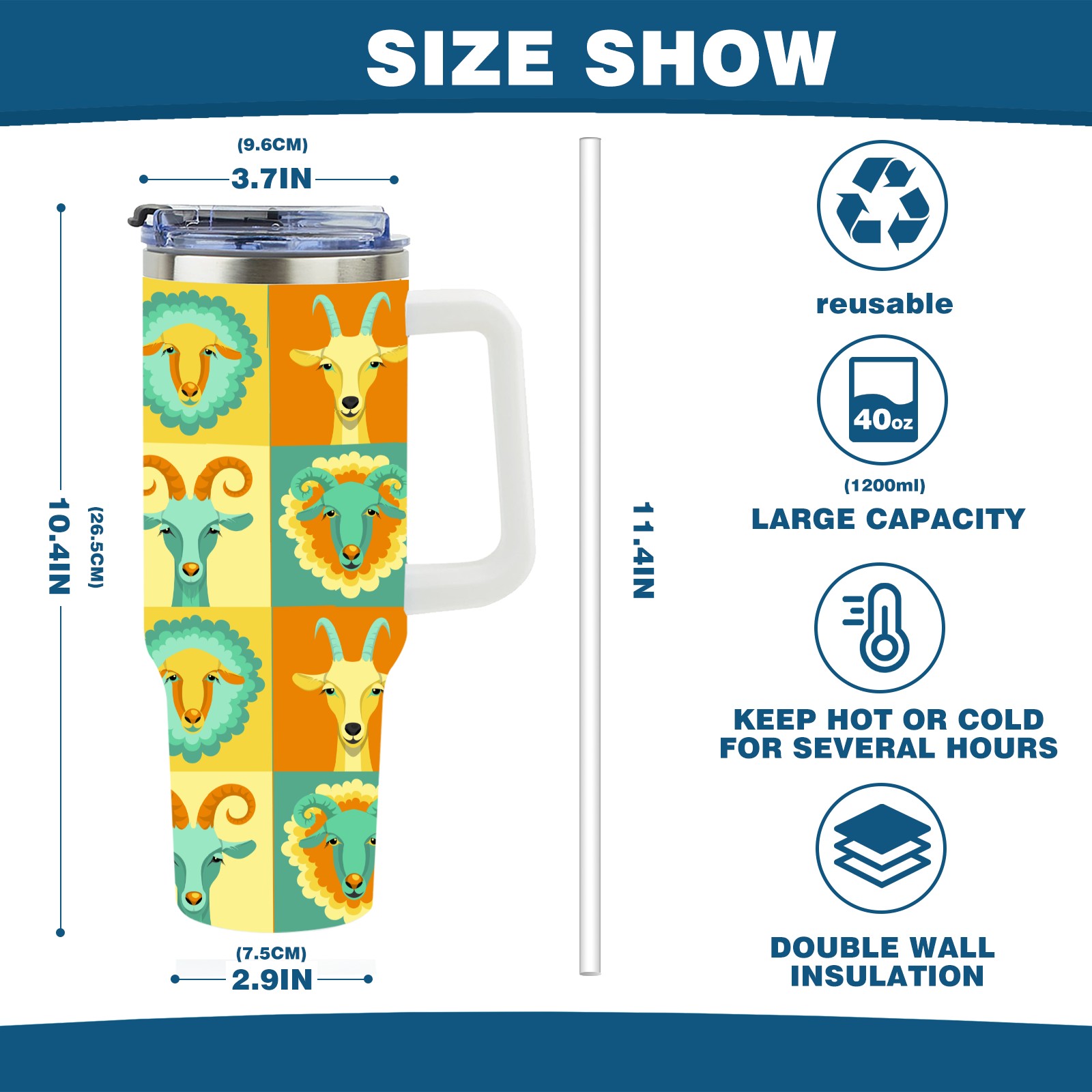 40oz Goat And Sheep thermos with lid and straw, leak-proof stainless steel, with handle, spill-proof bottle, convenient for travel(blue)