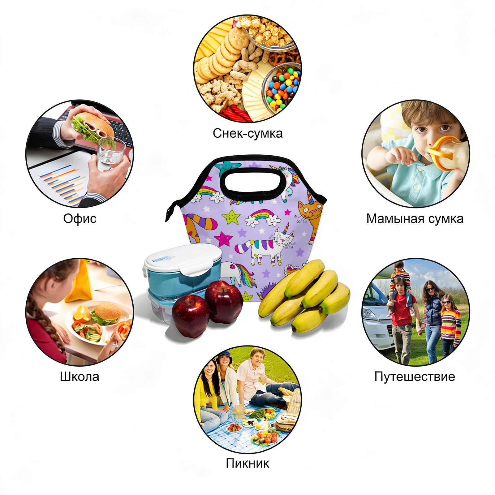 手提餐包Colorful Rainbow Cat Unicorn Stars Pattern