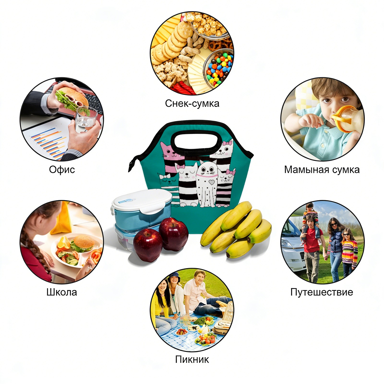 手提餐包Funny Colorful Cat Bow