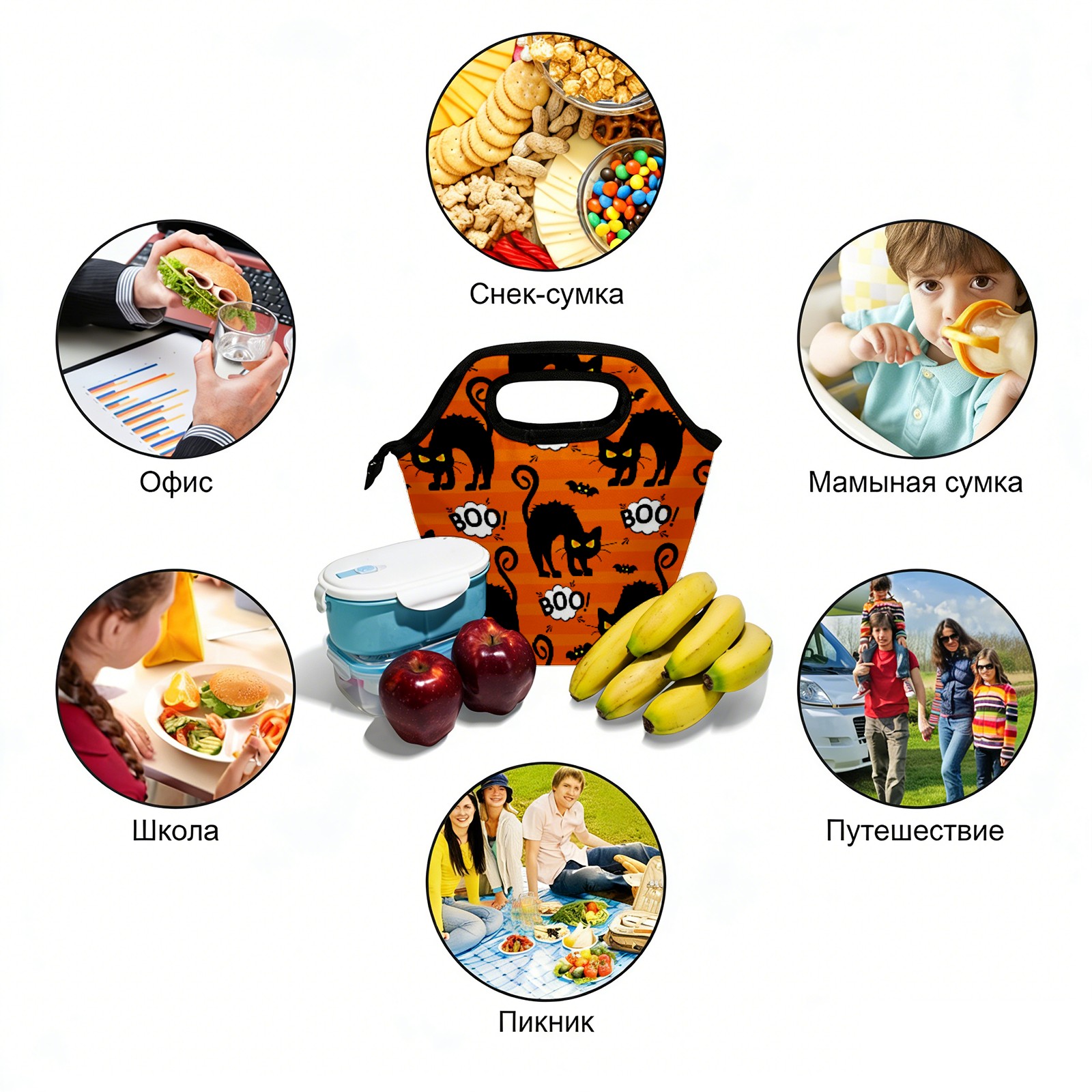手提餐包Cartoon Animal Cat Bat