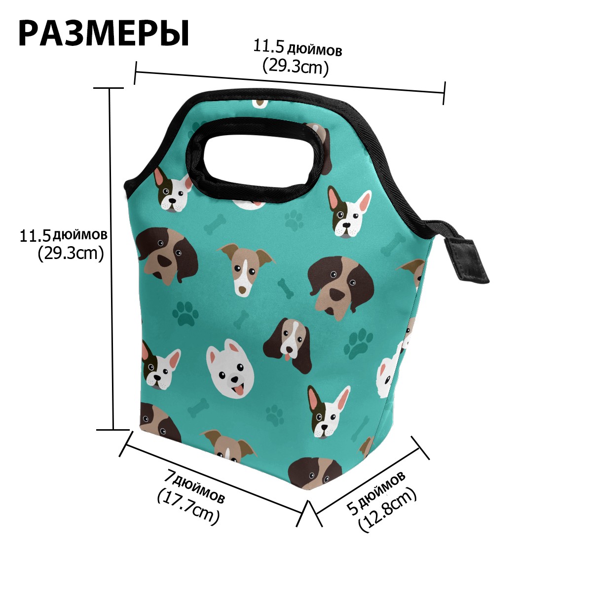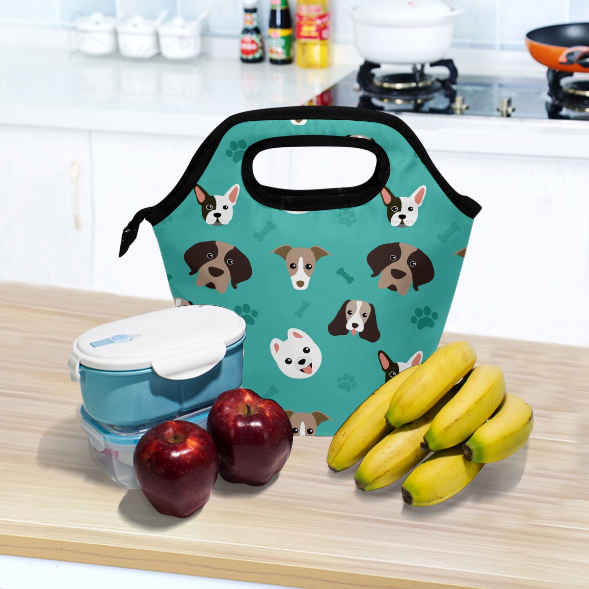 手提餐包Cute Cartoon Hipster Dog Pawn Bones Pattern