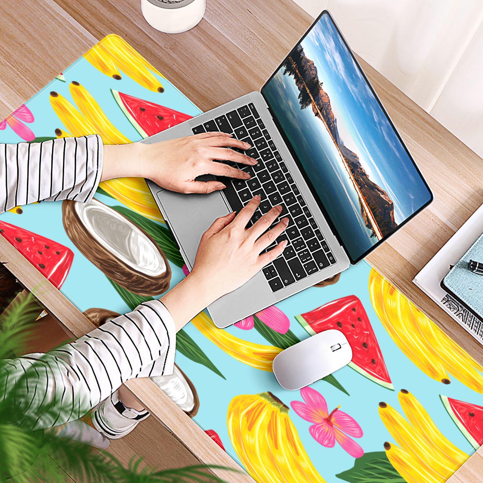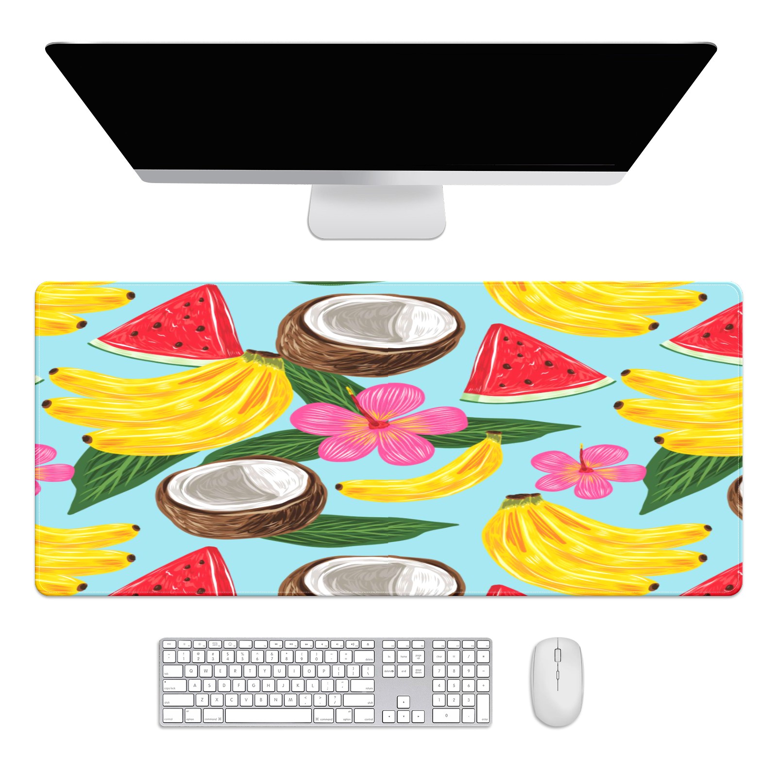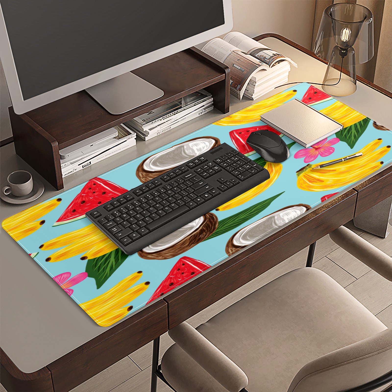 Large Mouse Pad for Desktop, Cute Desk Mat Pad Protector for Work & Gaming, Aesthetic Pretty Anti-Slip Laptop Blotter Cover for Office School Home Supplies, Tropical Fruit Pattern , 35.4inx15.7in