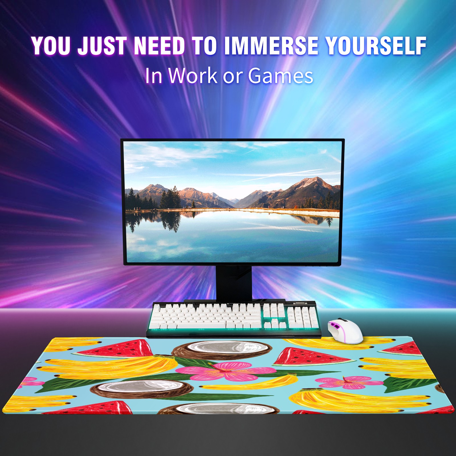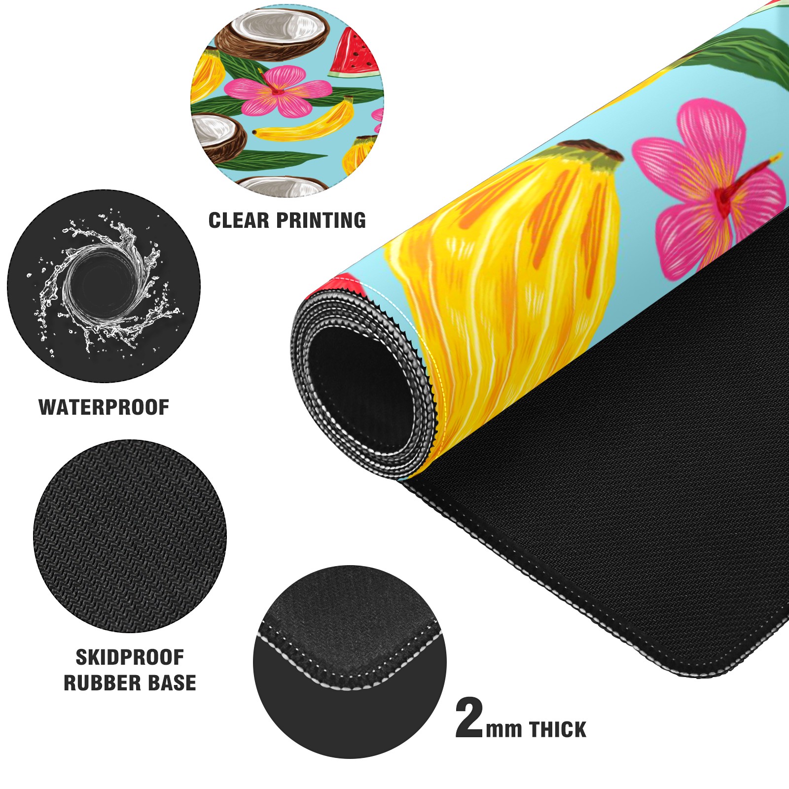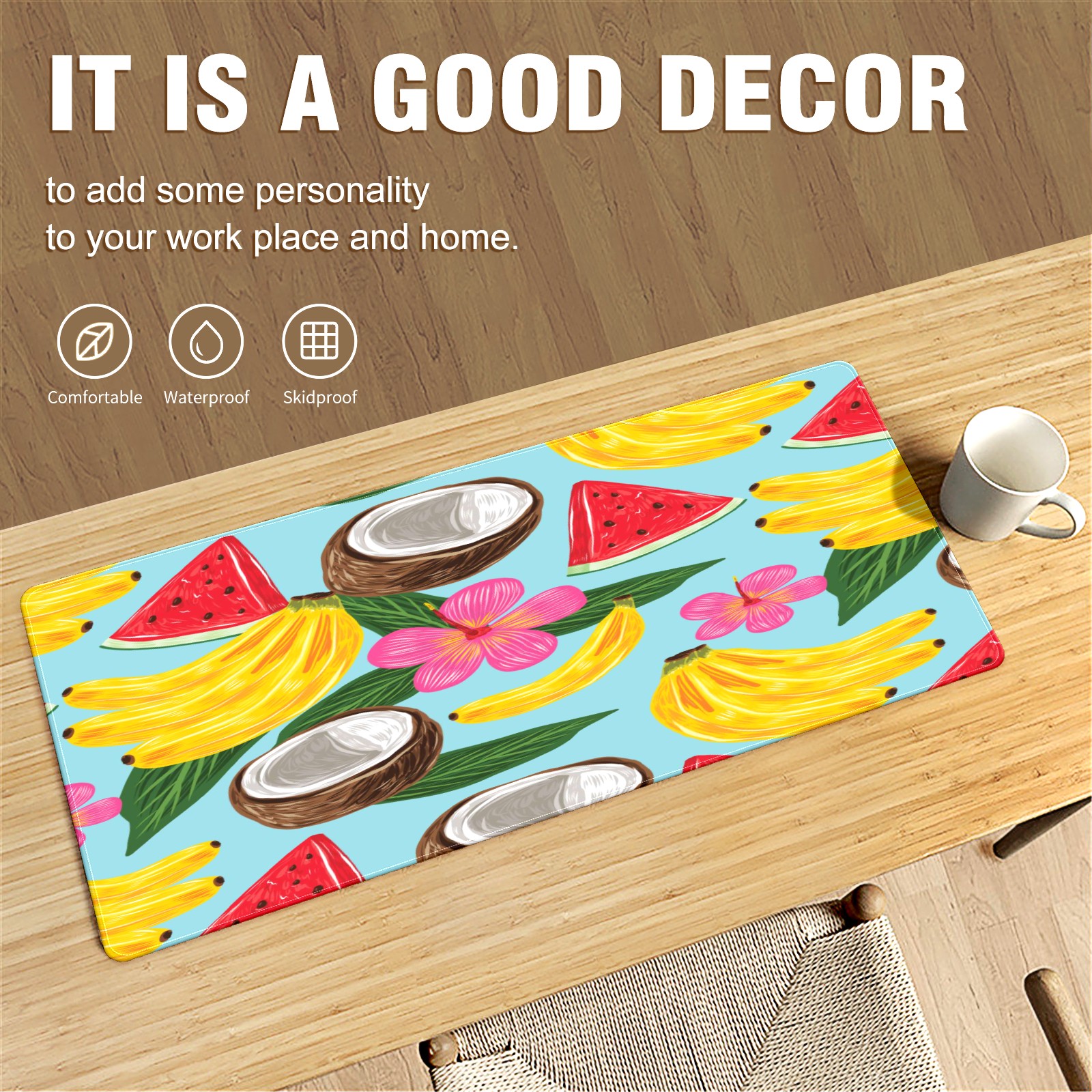 Large Mouse Pad for Desktop, Cute Desk Mat Pad Protector for Work & Gaming, Aesthetic Pretty Anti-Slip Laptop Blotter Cover for Office School Home Supplies, Tropical Fruit Pattern , 35.4inx15.7in