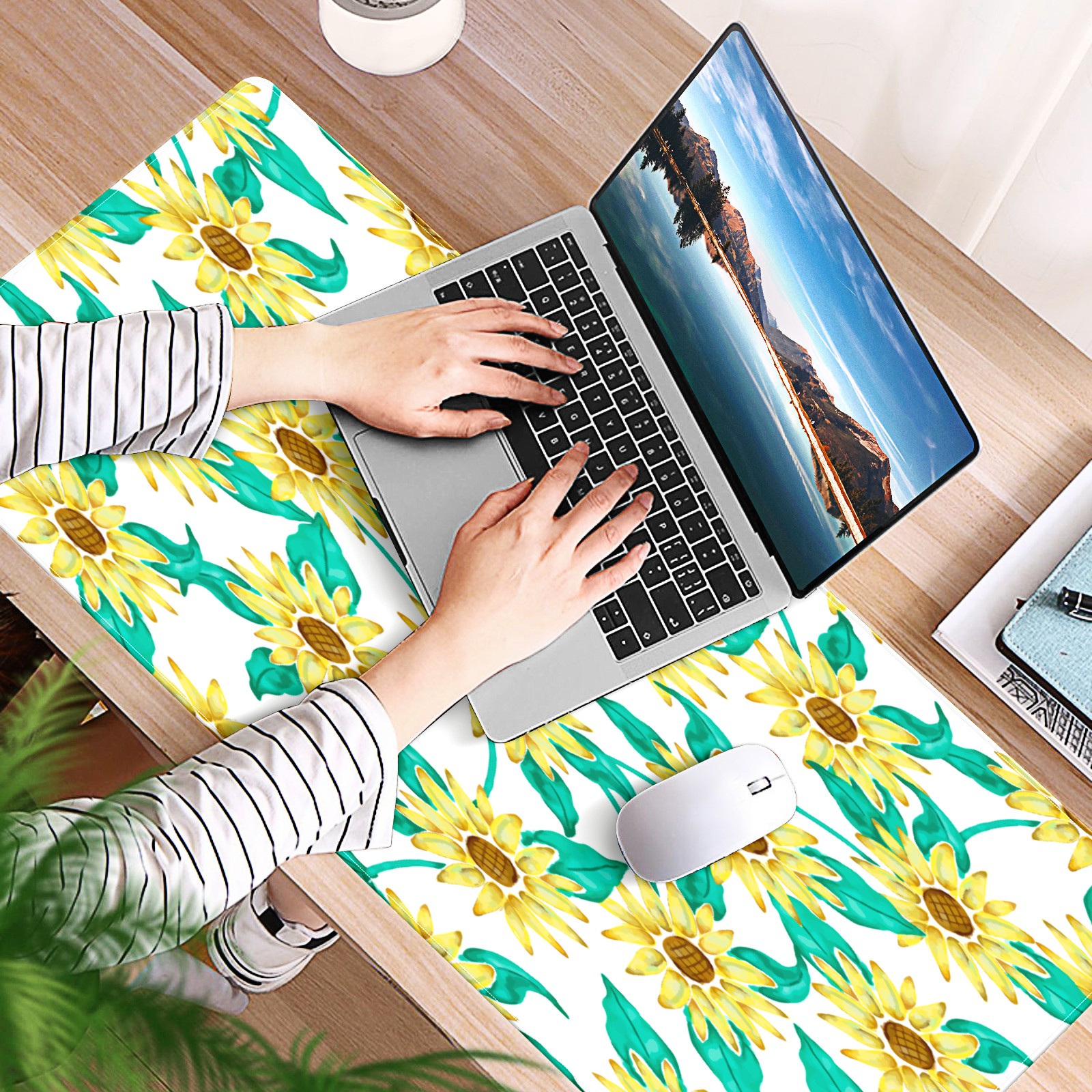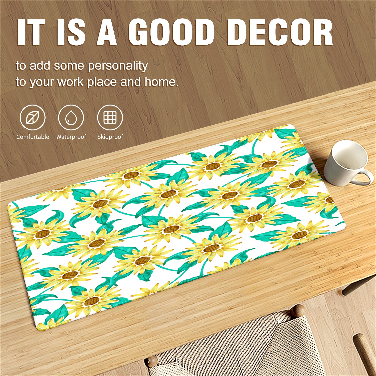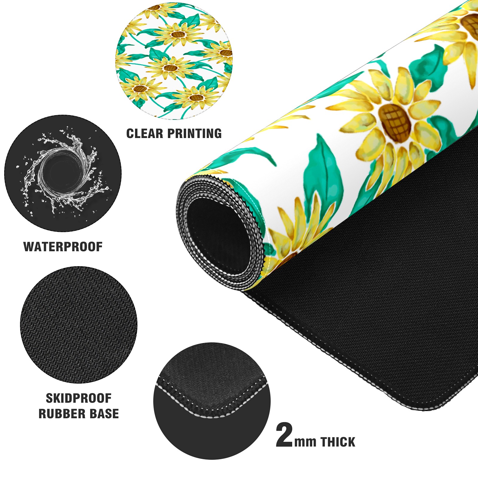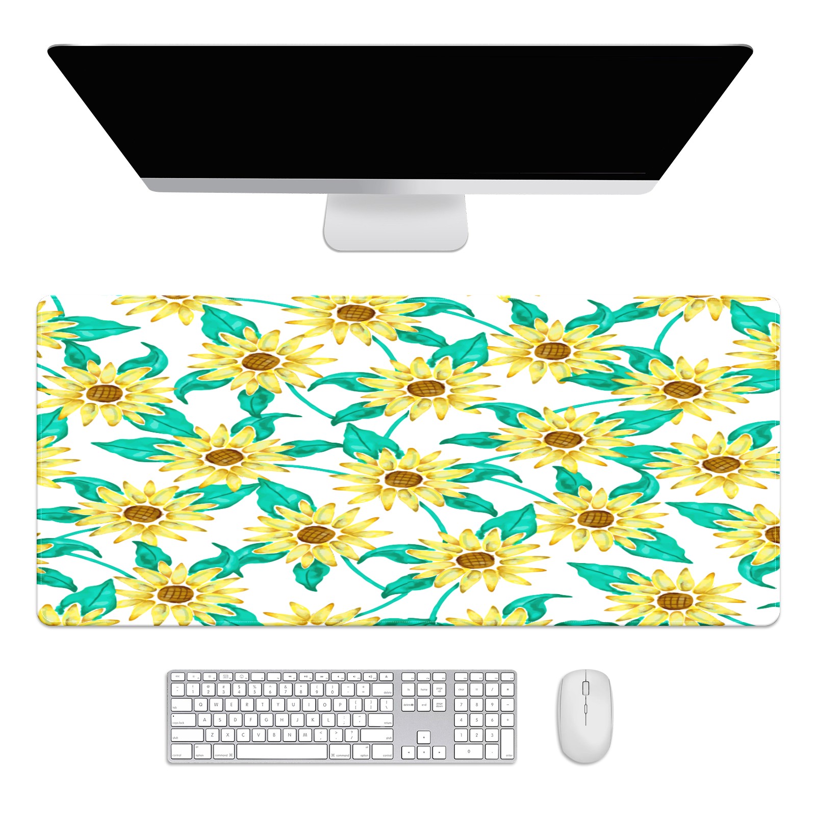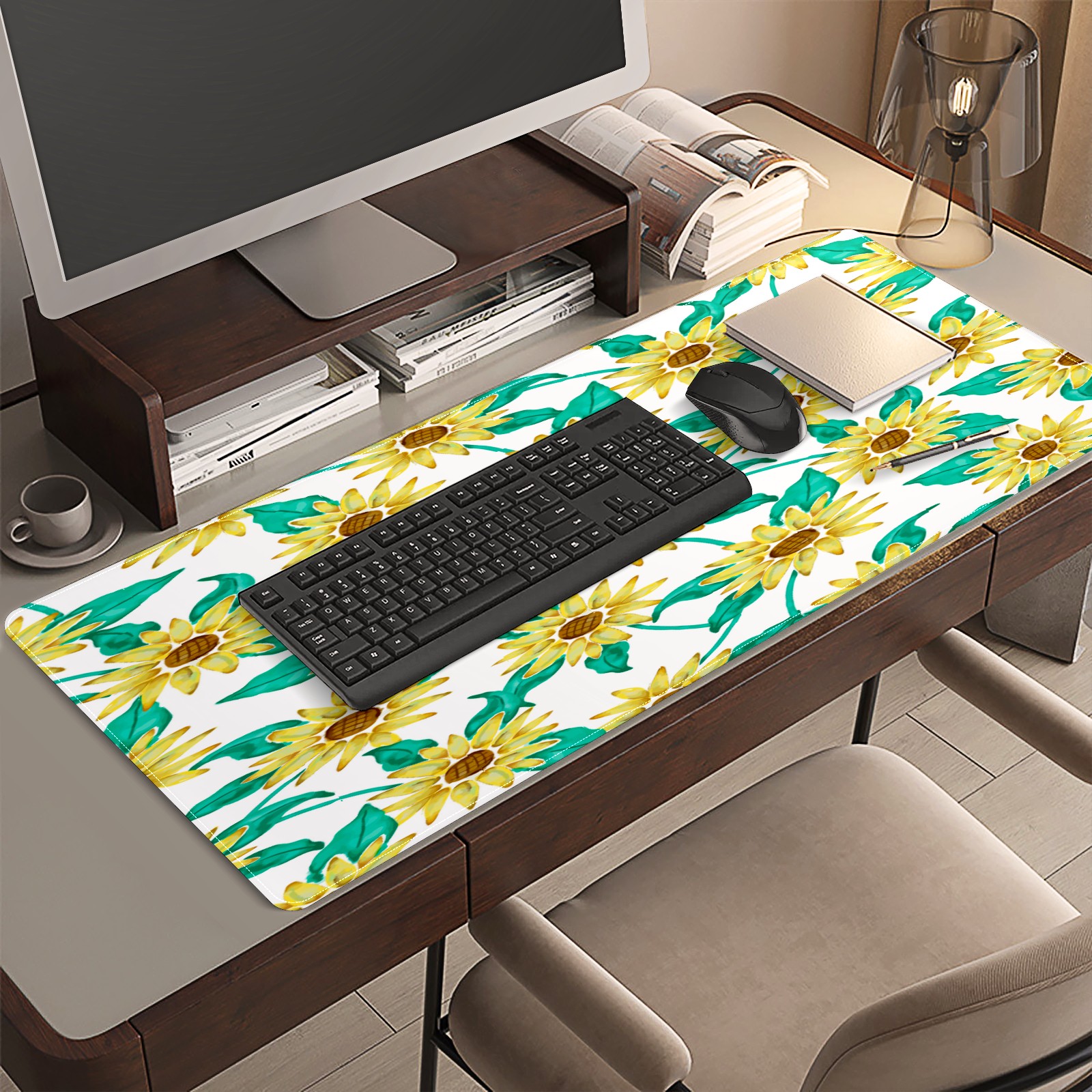 Large Mouse Pad for Desktop, Cute Desk Mat Pad Protector for Work & Gaming, Aesthetic Pretty Anti-Slip Laptop Blotter Cover for Office School Home Supplies, Sunflowers , 35.4inx15.7in