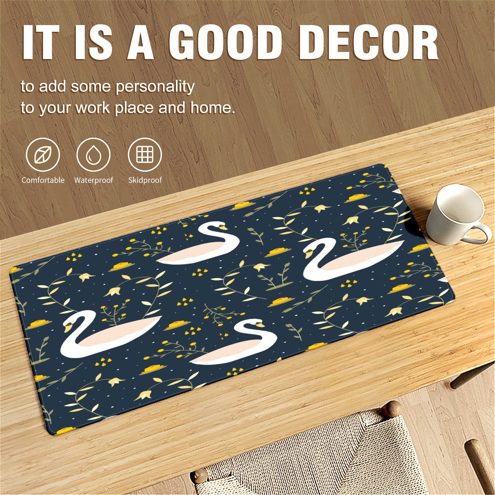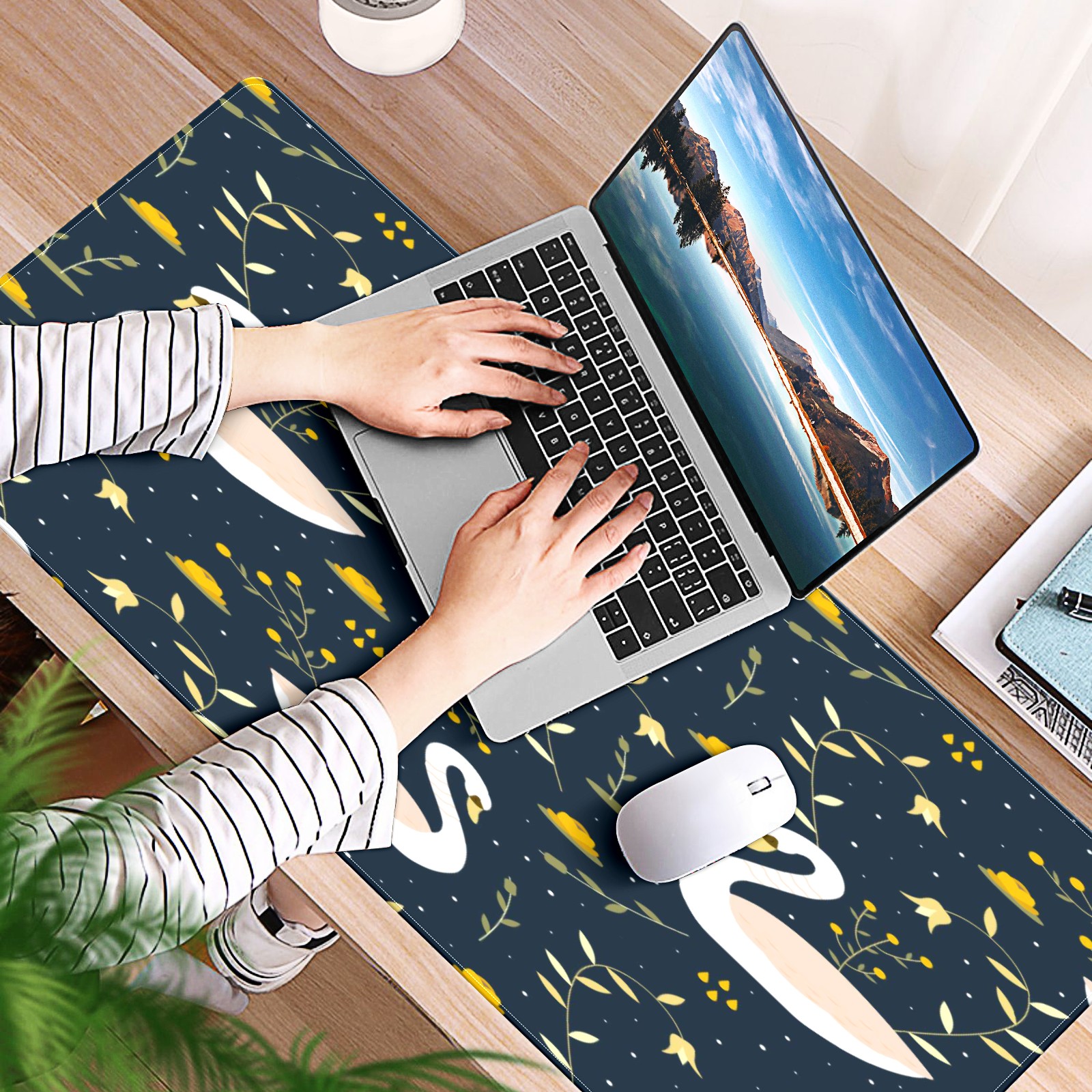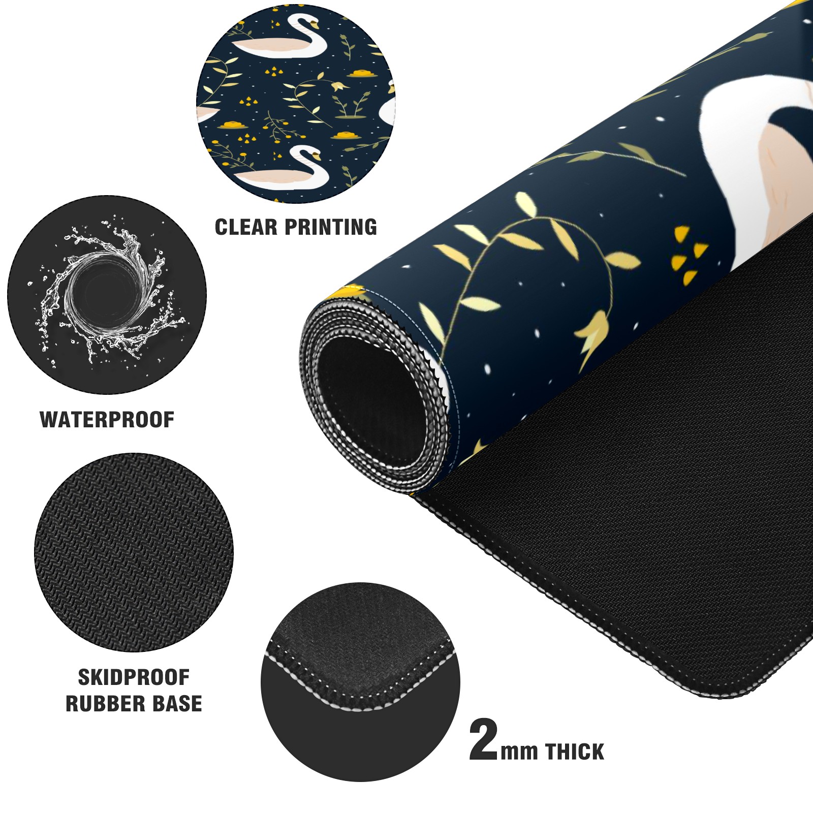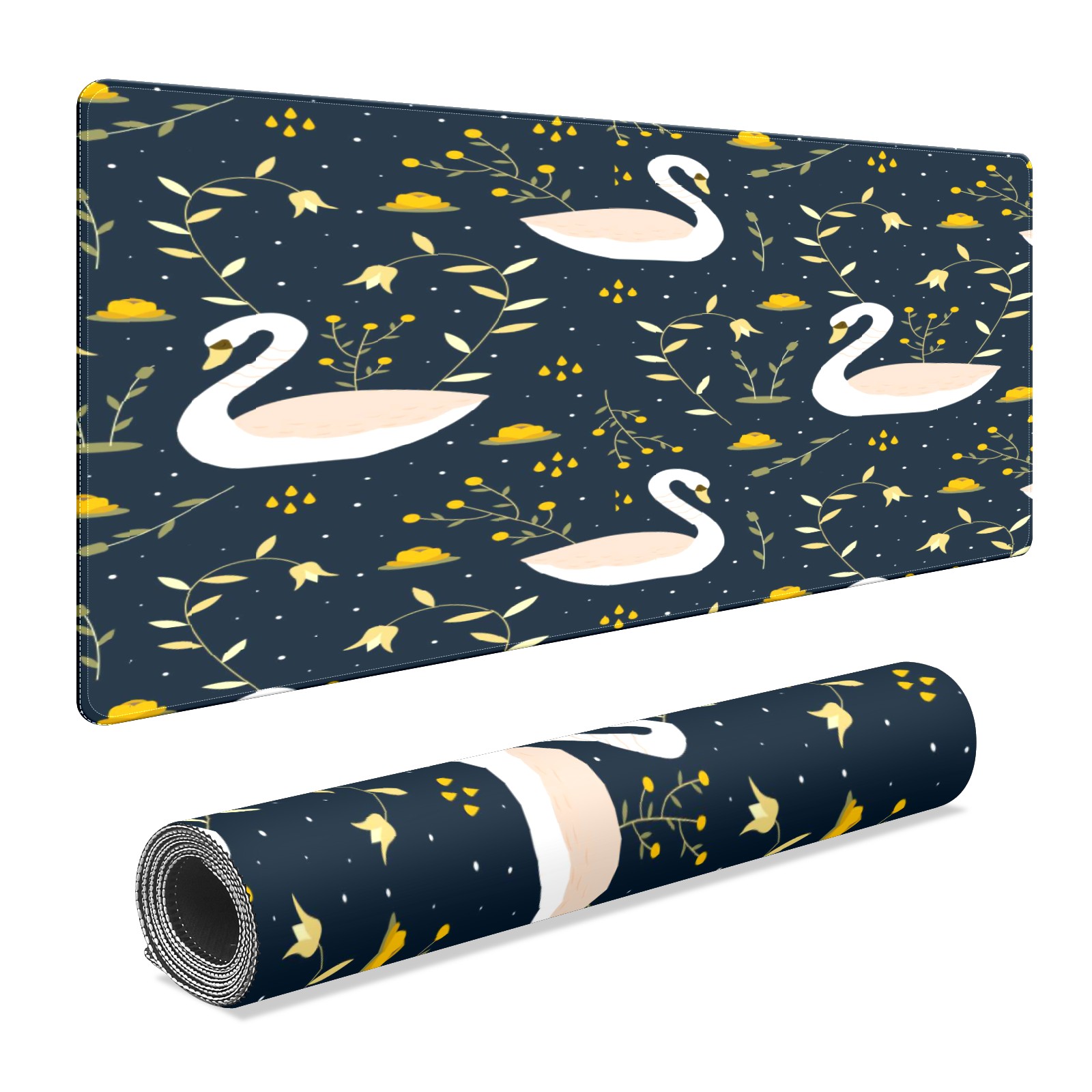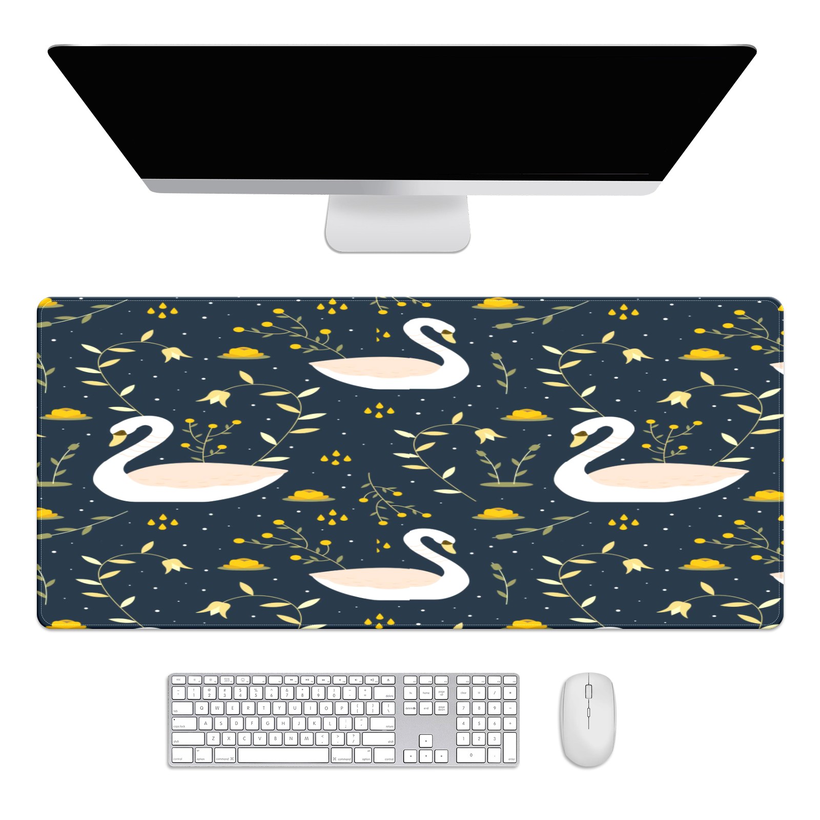 Large Mouse Pad for Desktop, Cute Desk Mat Pad Protector for Work & Gaming, Aesthetic Pretty Anti-Slip Laptop Blotter Cover for Office School Home Supplies, Swan , 35.4inx15.7in