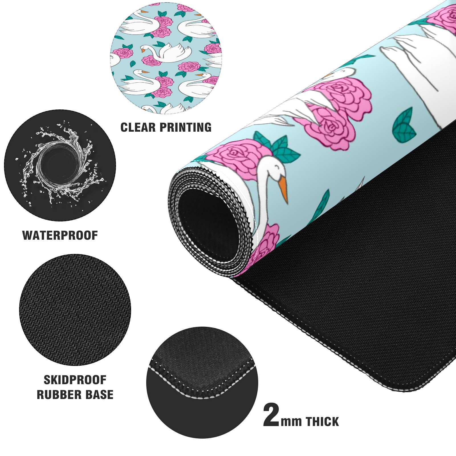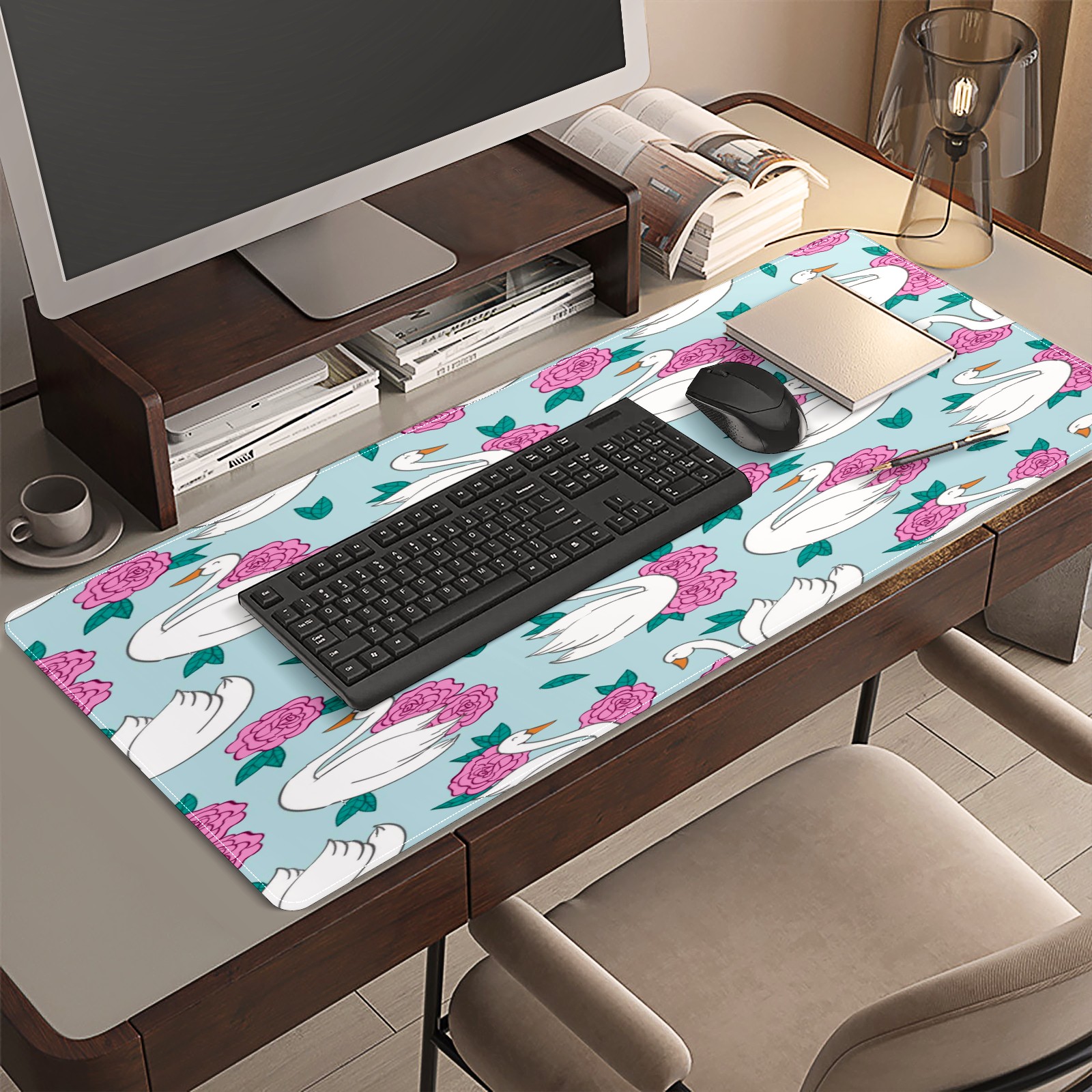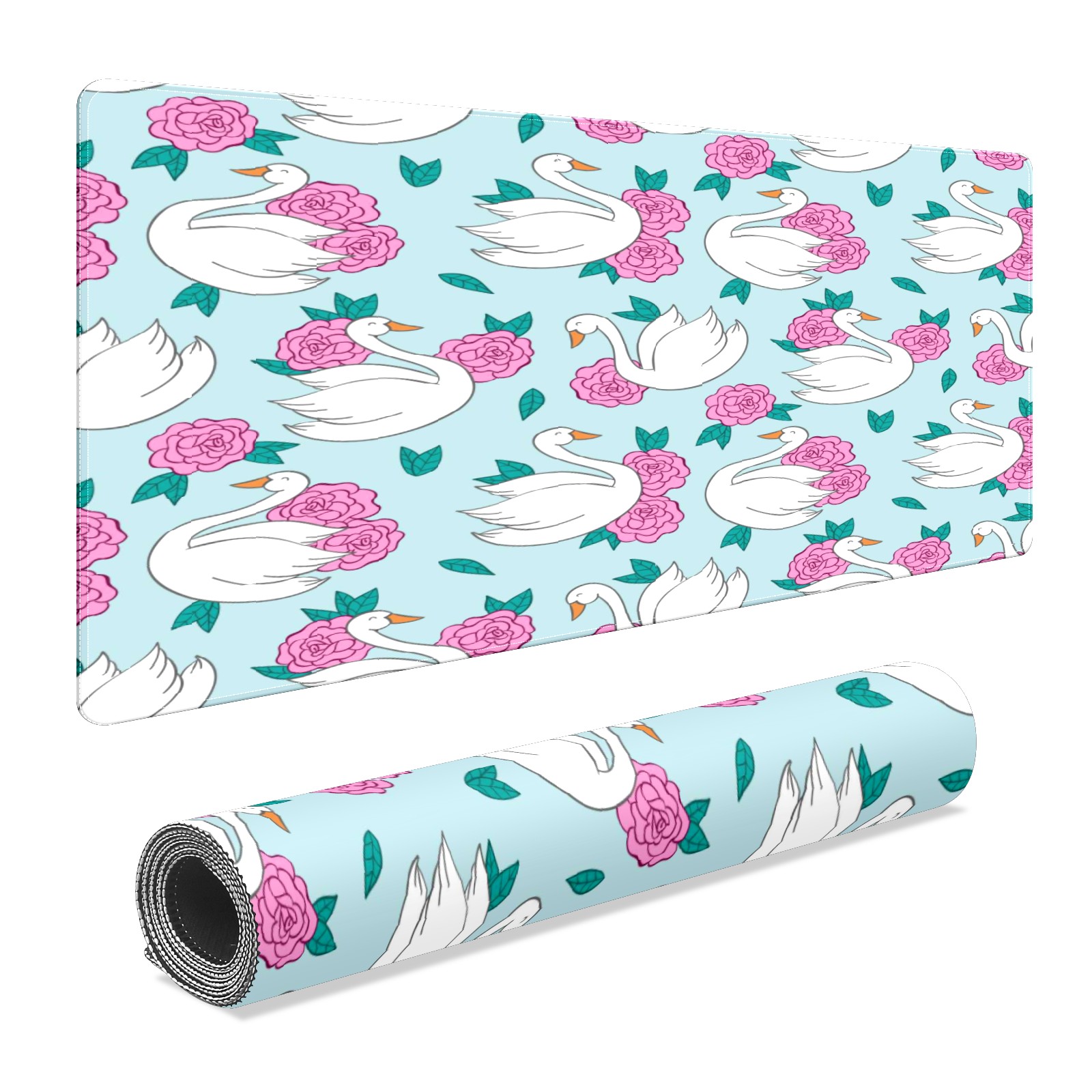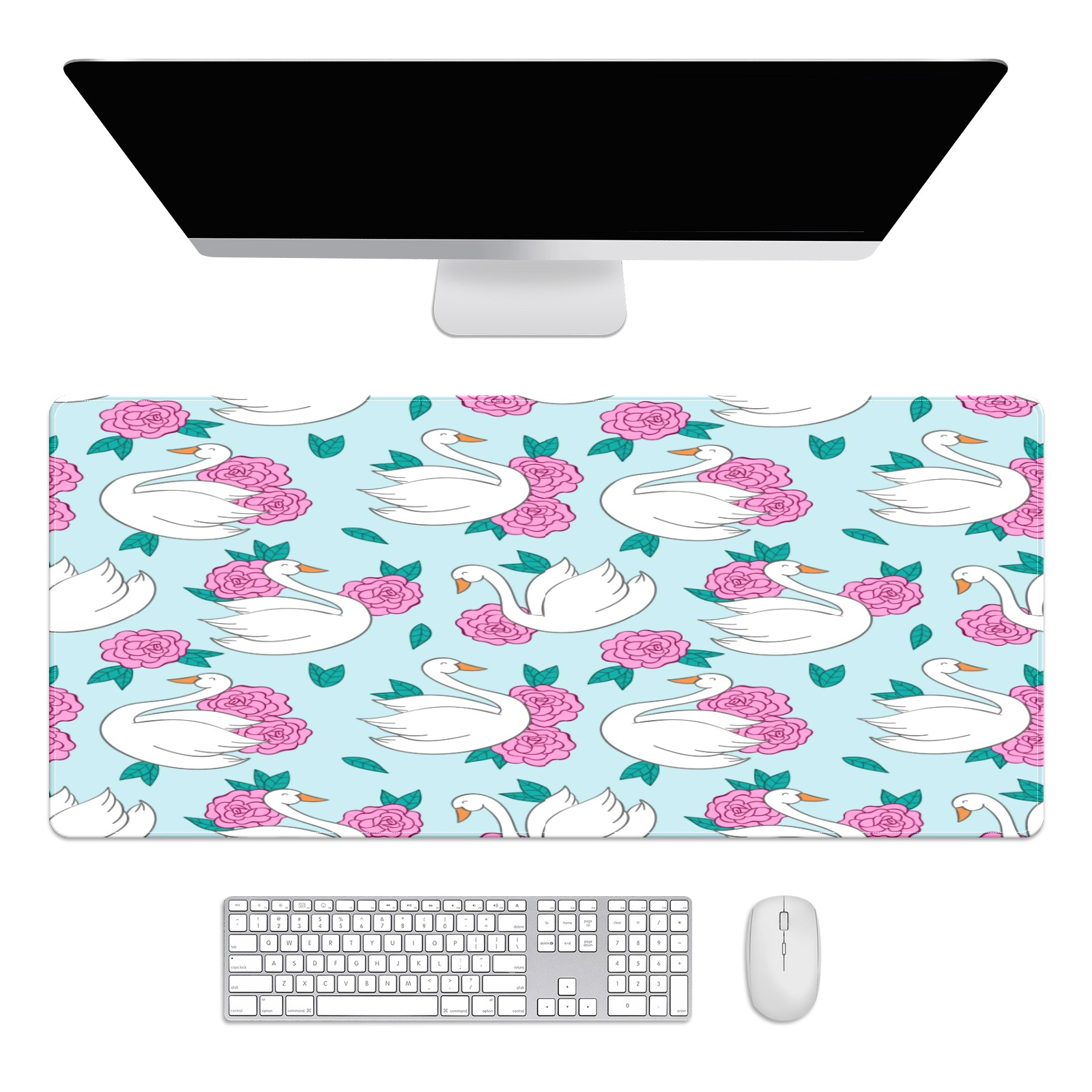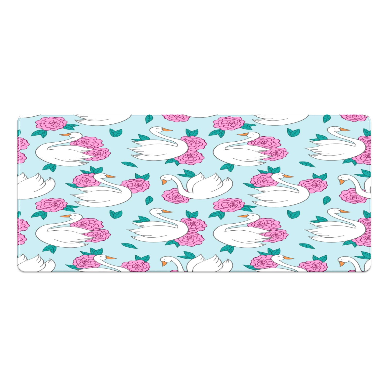 Large Mouse Pad for Desktop, Cute Desk Mat Pad Protector for Work & Gaming, Aesthetic Pretty Anti-Slip Laptop Blotter Cover for Office School Home Supplies, Swan Blue Pattern , 35.4inx15.7in