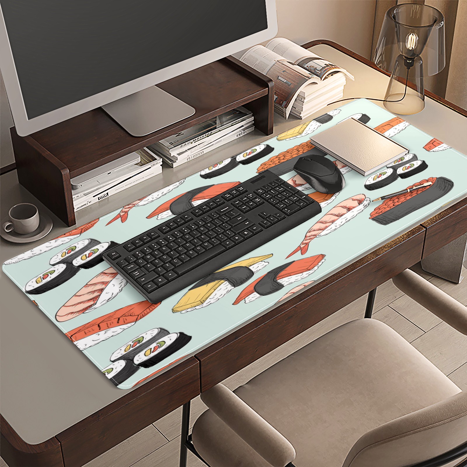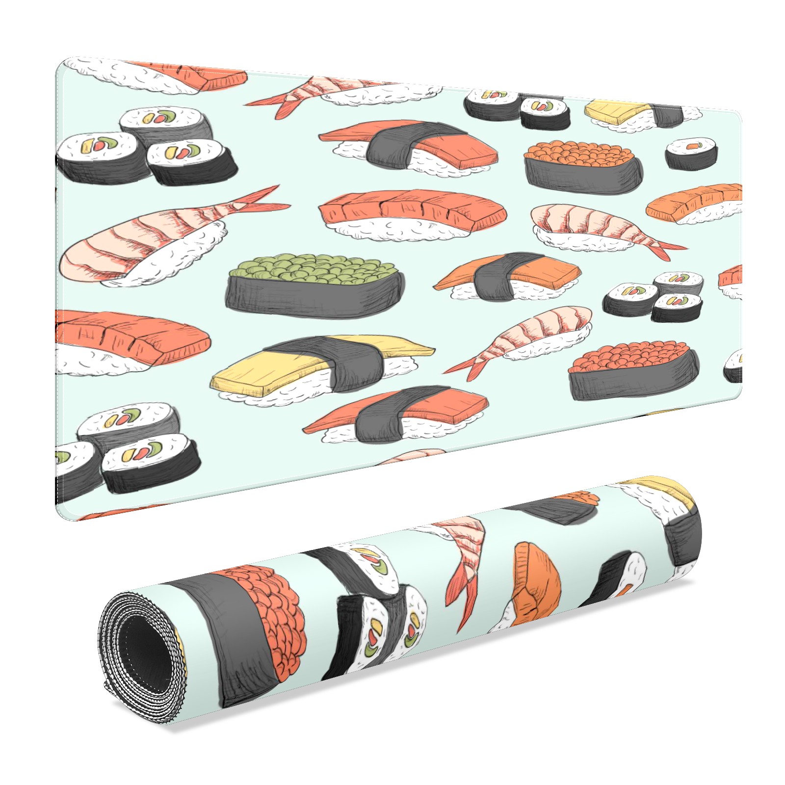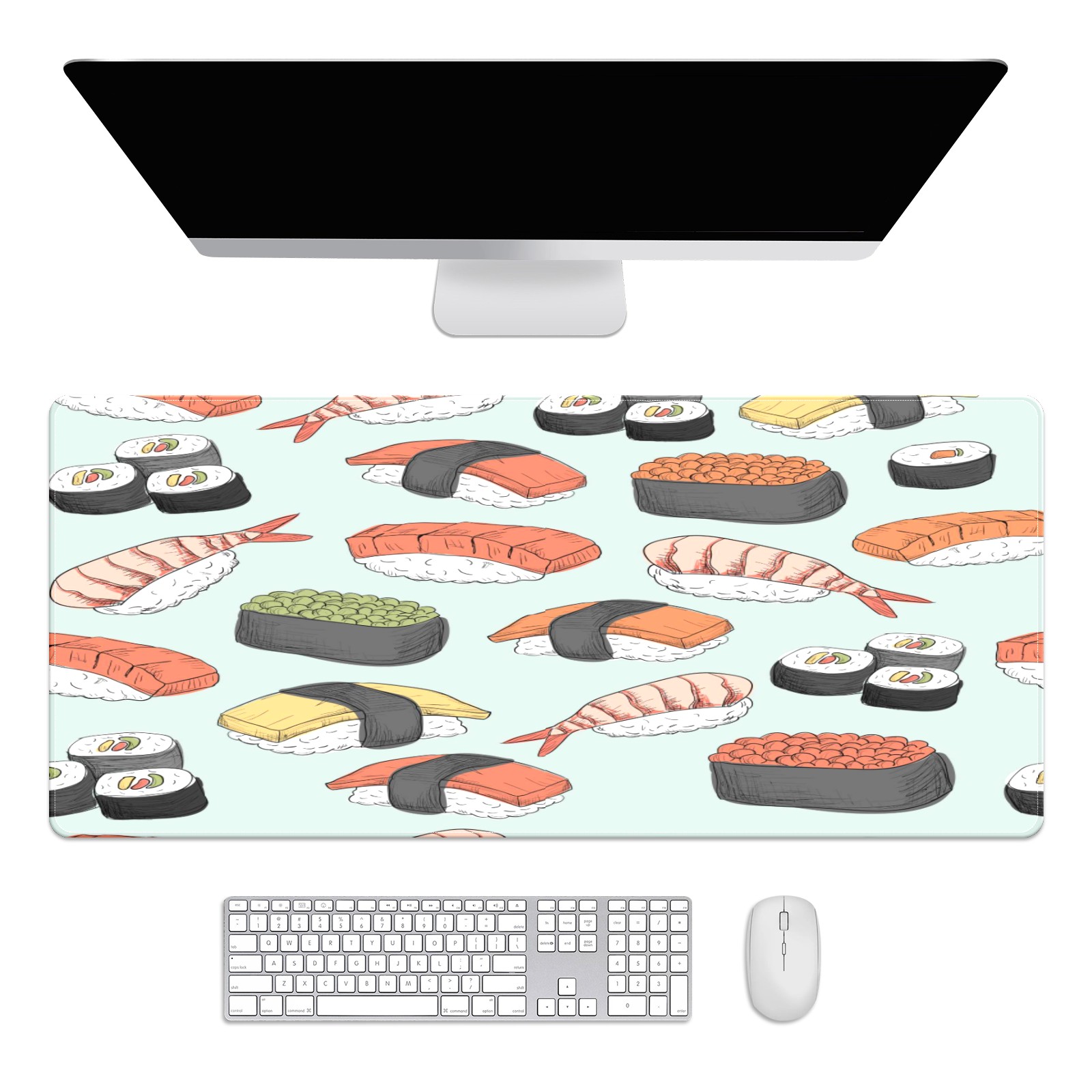 Large Mouse Pad for Desktop, Cute Desk Mat Pad Protector for Work & Gaming, Aesthetic Pretty Anti-Slip Laptop Blotter Cover for Office School Home Supplies, Sushi Pattern , 35.4inx15.7in