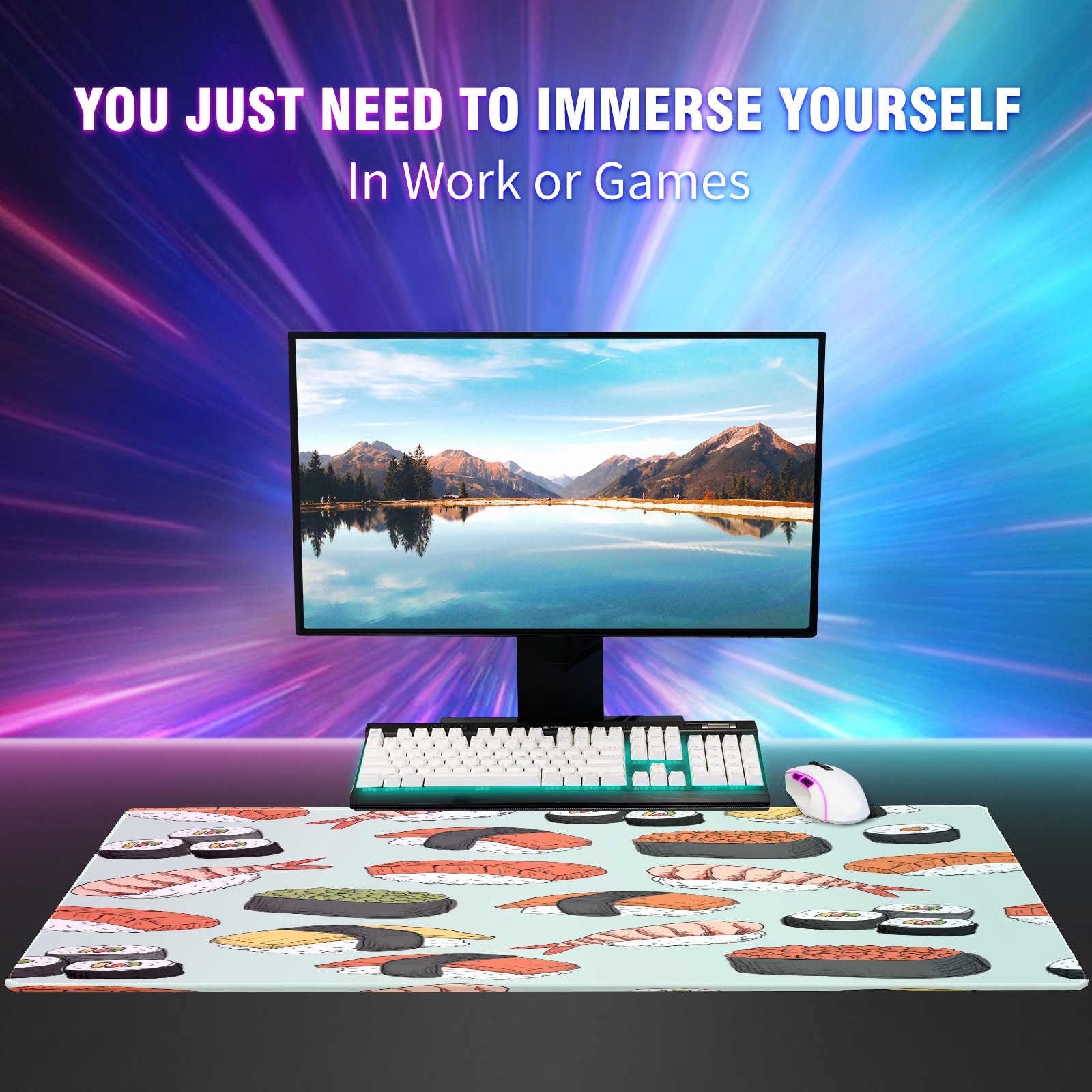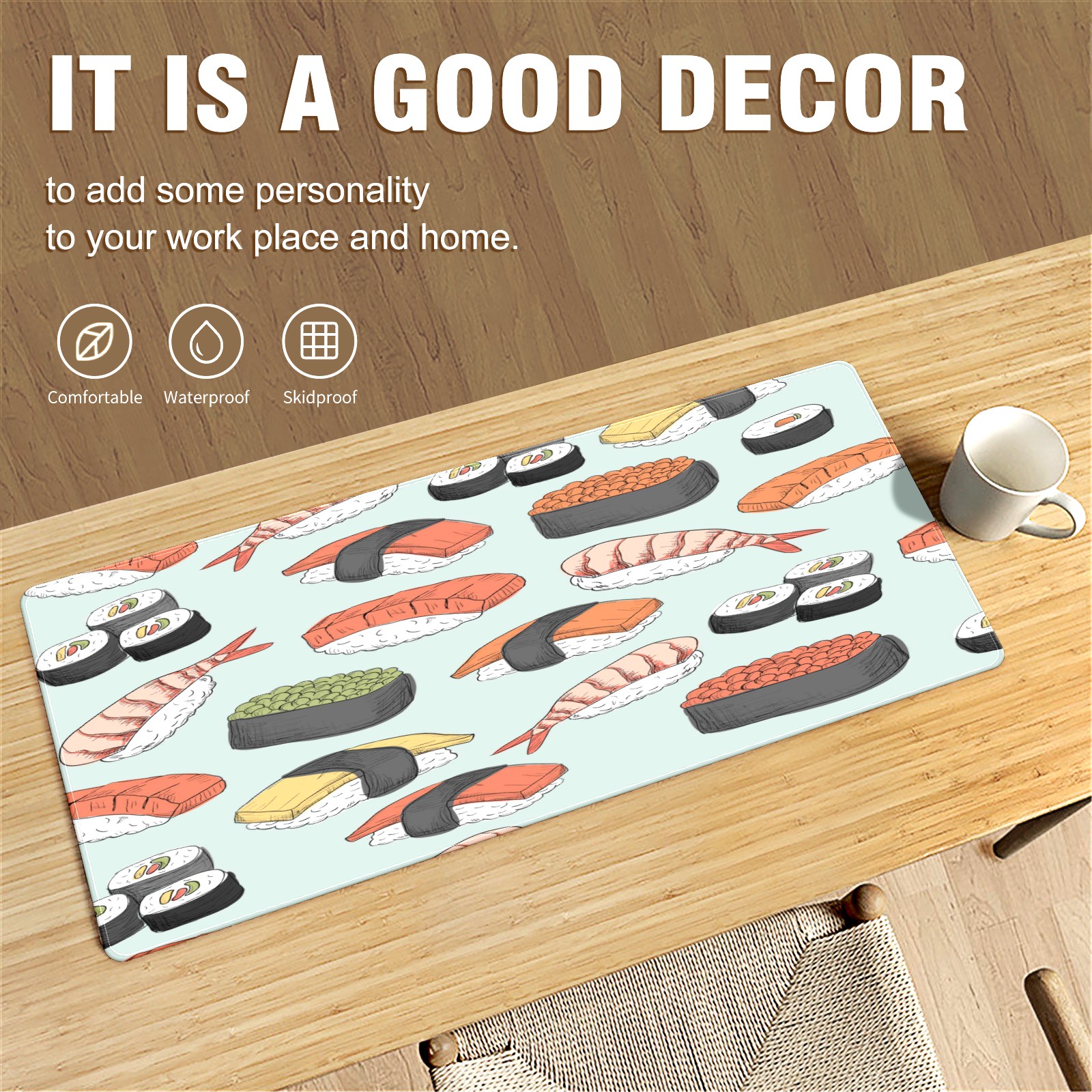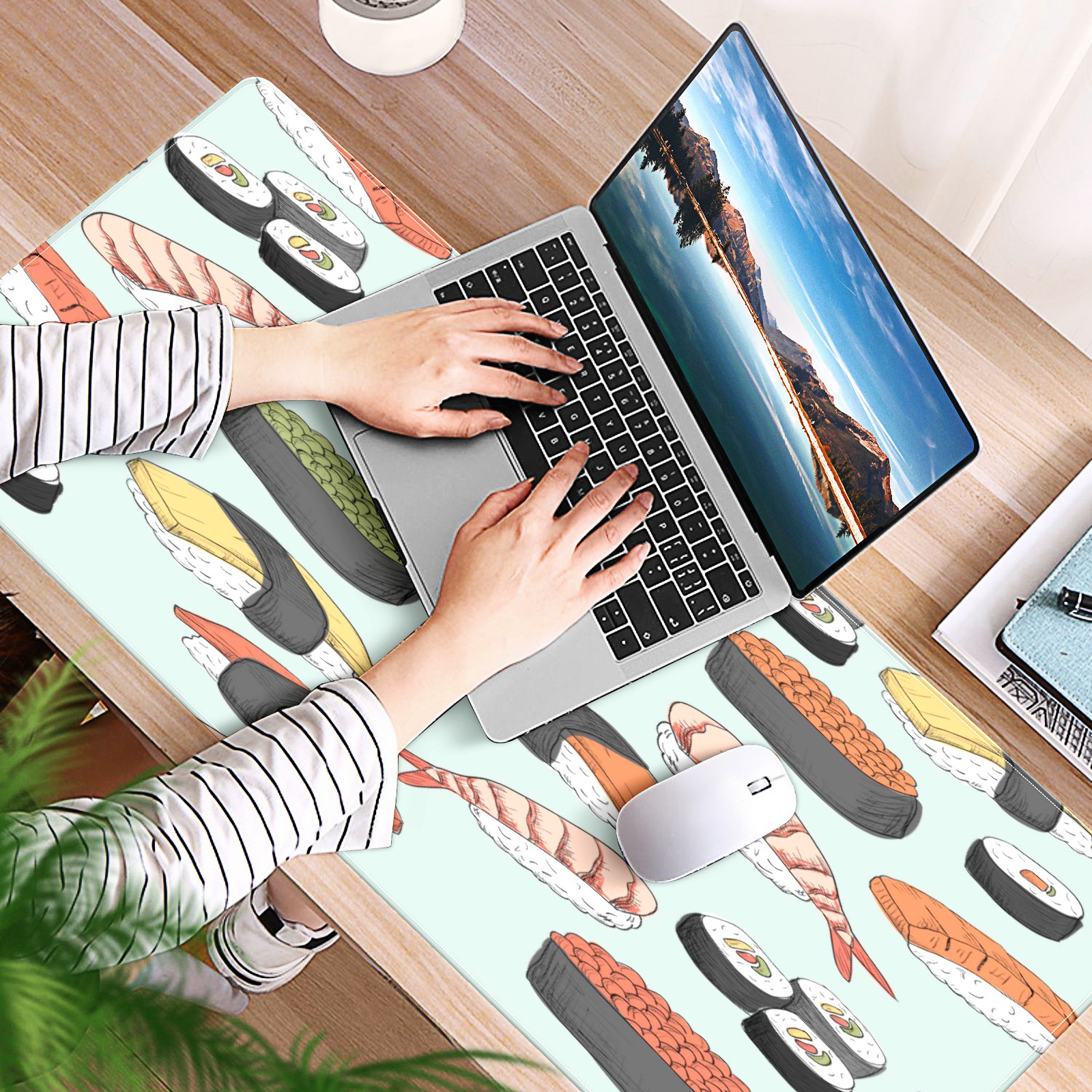 Large Mouse Pad for Desktop, Cute Desk Mat Pad Protector for Work & Gaming, Aesthetic Pretty Anti-Slip Laptop Blotter Cover for Office School Home Supplies, Sushi Pattern , 35.4inx15.7in