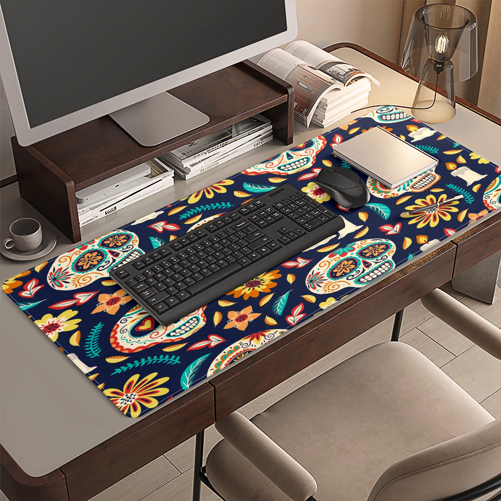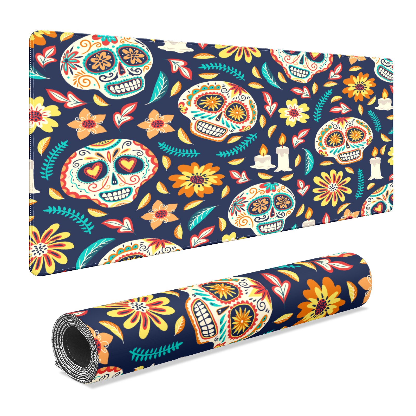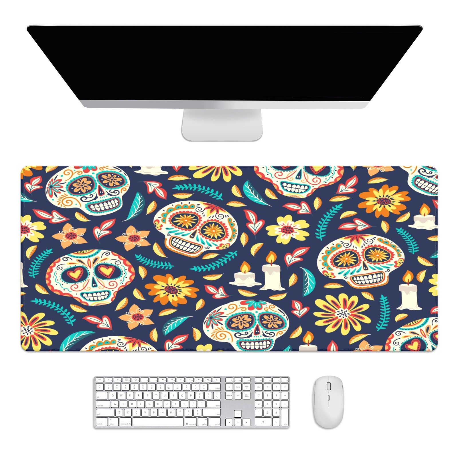 Large Mouse Pad for Desktop, Cute Desk Mat Pad Protector for Work & Gaming, Aesthetic Pretty Anti-Slip Laptop Blotter Cover for Office School Home Supplies, Skull Seamless Background , 35.4inx15.7in