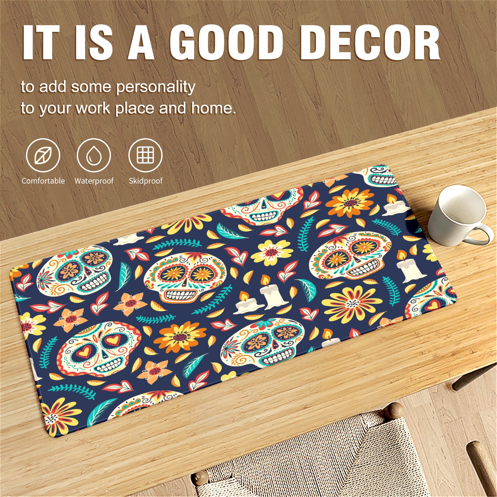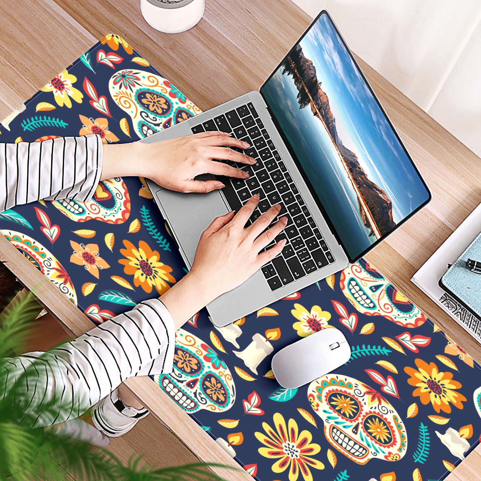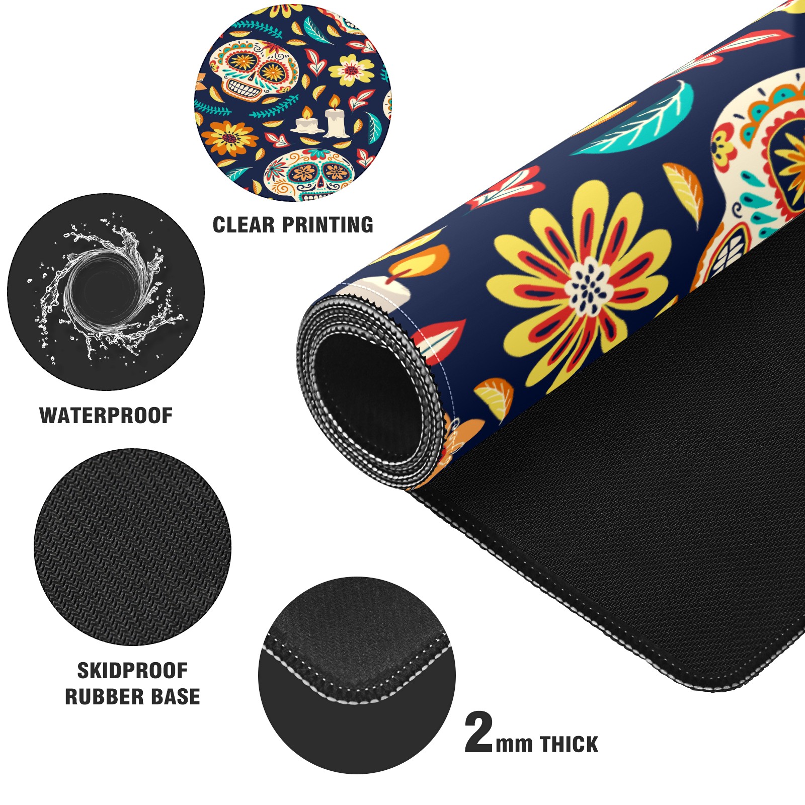 Large Mouse Pad for Desktop, Cute Desk Mat Pad Protector for Work & Gaming, Aesthetic Pretty Anti-Slip Laptop Blotter Cover for Office School Home Supplies, Skull Seamless Background , 35.4inx15.7in
