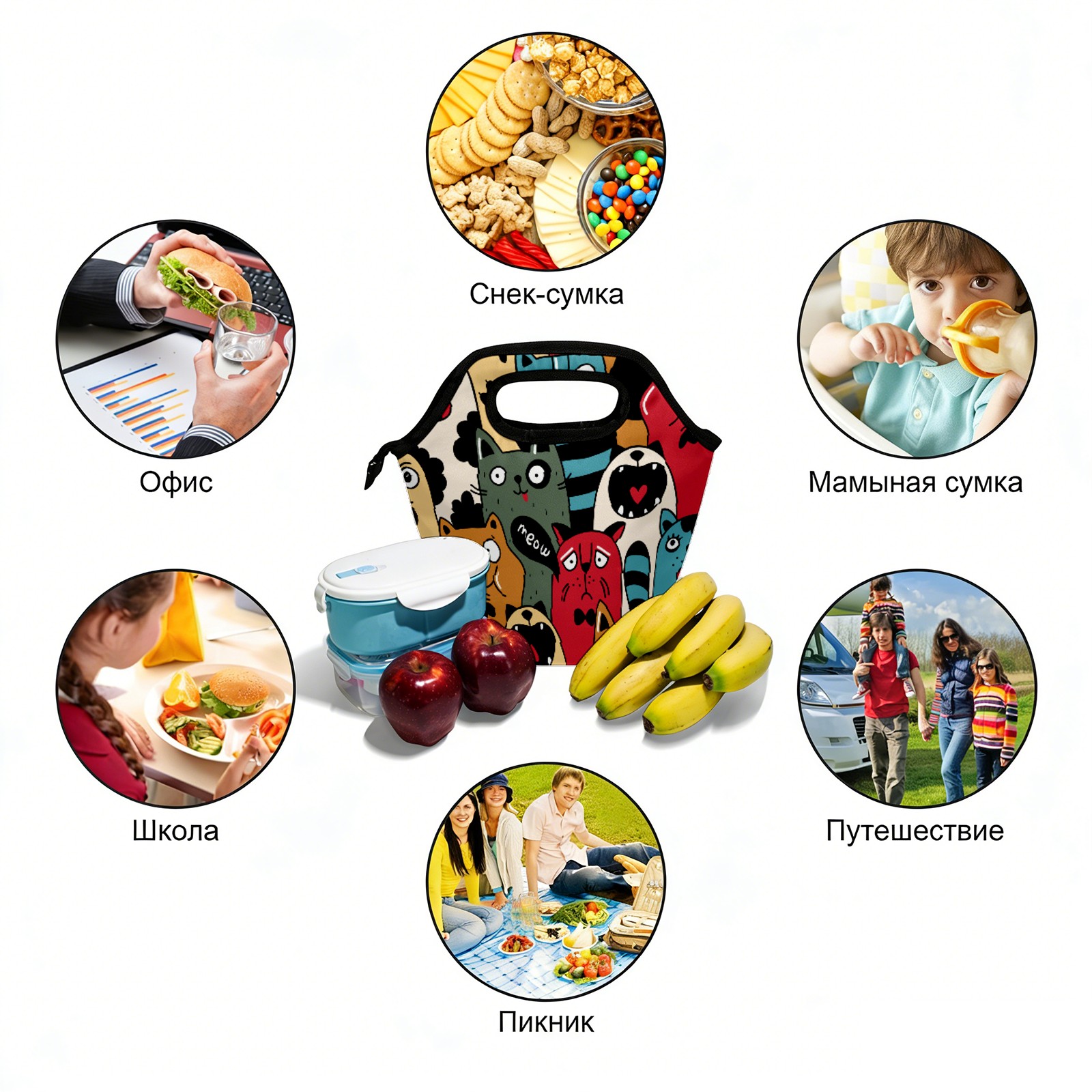 手提餐包Cat Cartoon