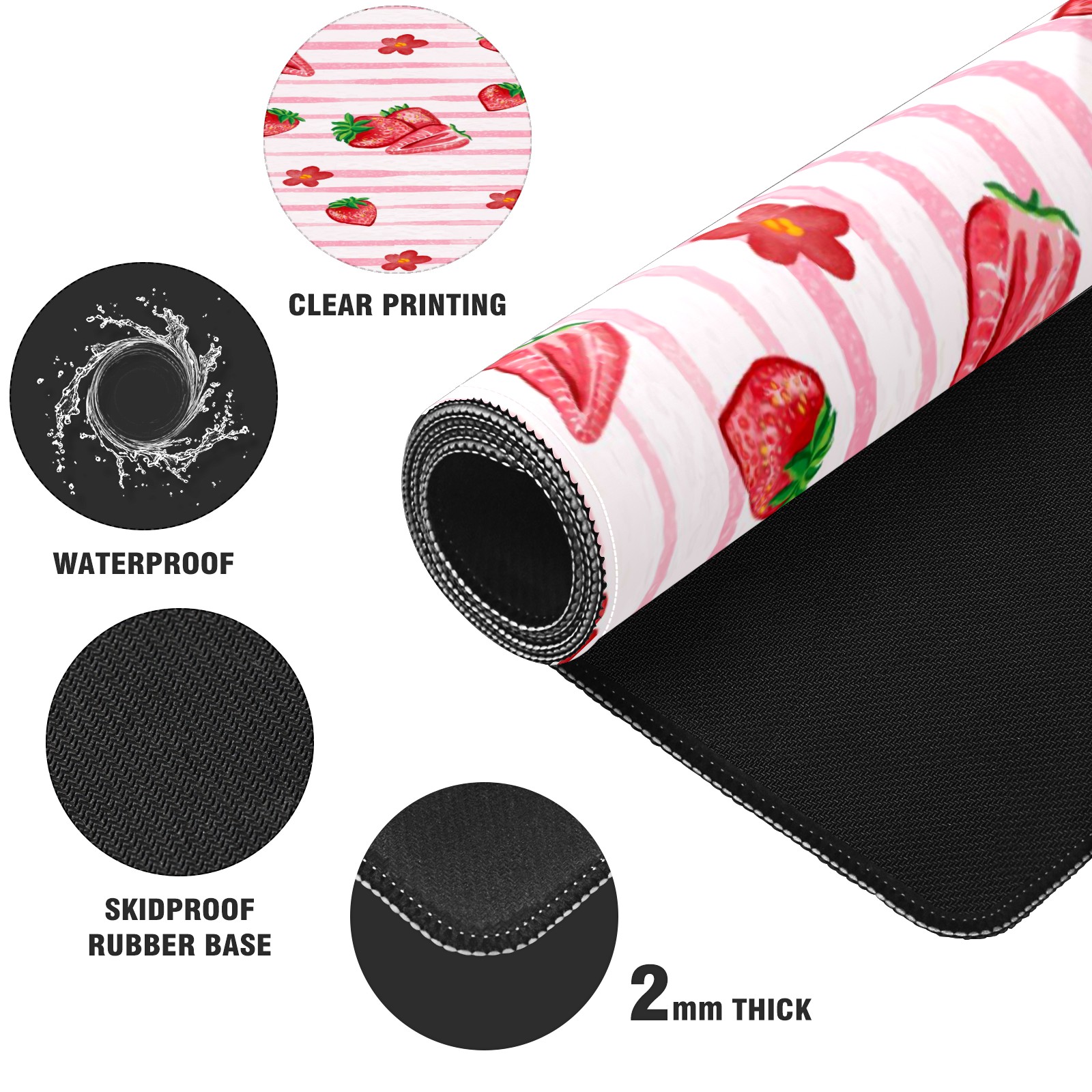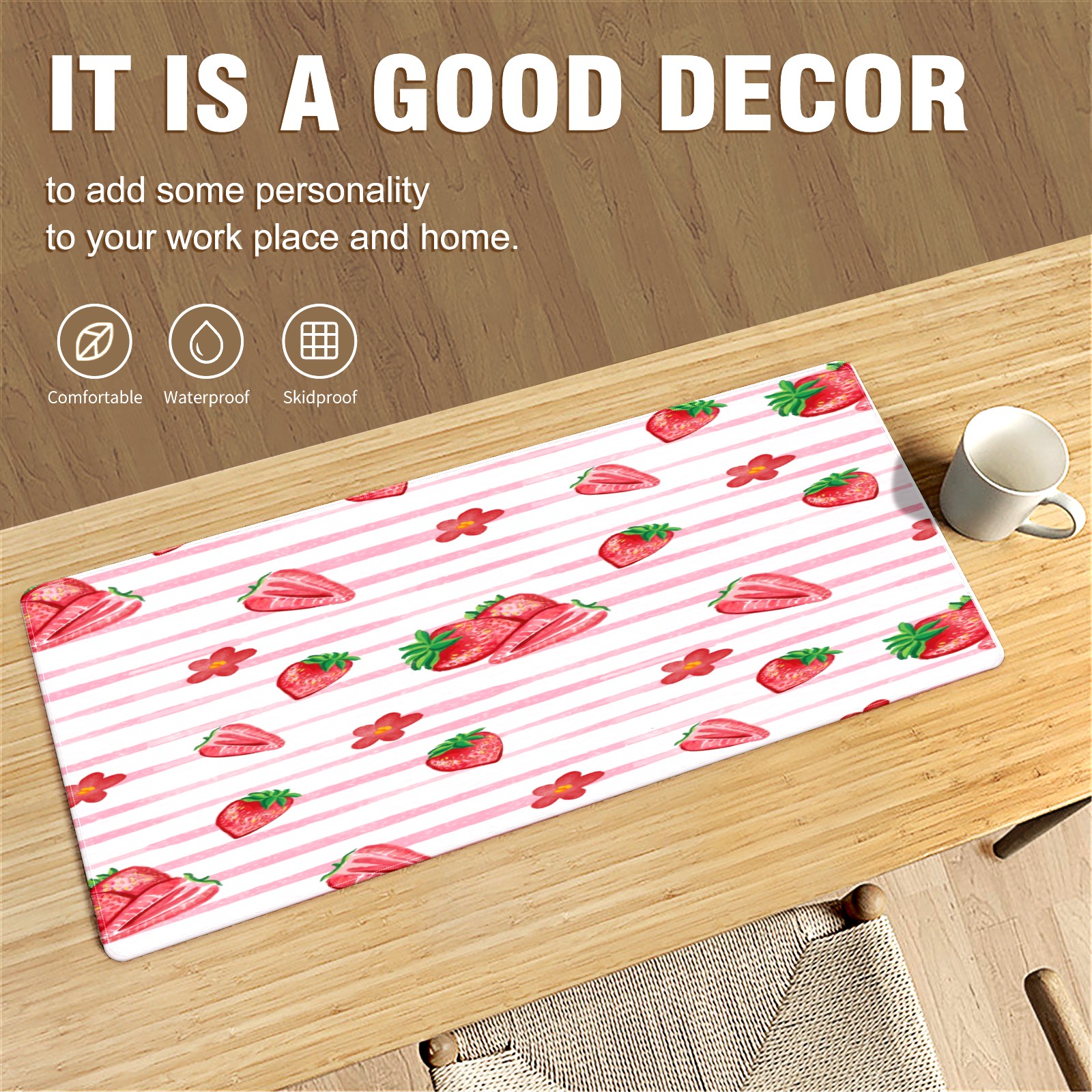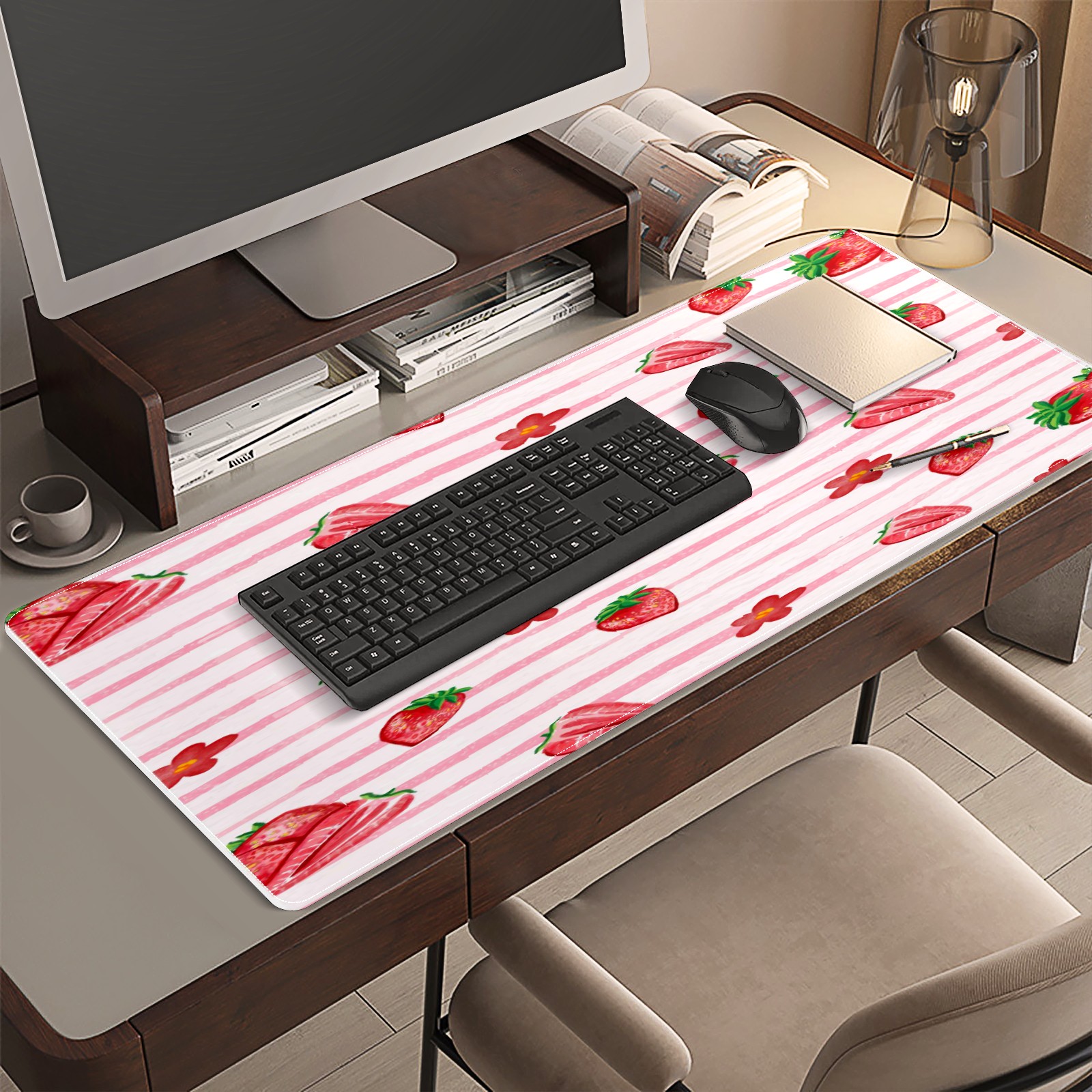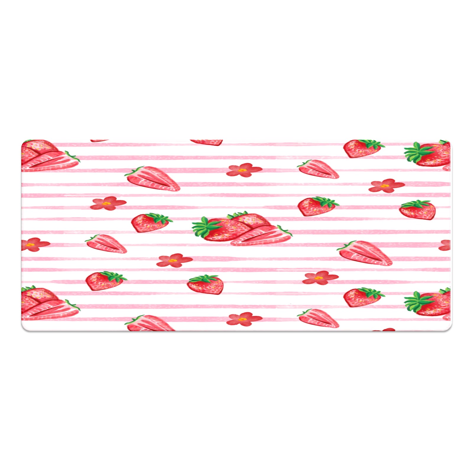 Large Mouse Pad for Desktop, Cute Desk Mat Pad Protector for Work & Gaming, Aesthetic Pretty Anti-Slip Laptop Blotter Cover for Office School Home Supplies, Striped Watercolor Strawberries , 35.4inx15.7in