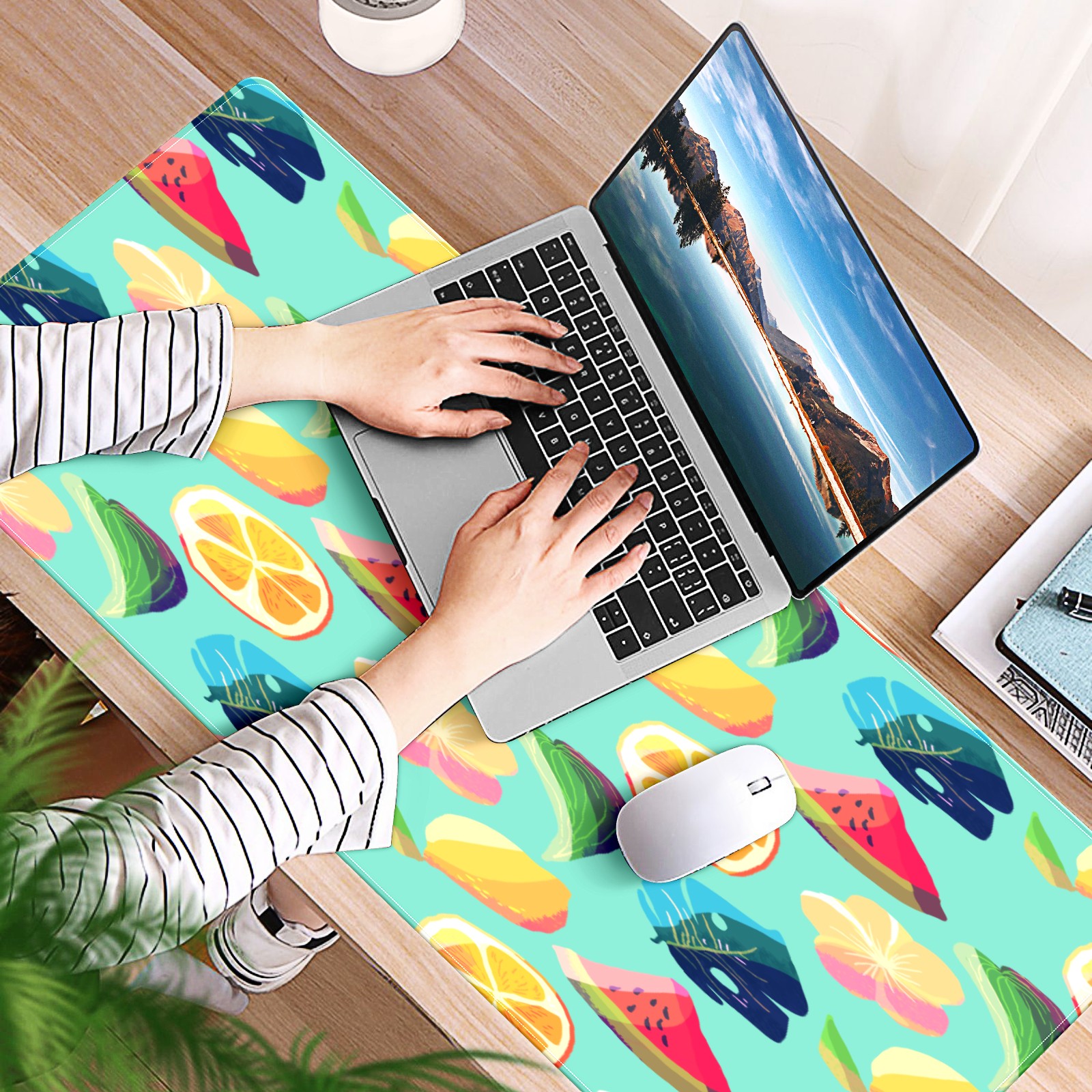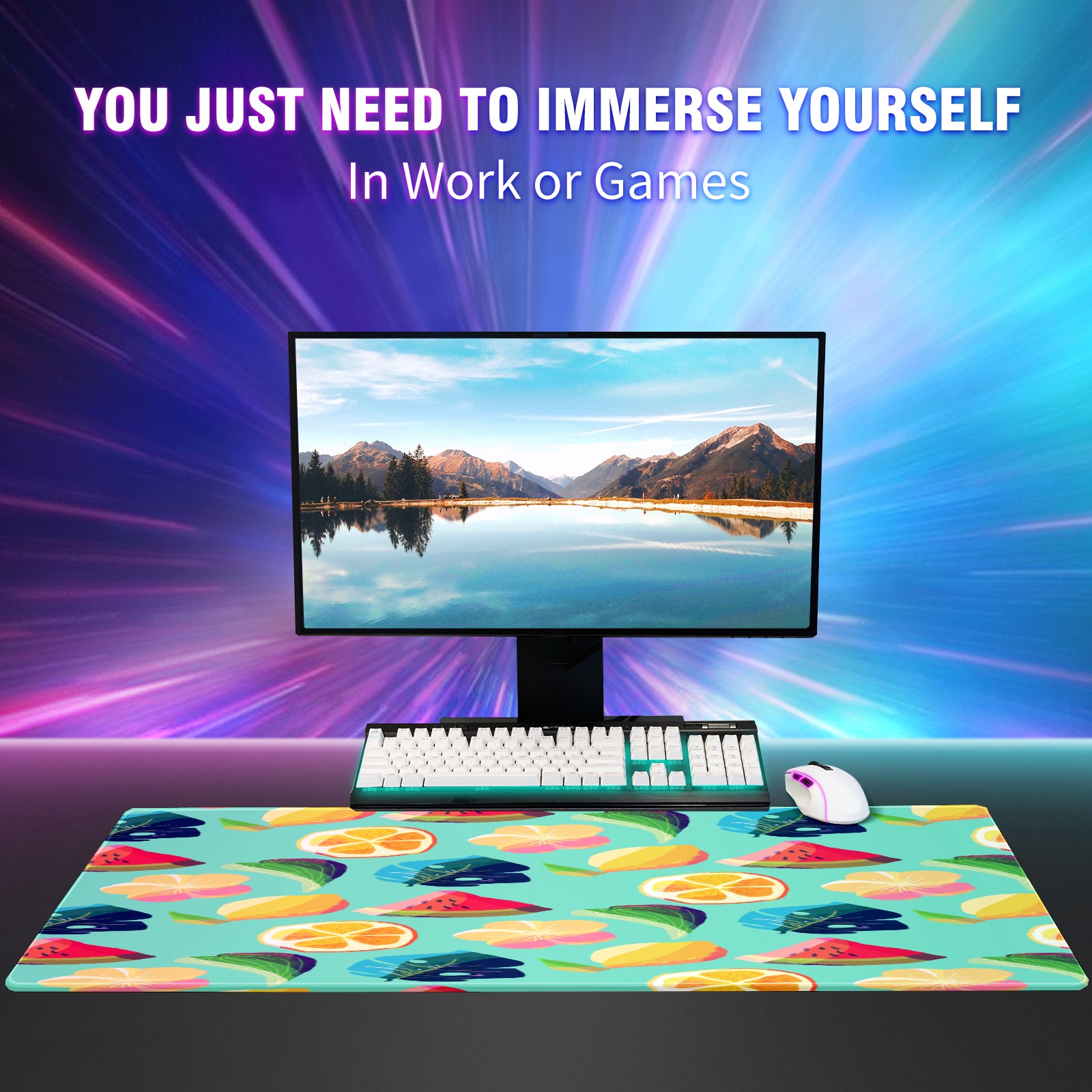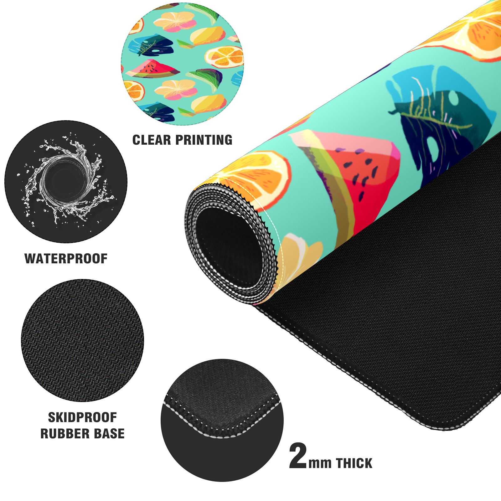 Large Mouse Pad for Desktop, Cute Desk Mat Pad Protector for Work & Gaming, Aesthetic Pretty Anti-Slip Laptop Blotter Cover for Office School Home Supplies, Simple Tropical Fruits Pattern , 35.4inx15.7in