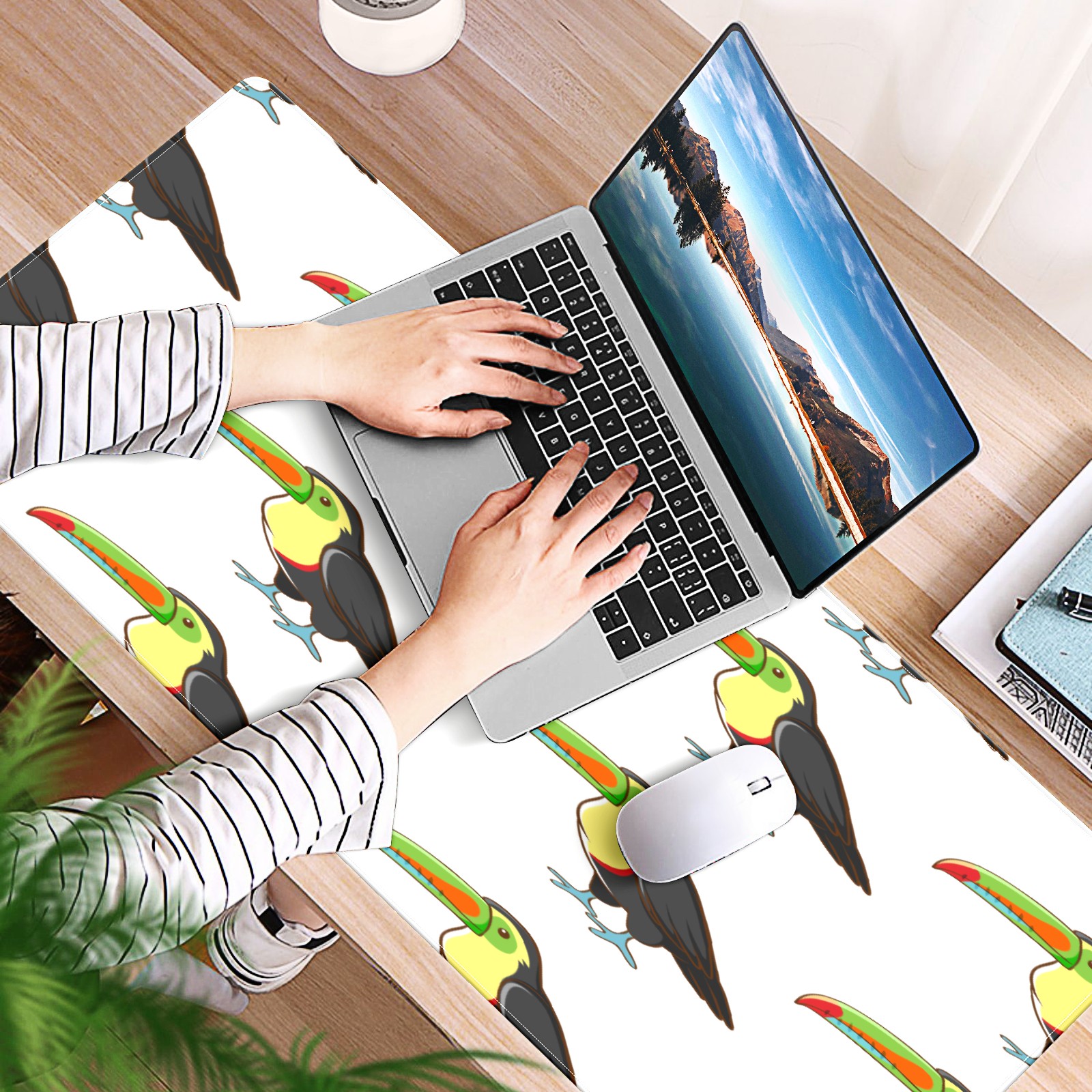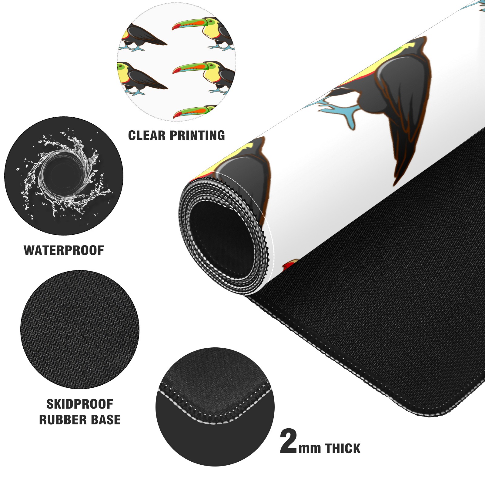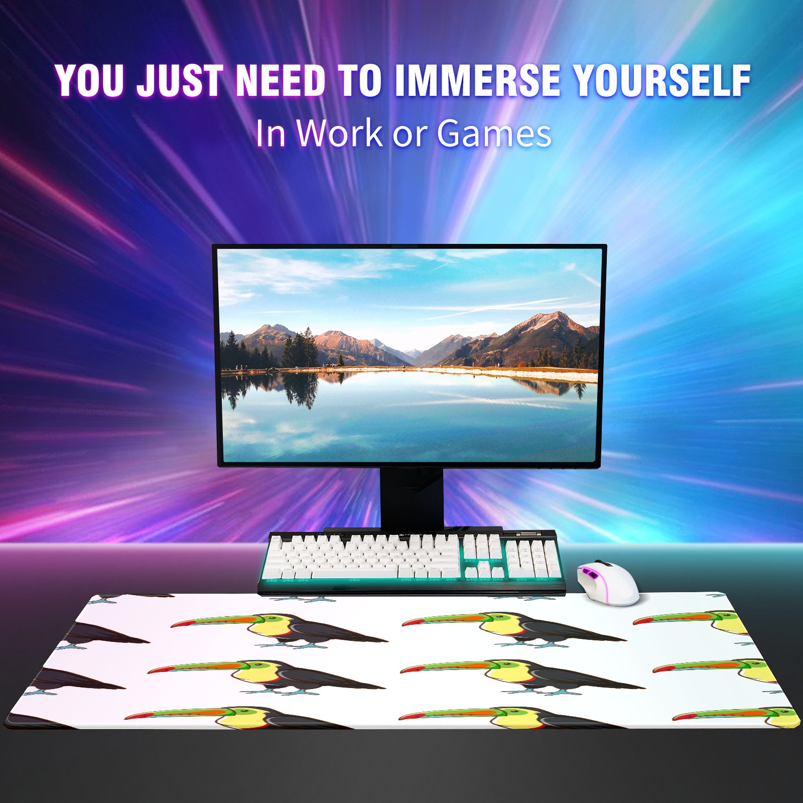 Large Mouse Pad for Desktop, Cute Desk Mat Pad Protector for Work & Gaming, Aesthetic Pretty Anti-Slip Laptop Blotter Cover for Office School Home Supplies, Seamless Cute Toucan , 35.4inx15.7in
