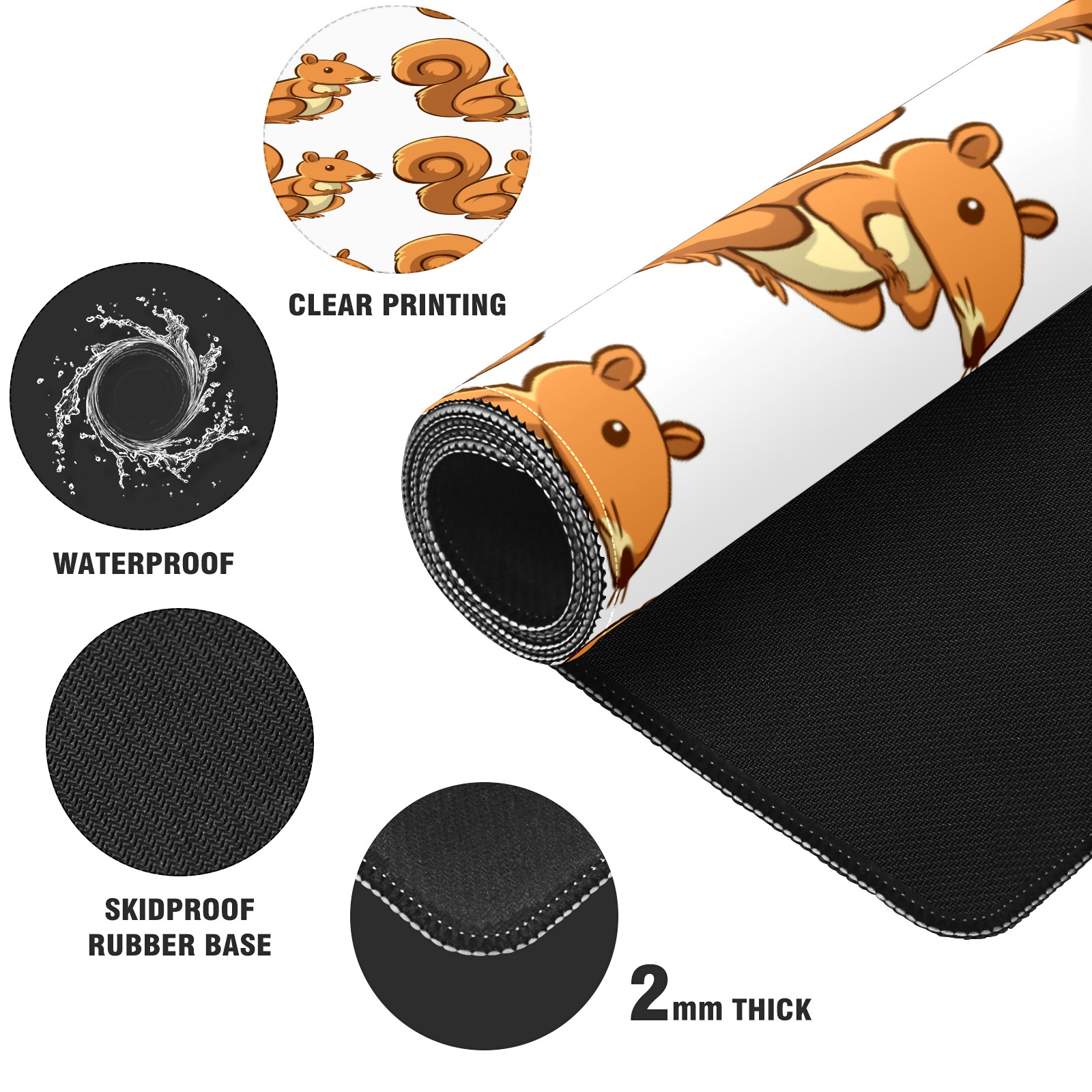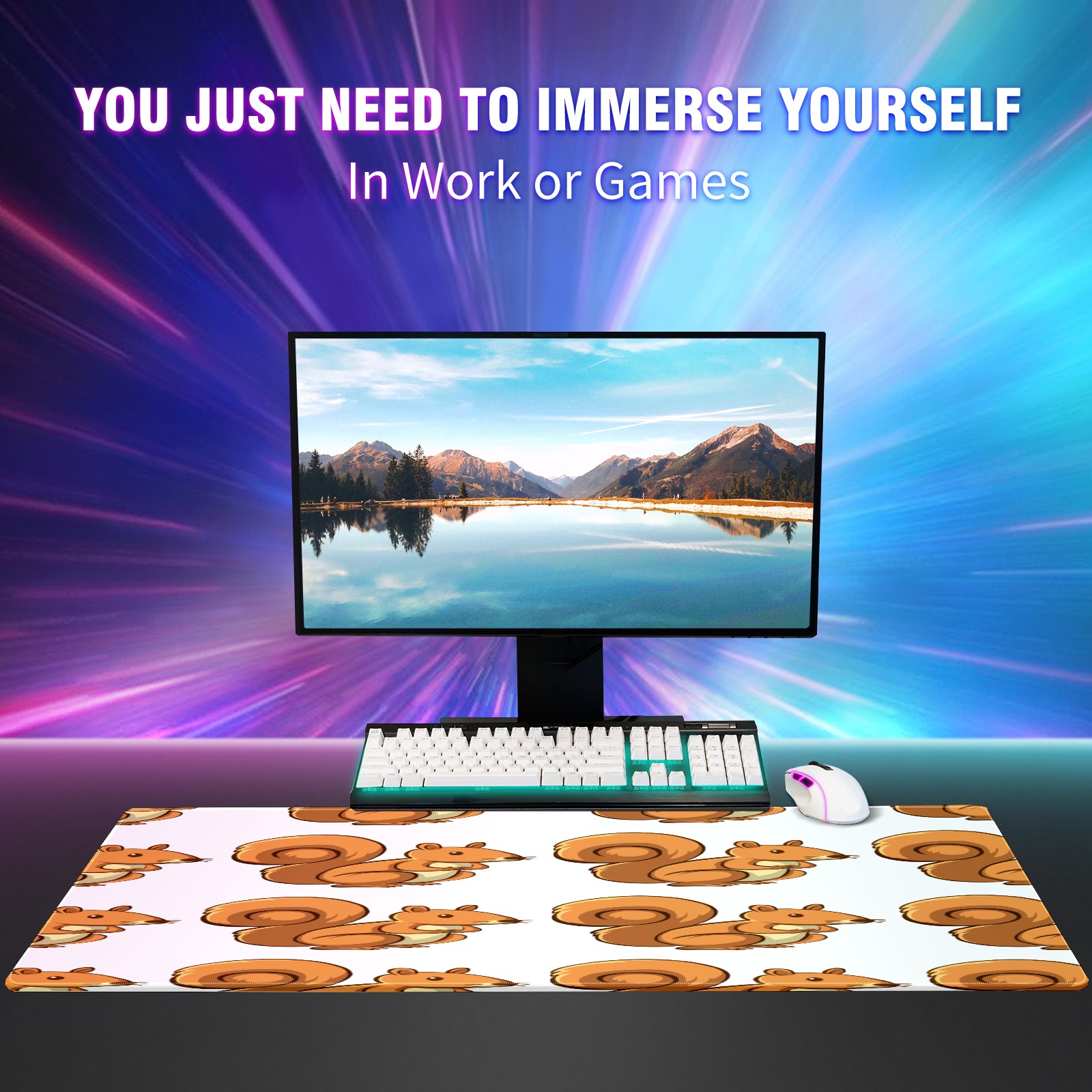 Large Mouse Pad for Desktop, Cute Desk Mat Pad Protector for Work & Gaming, Aesthetic Pretty Anti-Slip Laptop Blotter Cover for Office School Home Supplies, Seamless Cute Squirrel , 35.4inx15.7in
