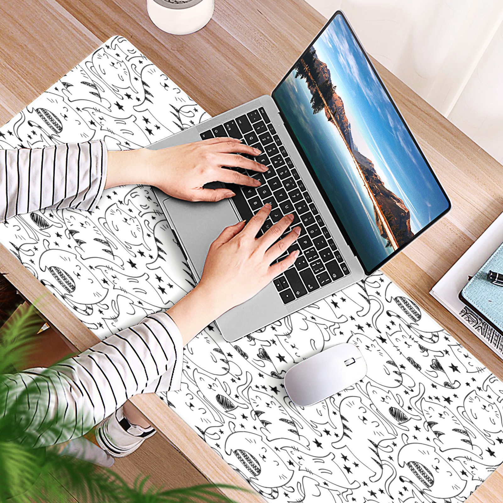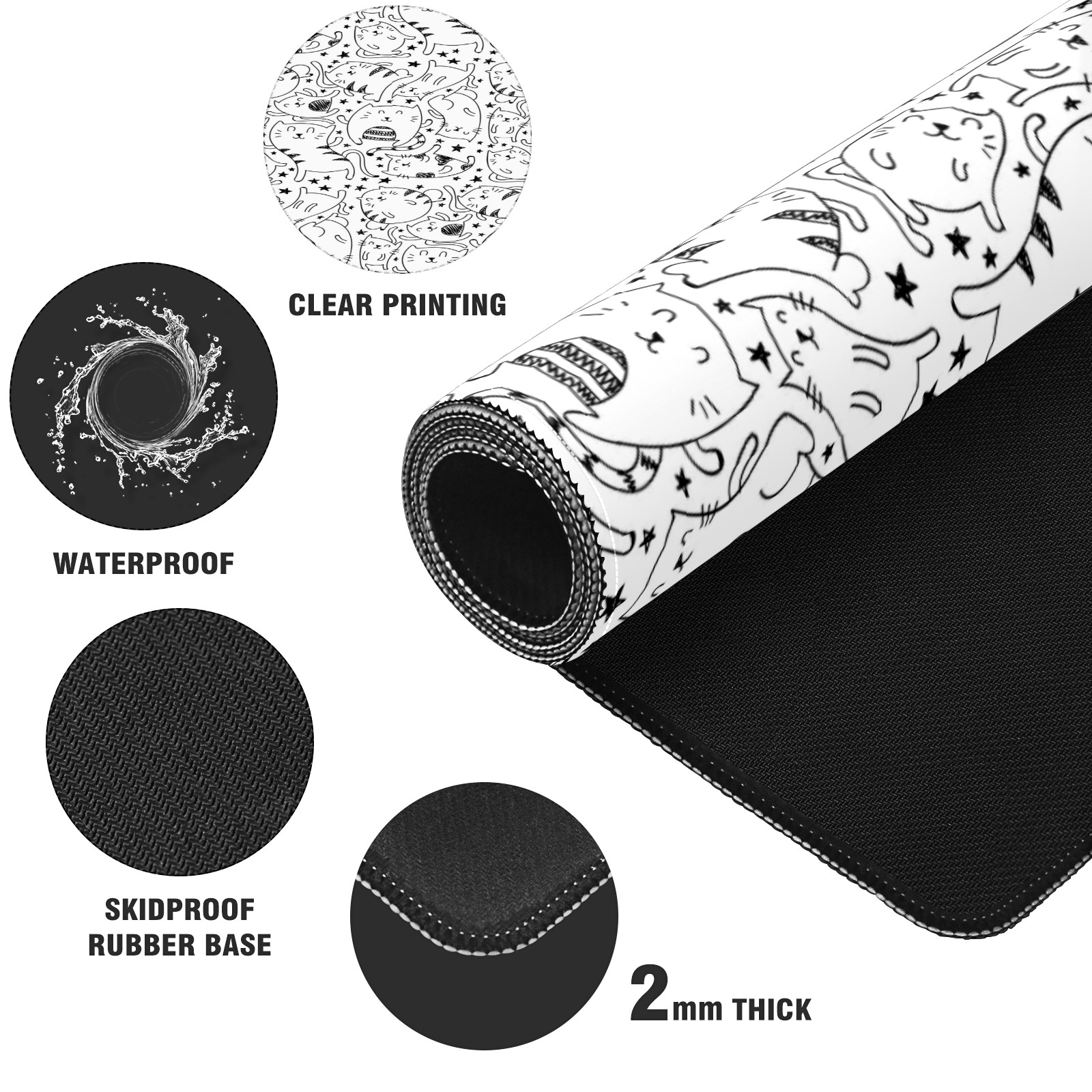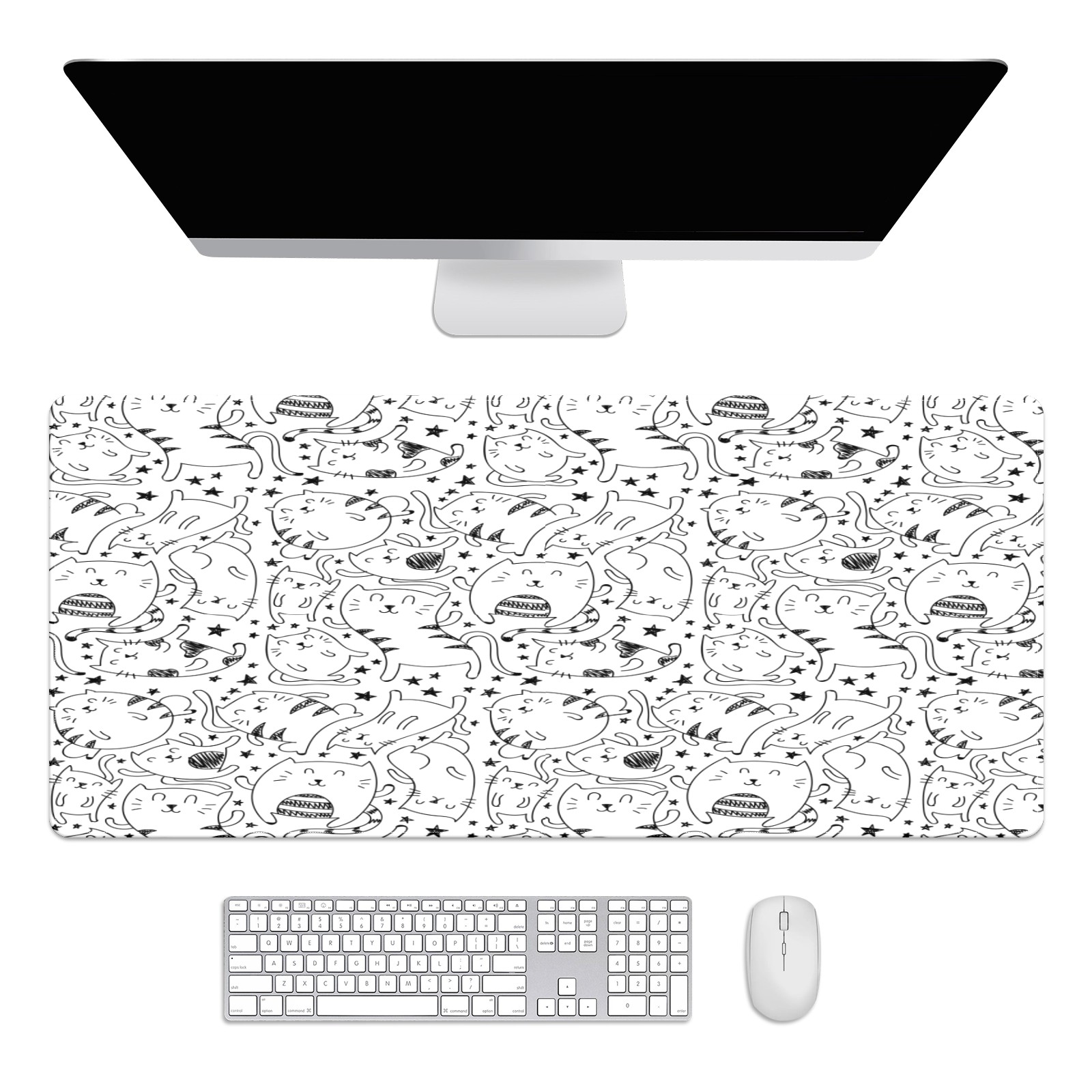 Large Mouse Pad for Desktop, Cute Desk Mat Pad Protector for Work & Gaming, Aesthetic Pretty Anti-Slip Laptop Blotter Cover for Office School Home Supplies, Simple Cats , 35.4inx15.7in