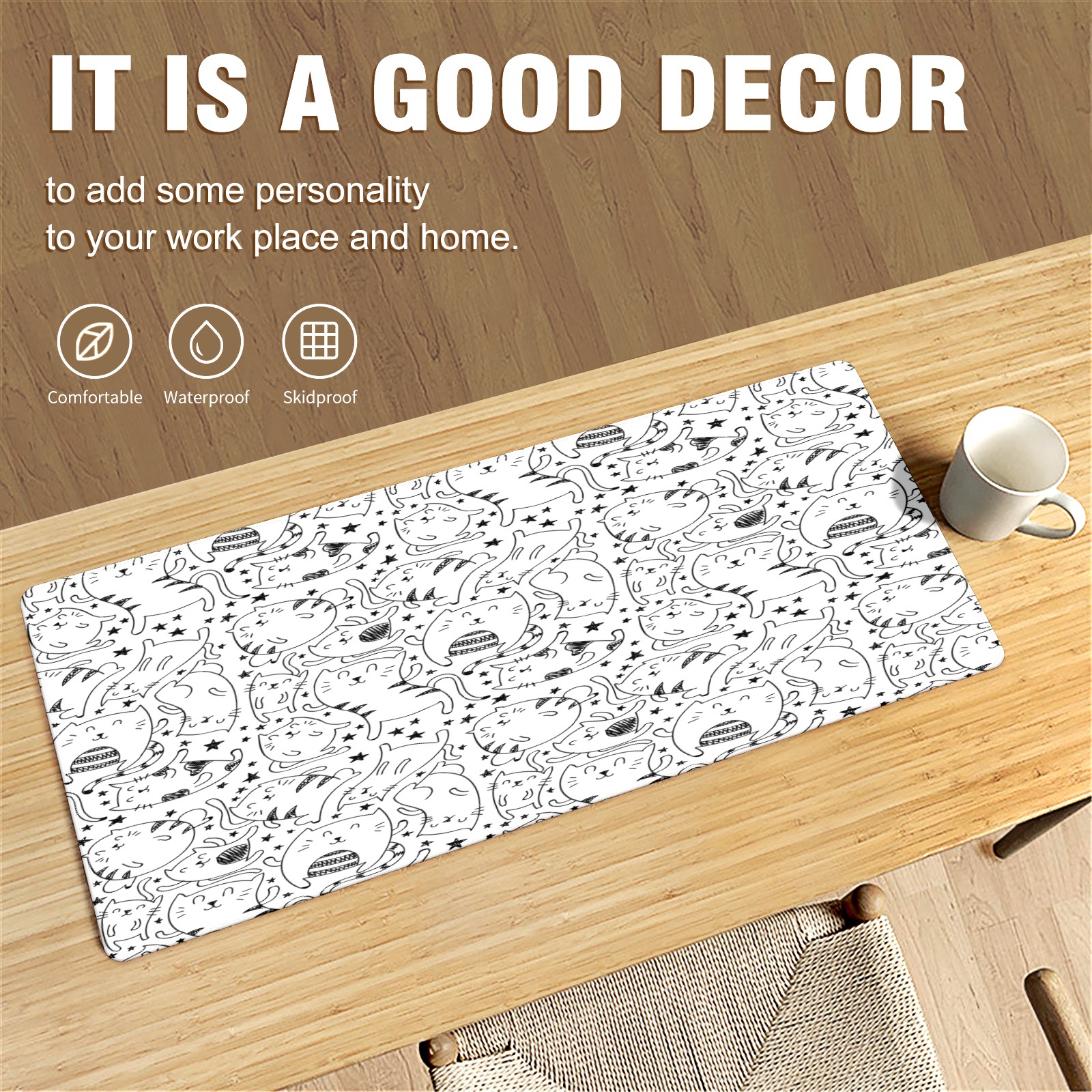 <p>This 35.4” × 15.7” extended desk mat offers ample space for your keyboard, mouse and essentials, working as a smooth work/writing pad while protecting your desktop from scratches.</p><p>With stylish artistic patterns, it adds personality to your home office, study or gaming setup. The high-density woven surface ensures precise, smooth mouse tracking for work and gaming.</p><p>Featuring an anti-slip natural rubber base for firm grip and stability, the mat is soft, elastic and odorless. Reinforced stitched edges prevent fraying and curling for long-lasting durability.</p>