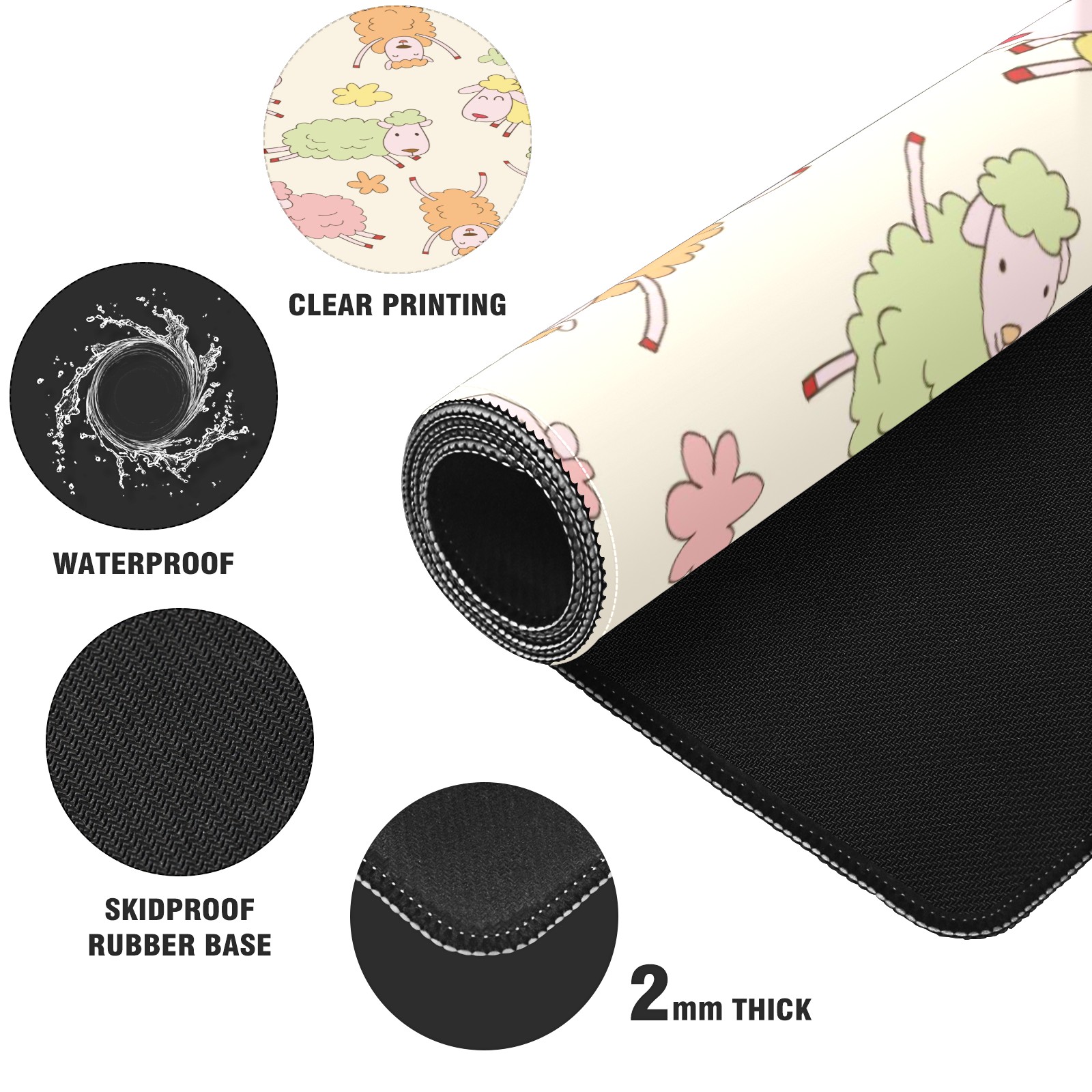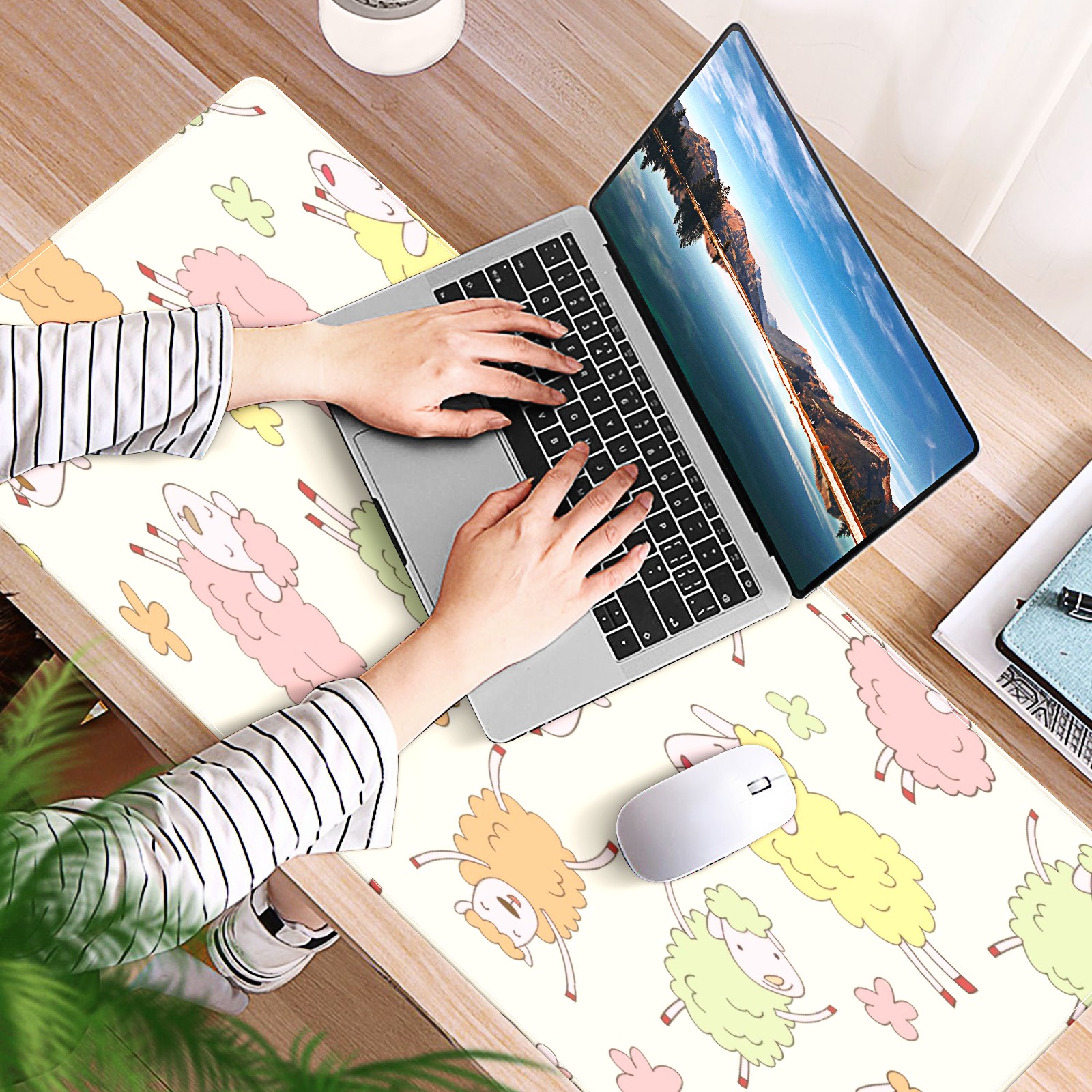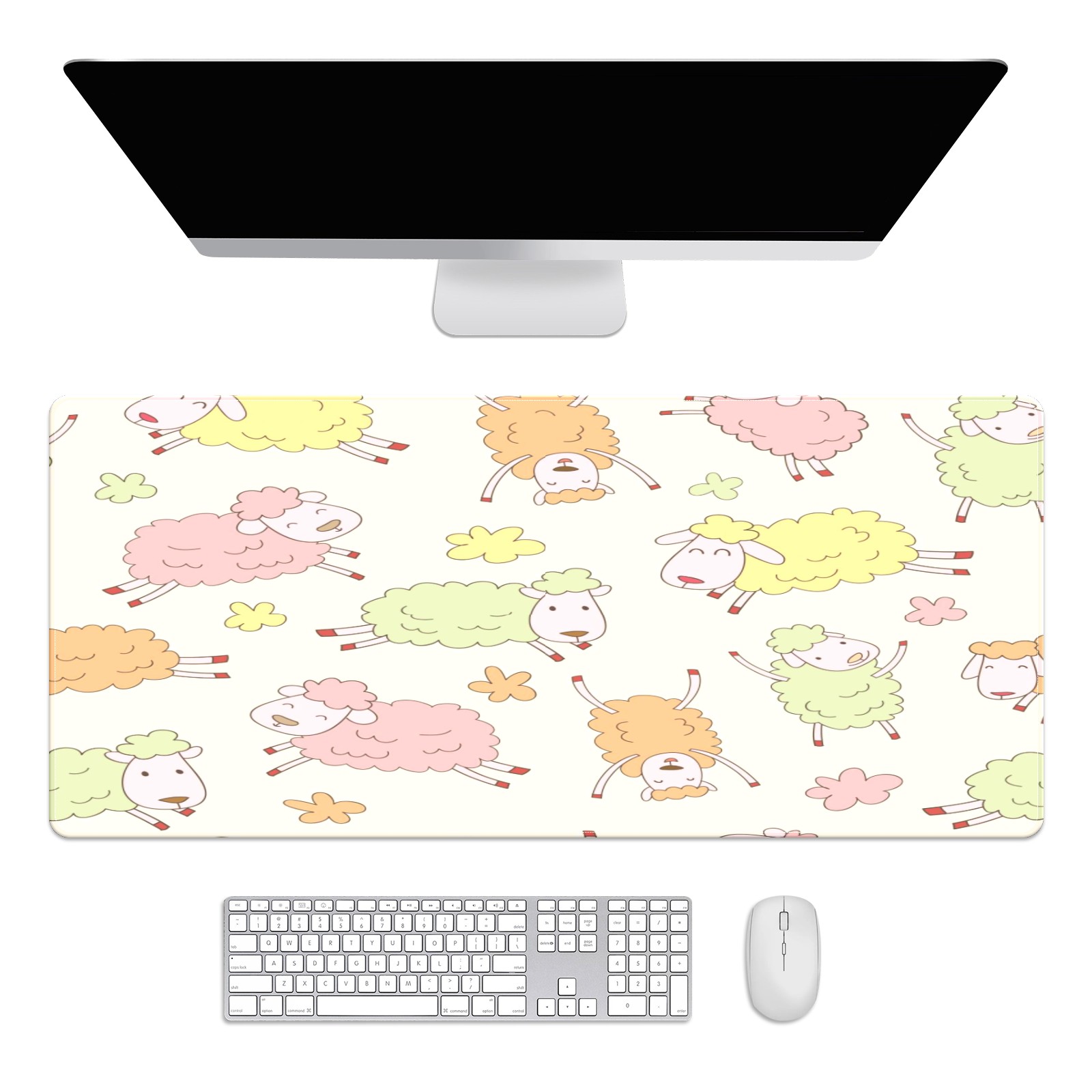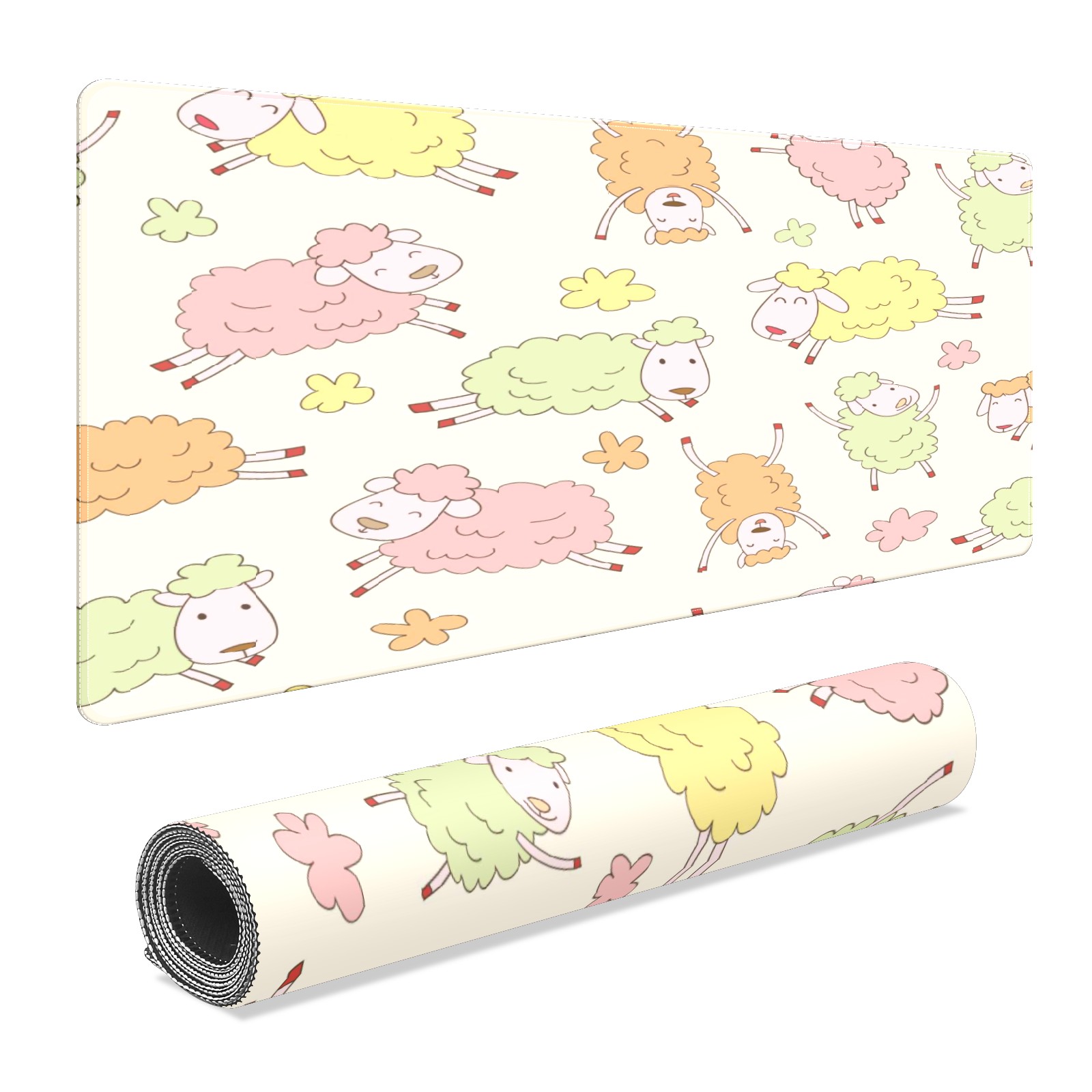 Large Mouse Pad for Desktop, Cute Desk Mat Pad Protector for Work & Gaming, Aesthetic Pretty Anti-Slip Laptop Blotter Cover for Office School Home Supplies, Sheeps Colorful , 35.4inx15.7in