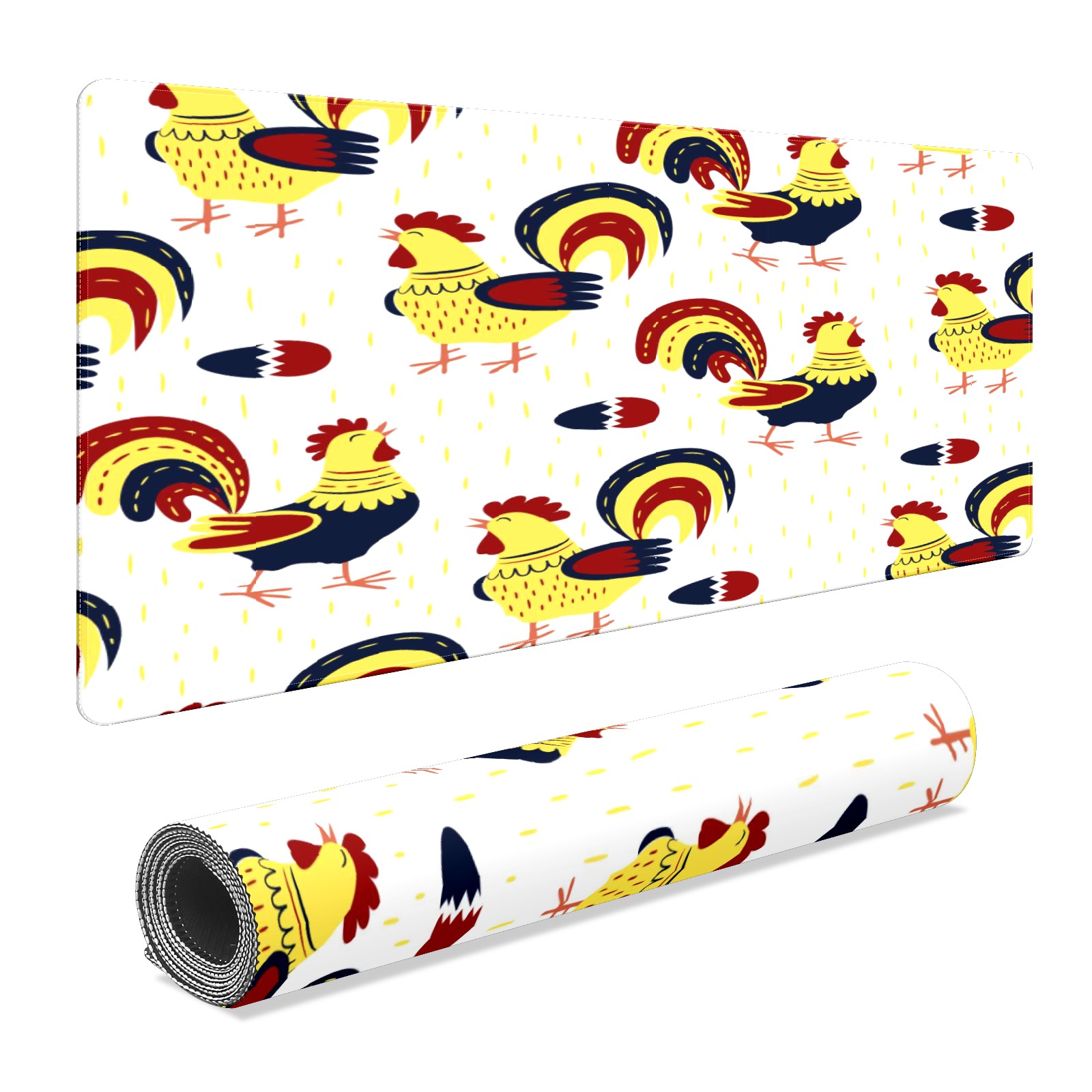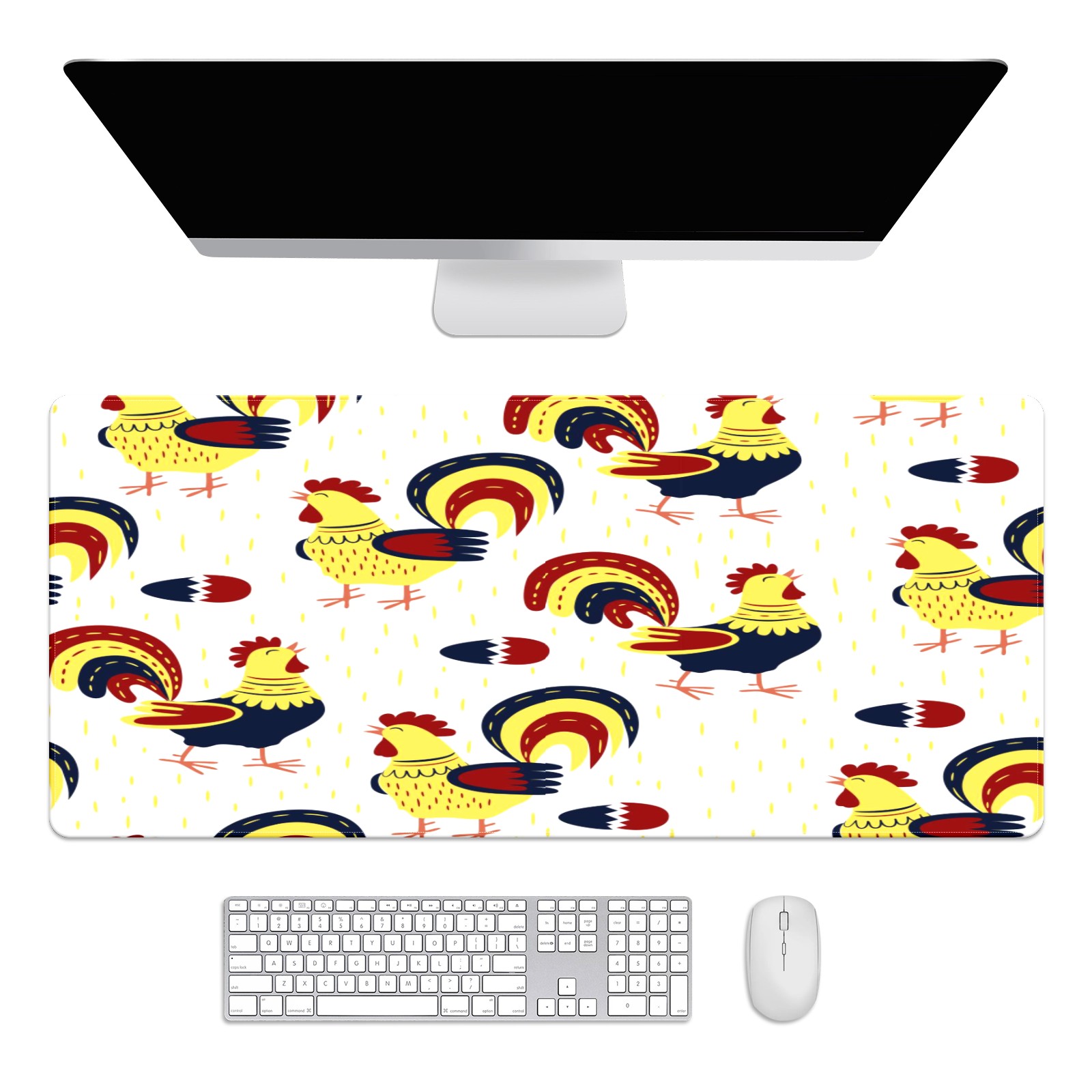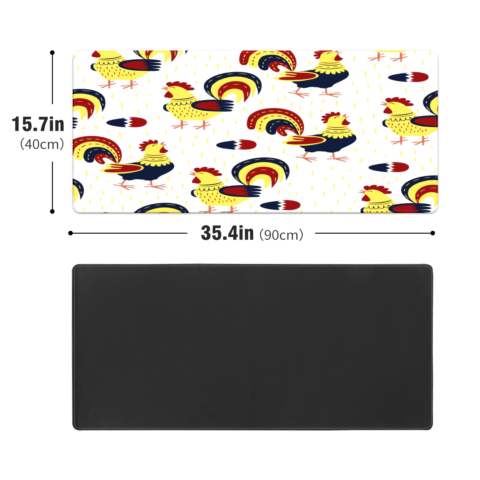 Large Mouse Pad for Desktop, Cute Desk Mat Pad Protector for Work & Gaming, Aesthetic Pretty Anti-Slip Laptop Blotter Cover for Office School Home Supplies, Roosters Design , 35.4inx15.7in