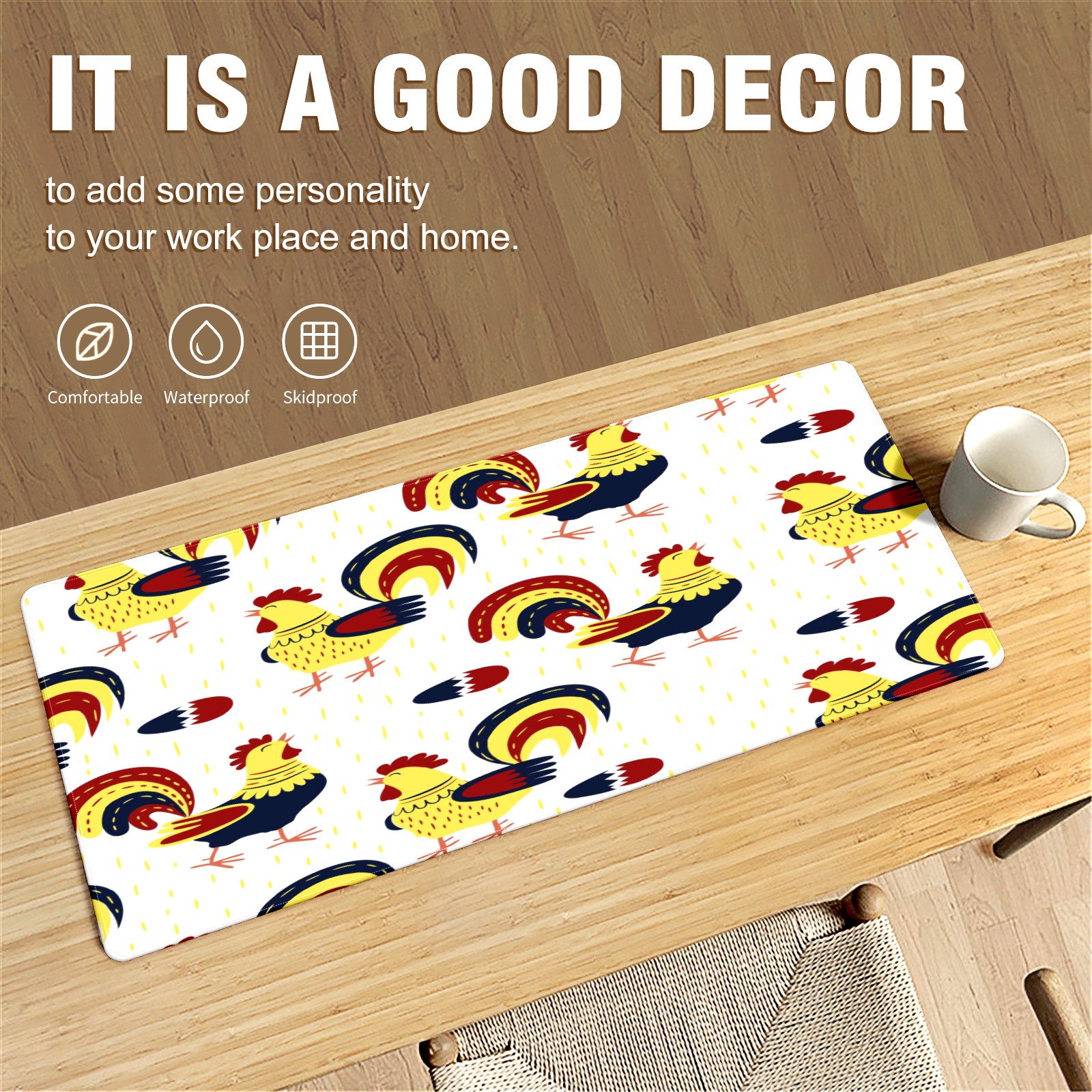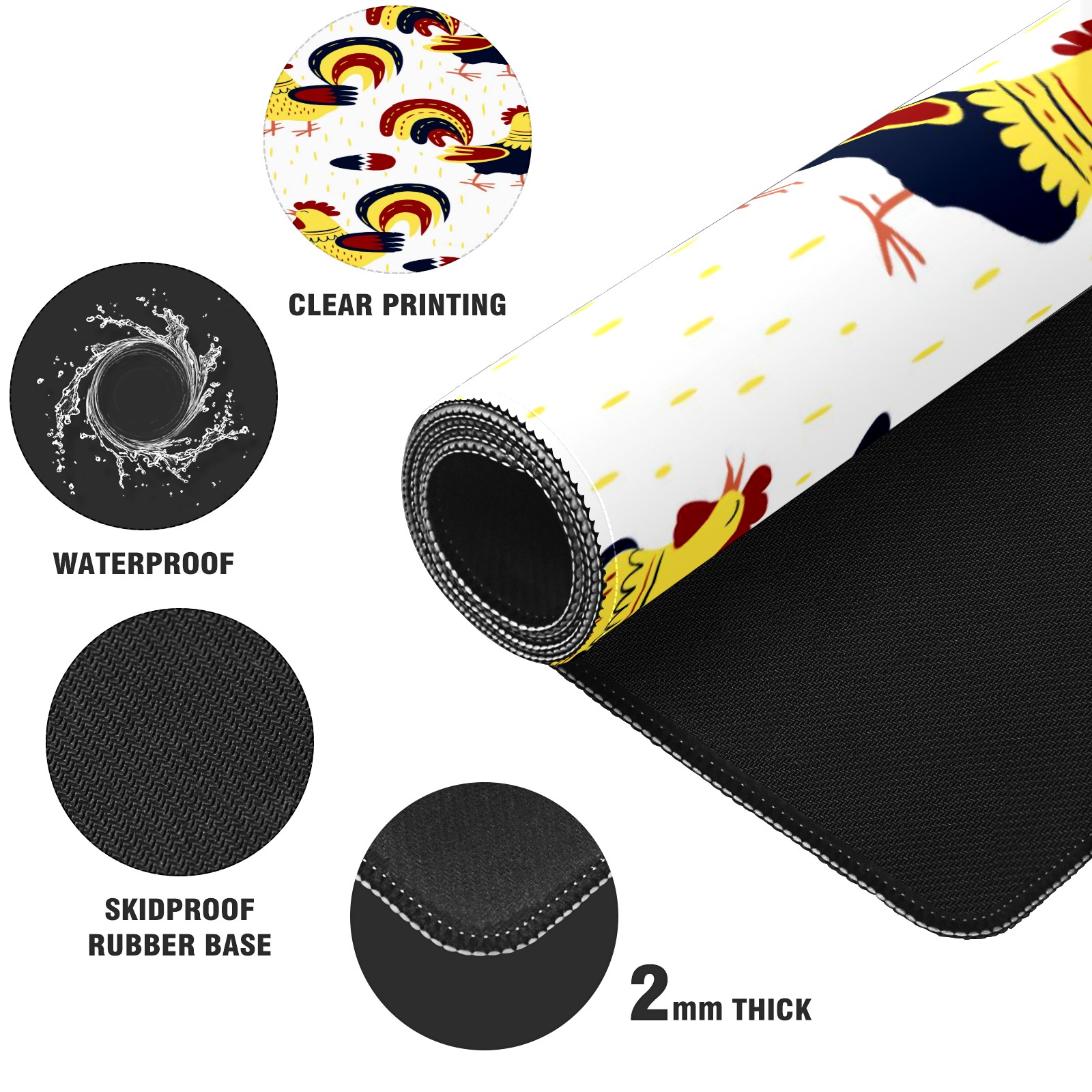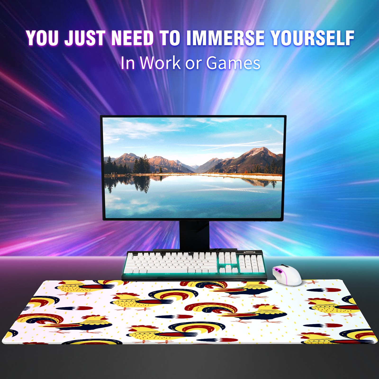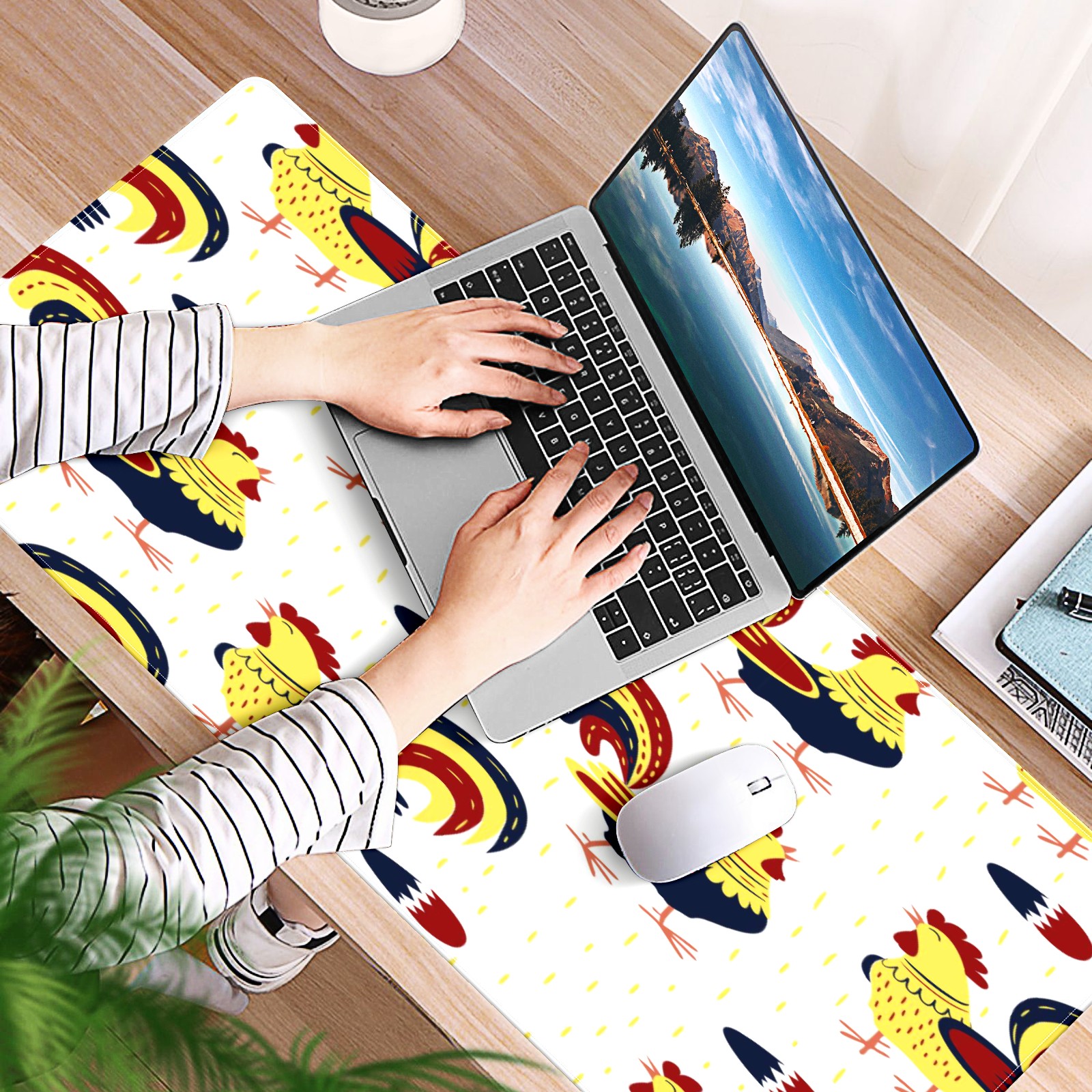 Large Mouse Pad for Desktop, Cute Desk Mat Pad Protector for Work & Gaming, Aesthetic Pretty Anti-Slip Laptop Blotter Cover for Office School Home Supplies, Roosters Design , 35.4inx15.7in