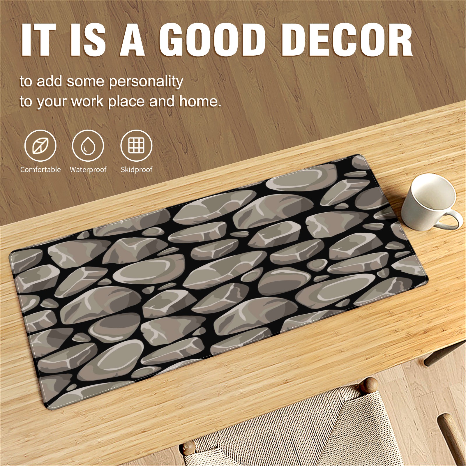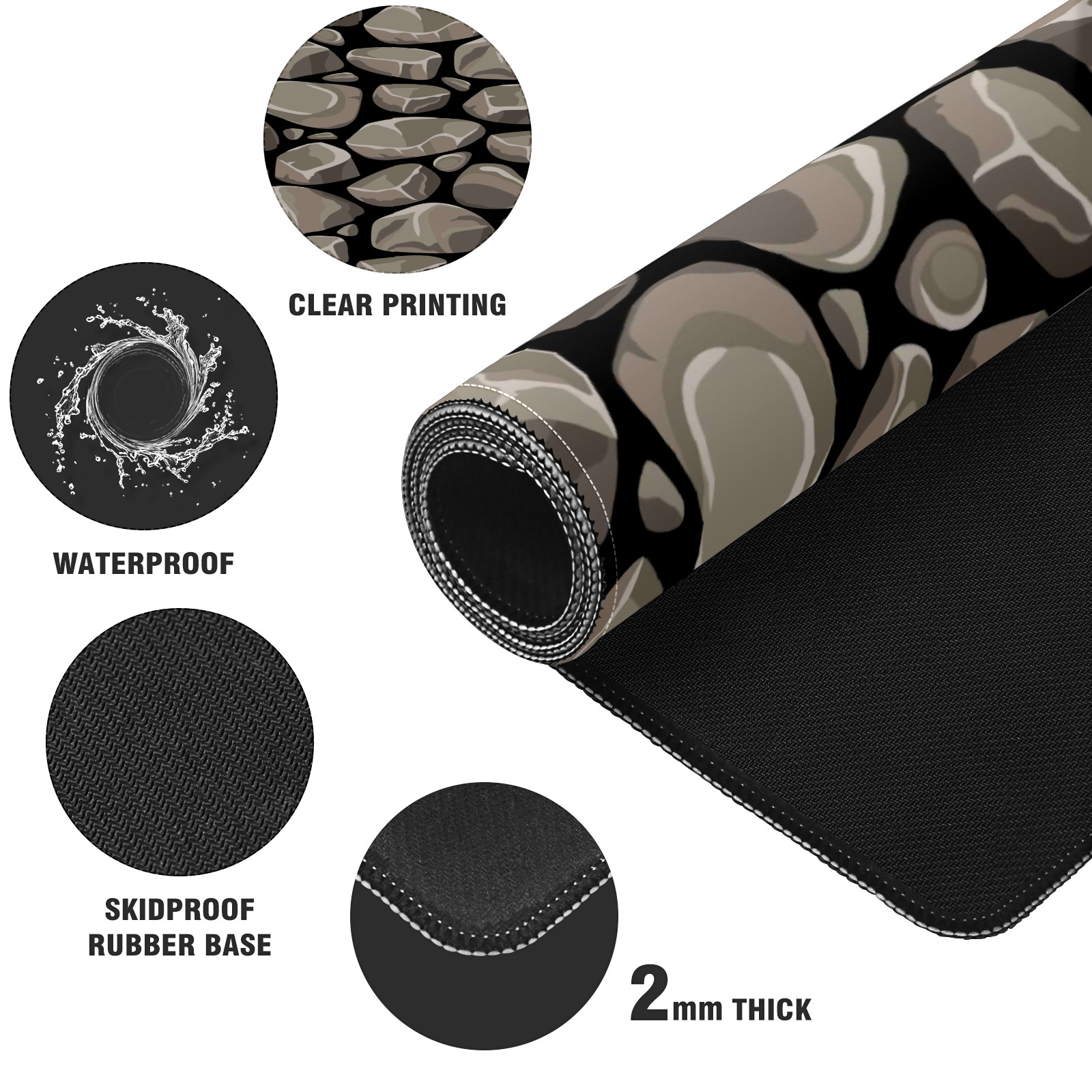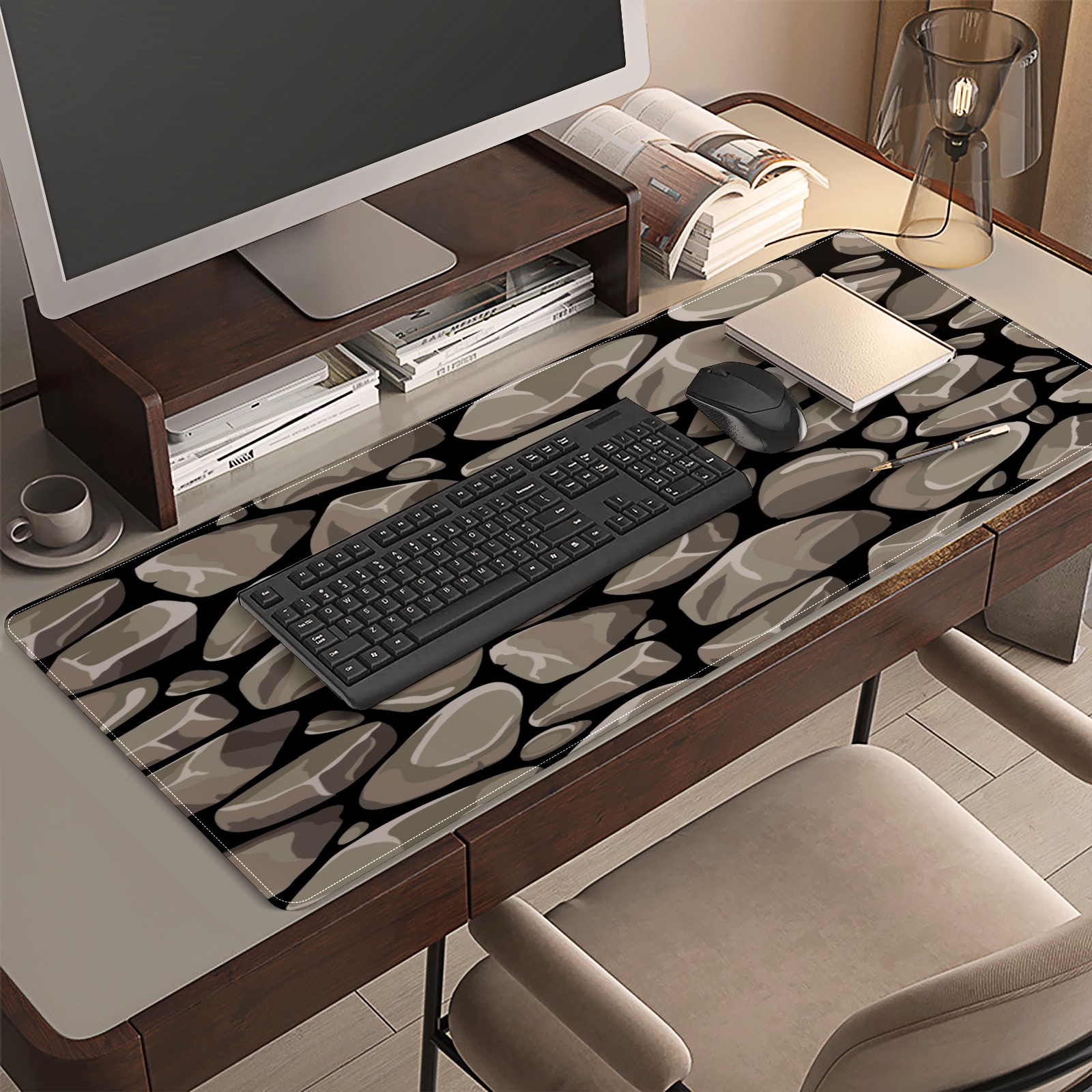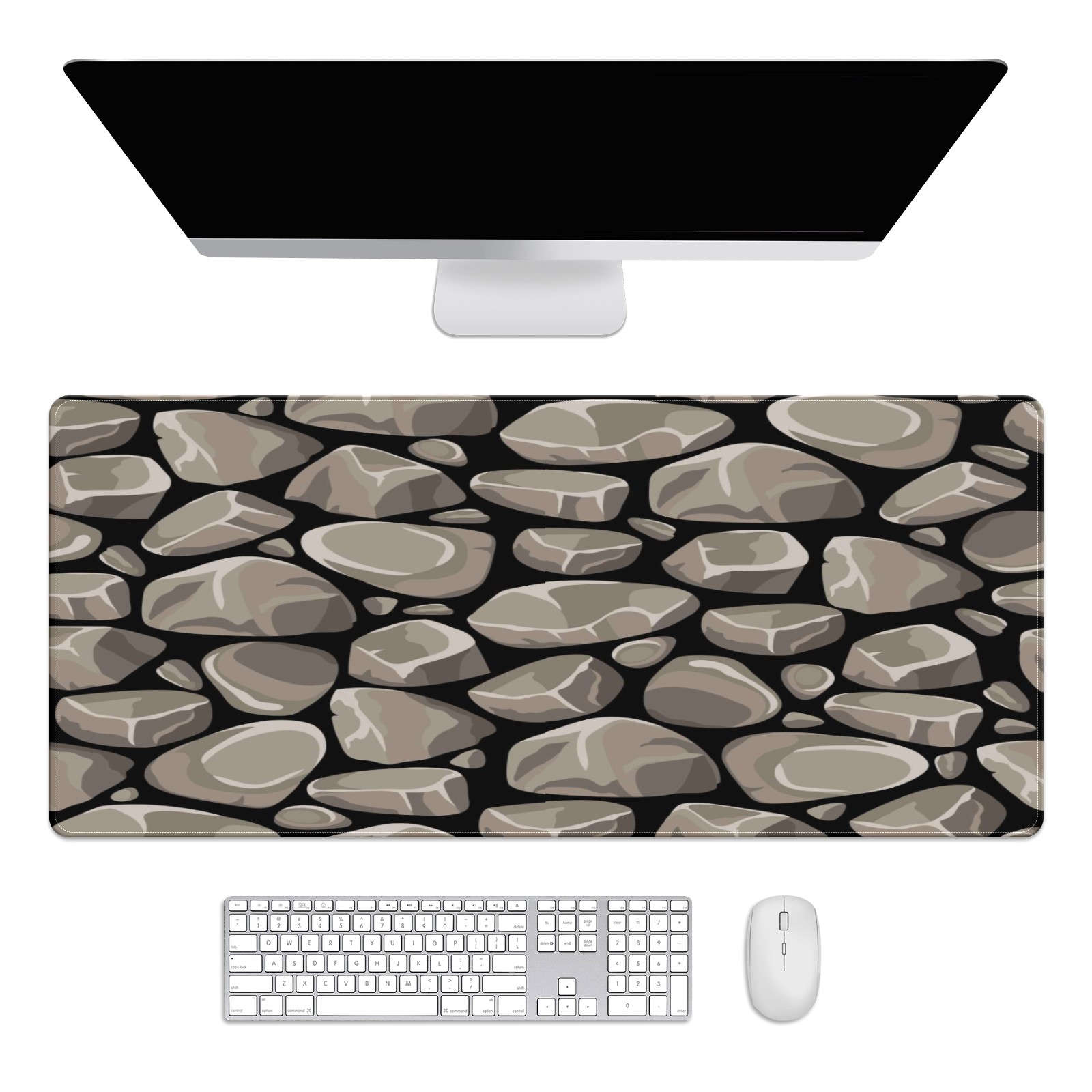 Large Mouse Pad for Desktop, Cute Desk Mat Pad Protector for Work & Gaming, Aesthetic Pretty Anti-Slip Laptop Blotter Cover for Office School Home Supplies, Rock Stone Seamless Pattern , 35.4inx15.7in