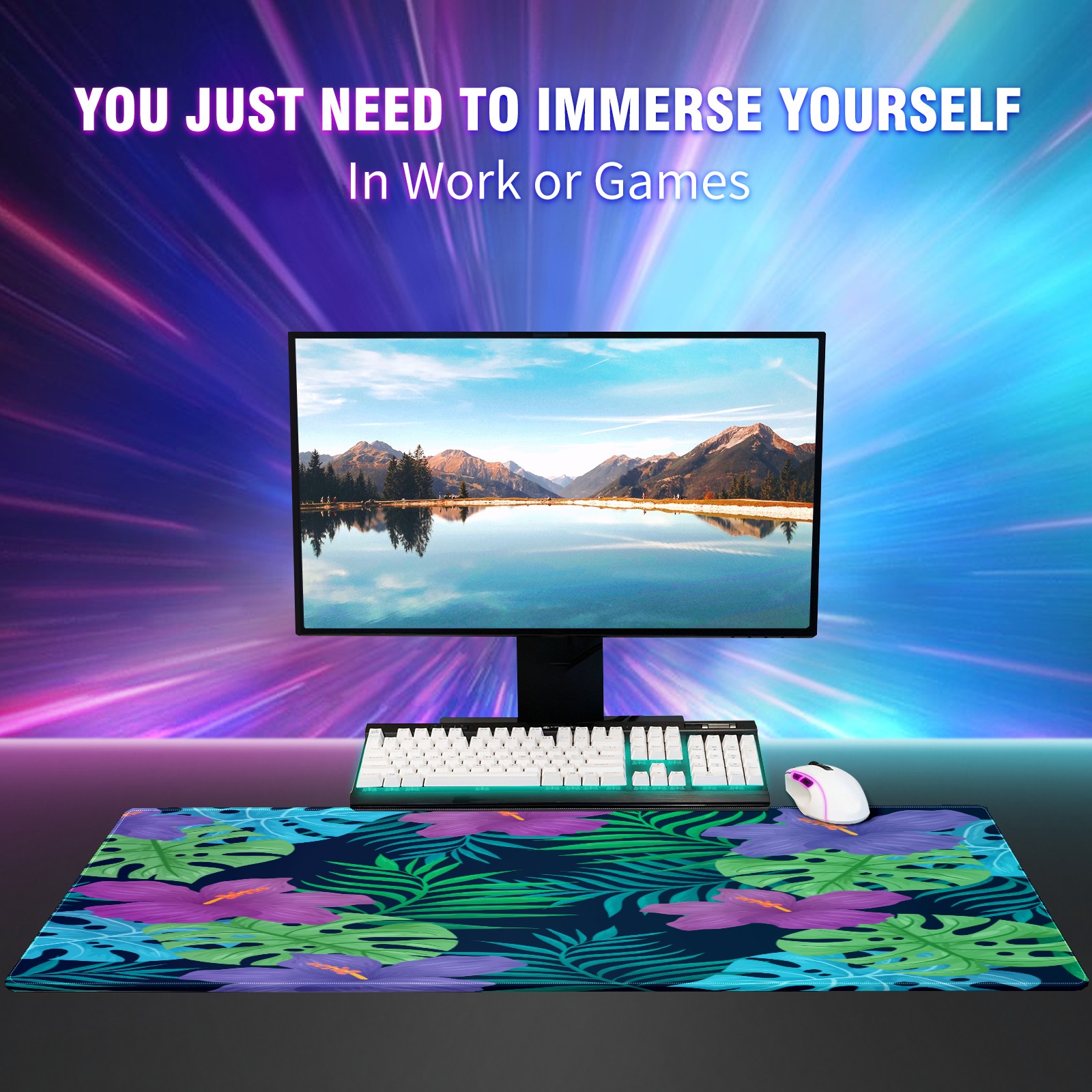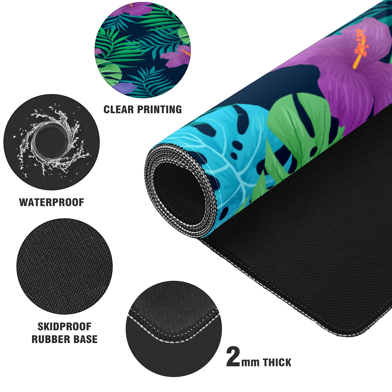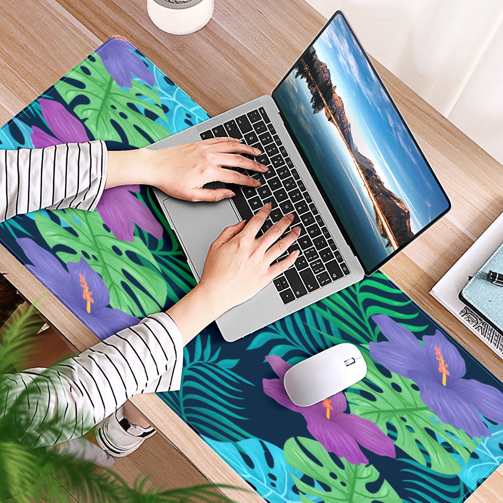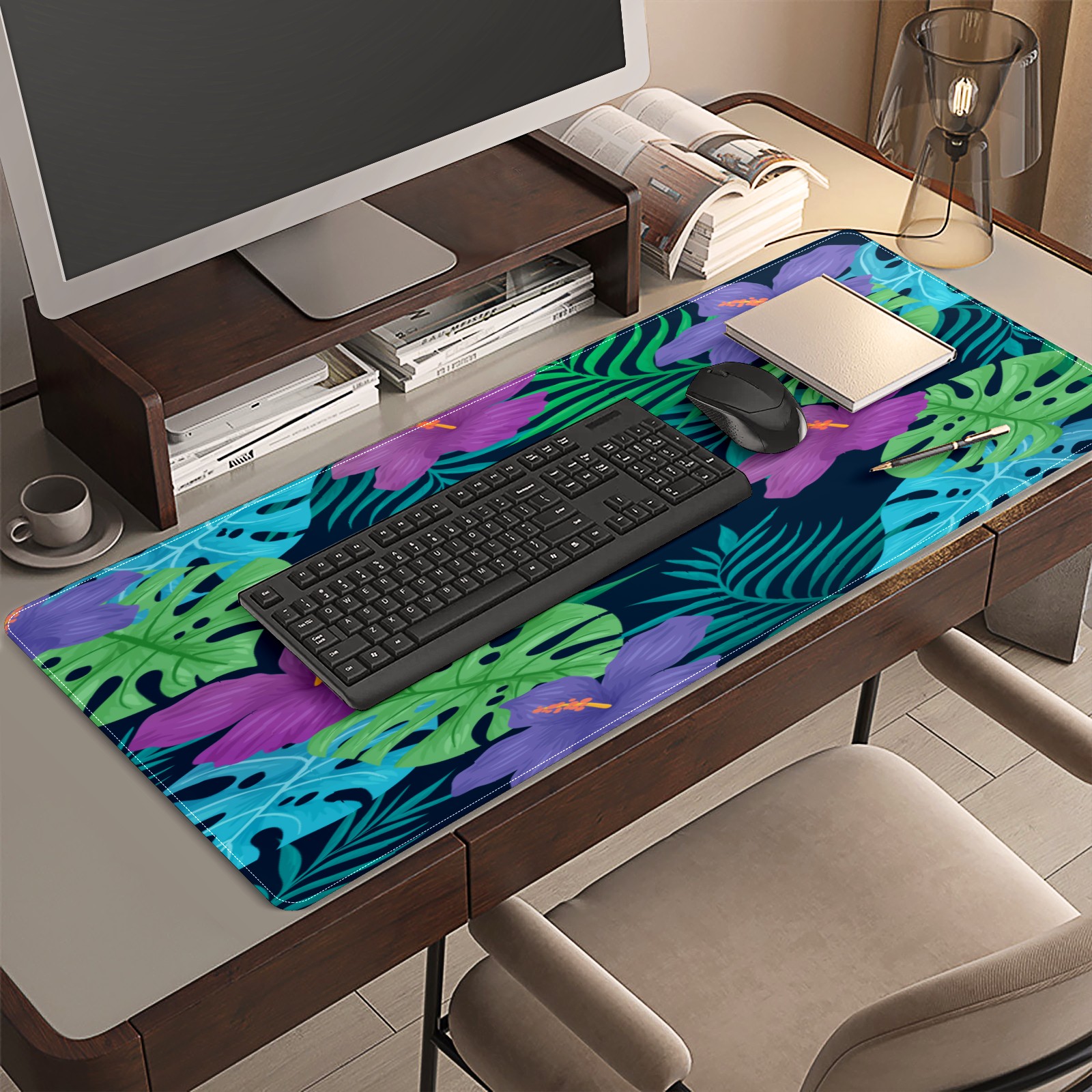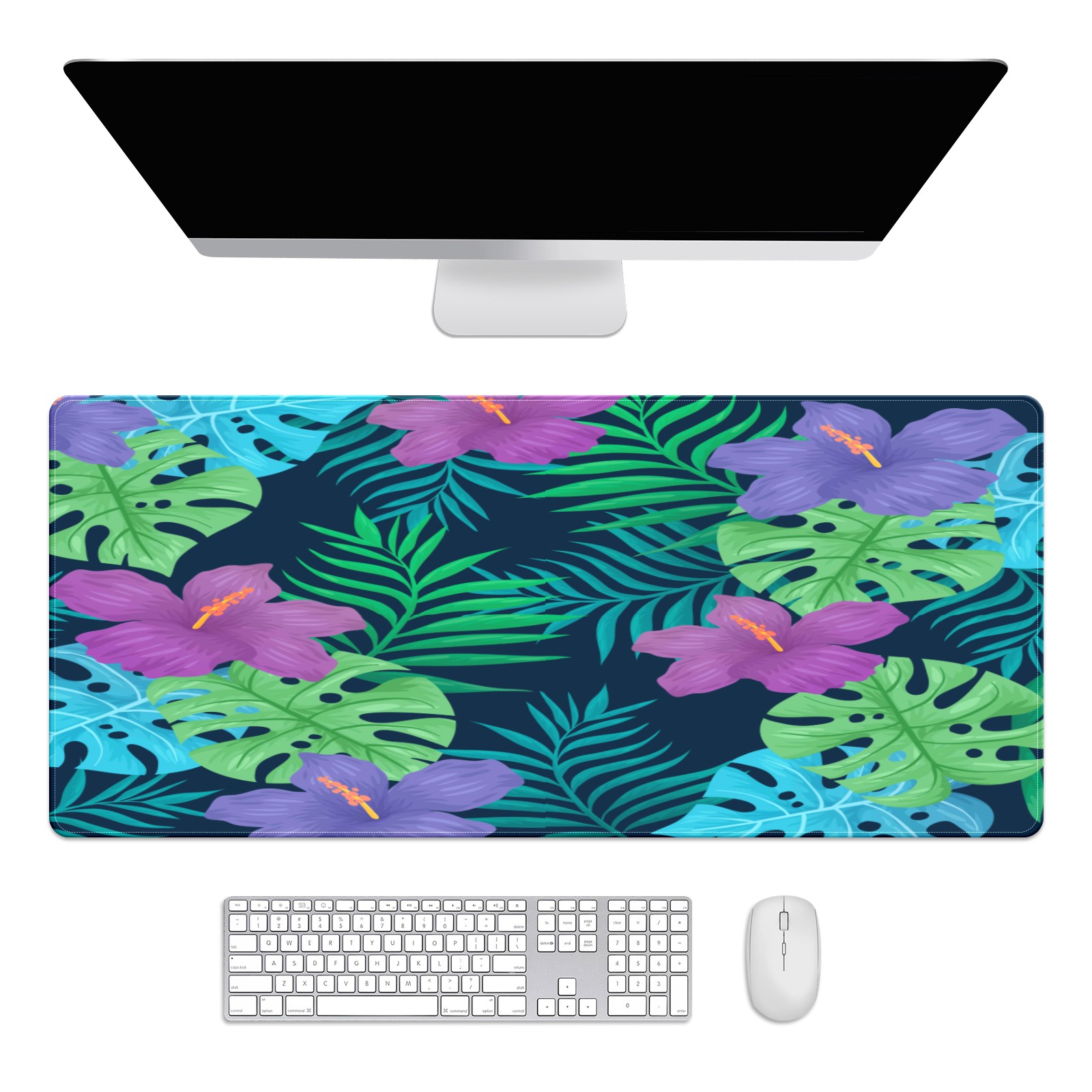 Large Mouse Pad for Desktop, Cute Desk Mat Pad Protector for Work & Gaming, Aesthetic Pretty Anti-Slip Laptop Blotter Cover for Office School Home Supplies, Natural Tropical Flowers , 35.4inx15.7in